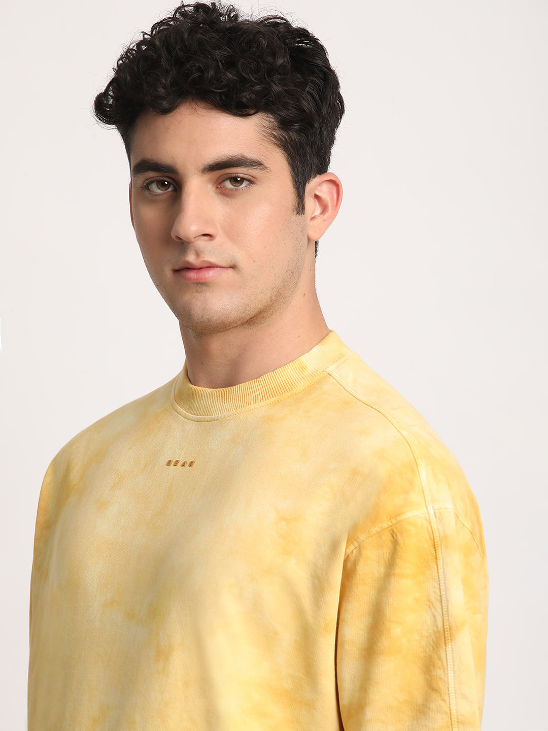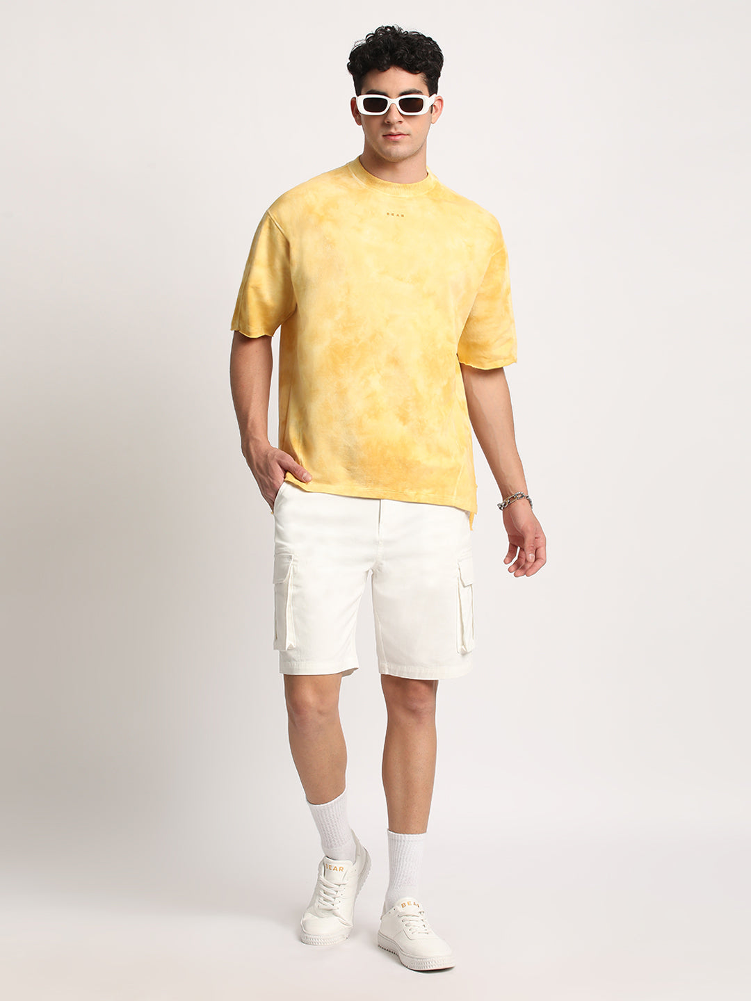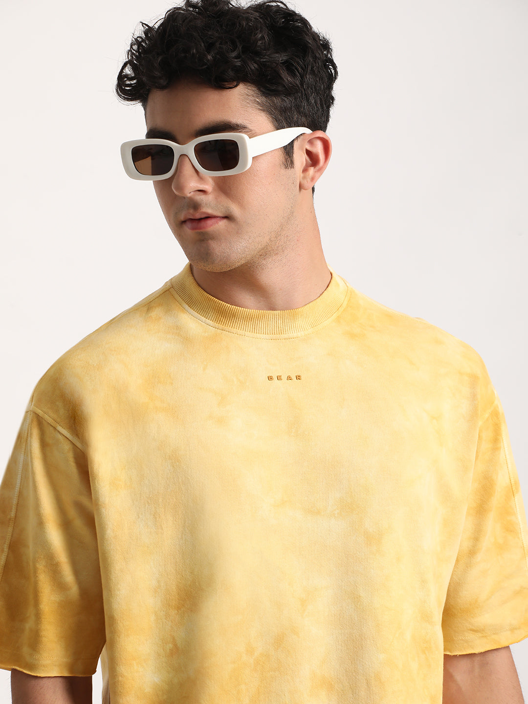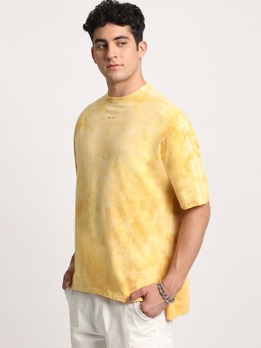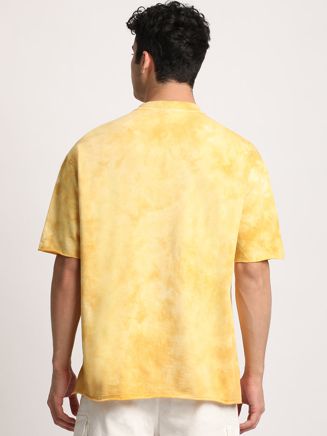 Shop Men Yellow Tie and Dye Oversized Fit Round Neck T-shirt Online.