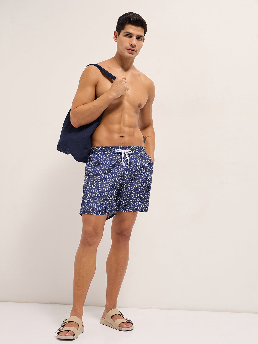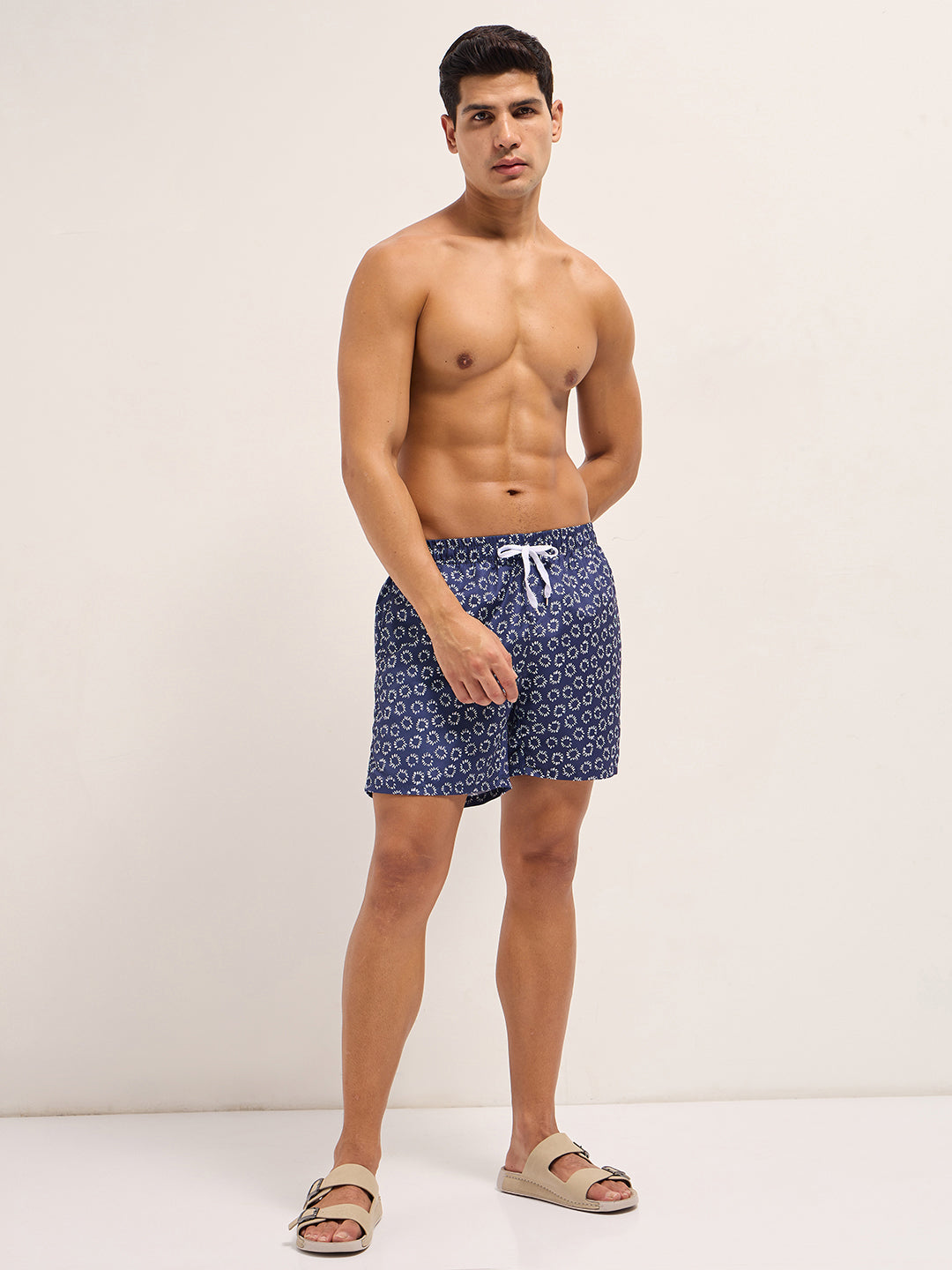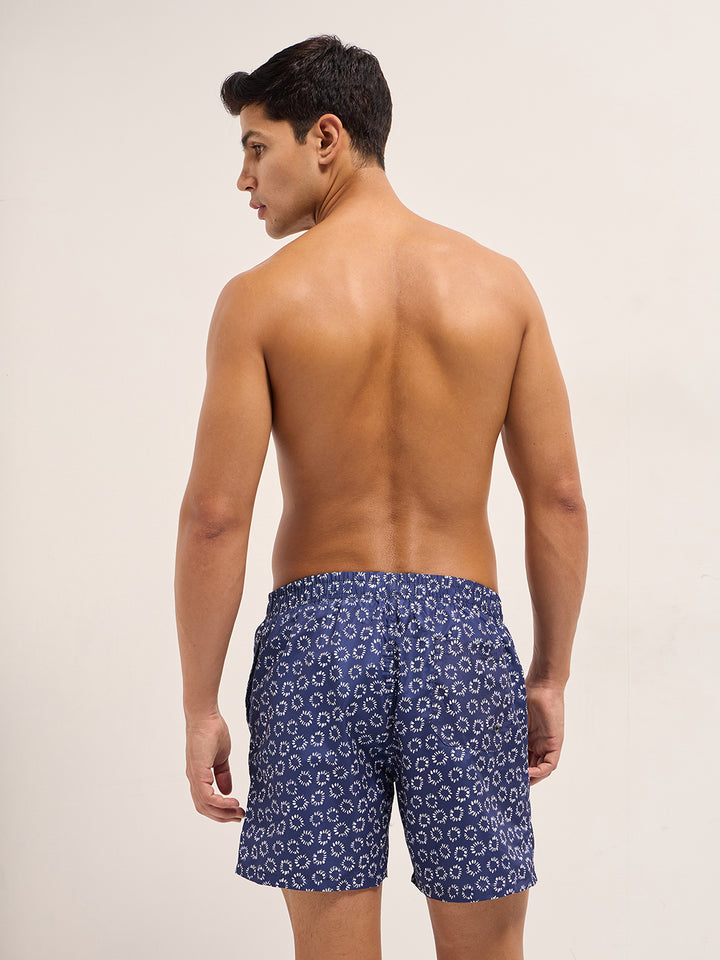 Blue Printed Swim Shorts with Elastic Waist – Perfect for Summer