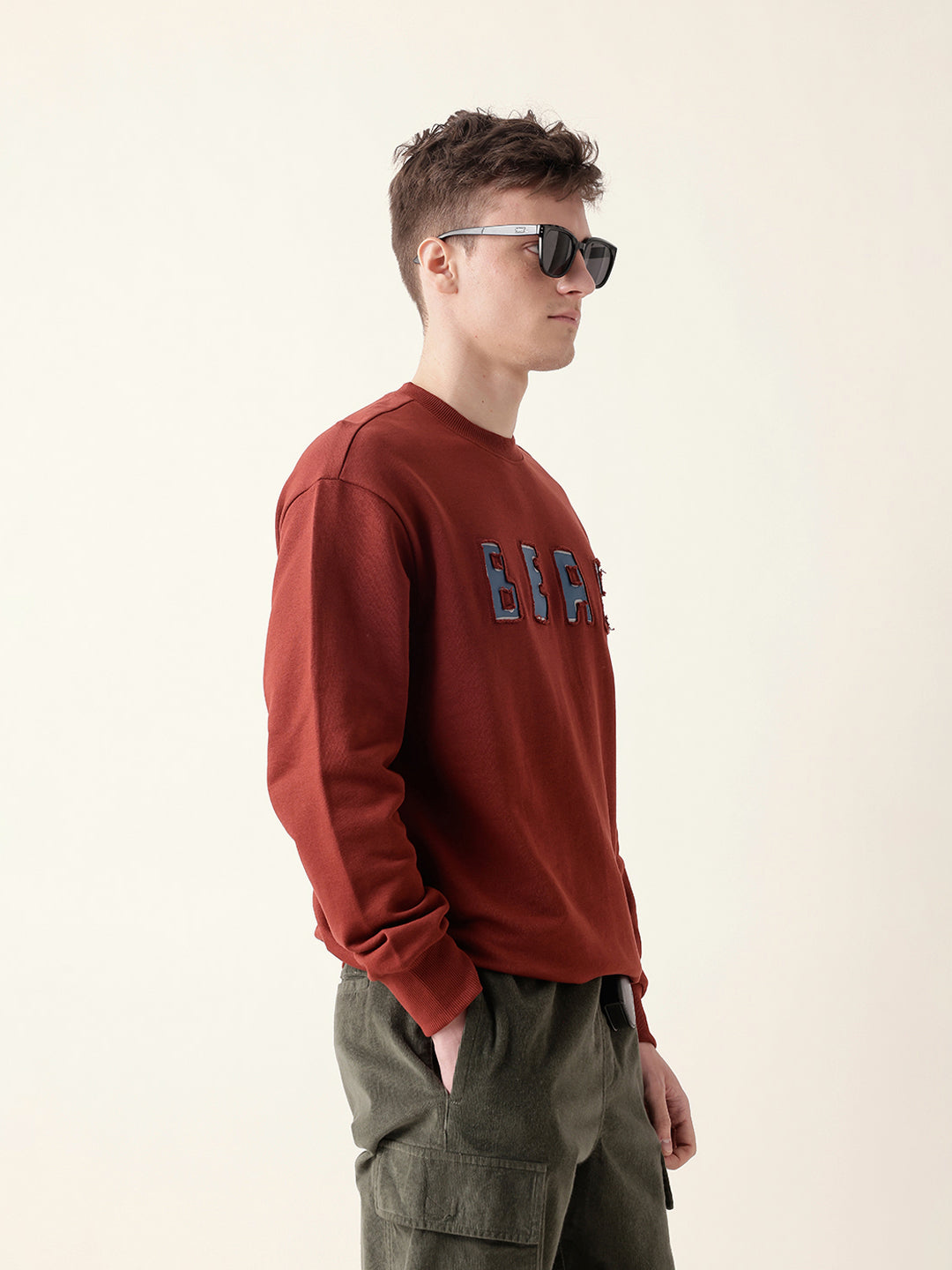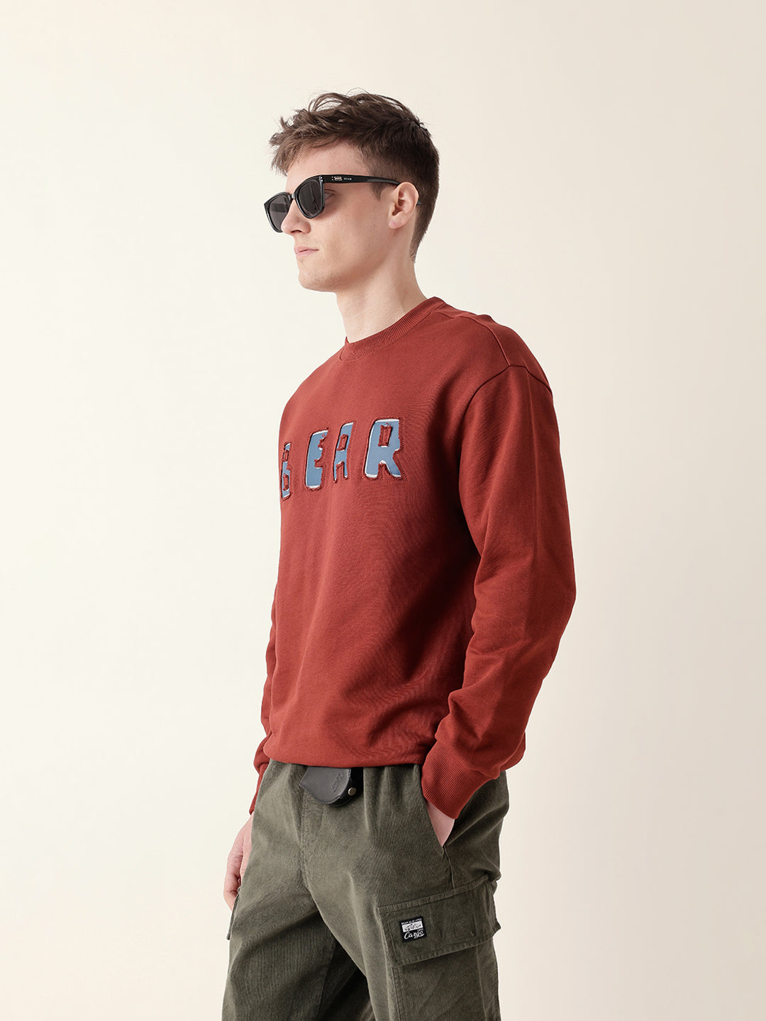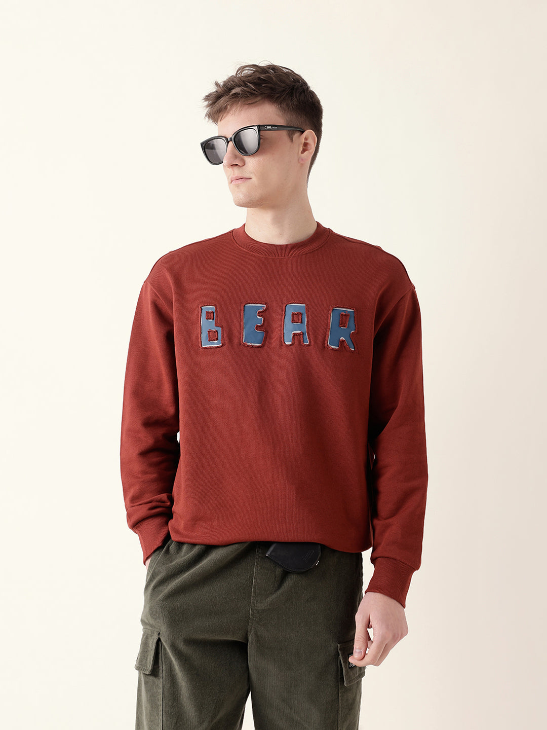 Rust Relax Fit Crew Neck Sweatshirt with Distressed "BEAR"