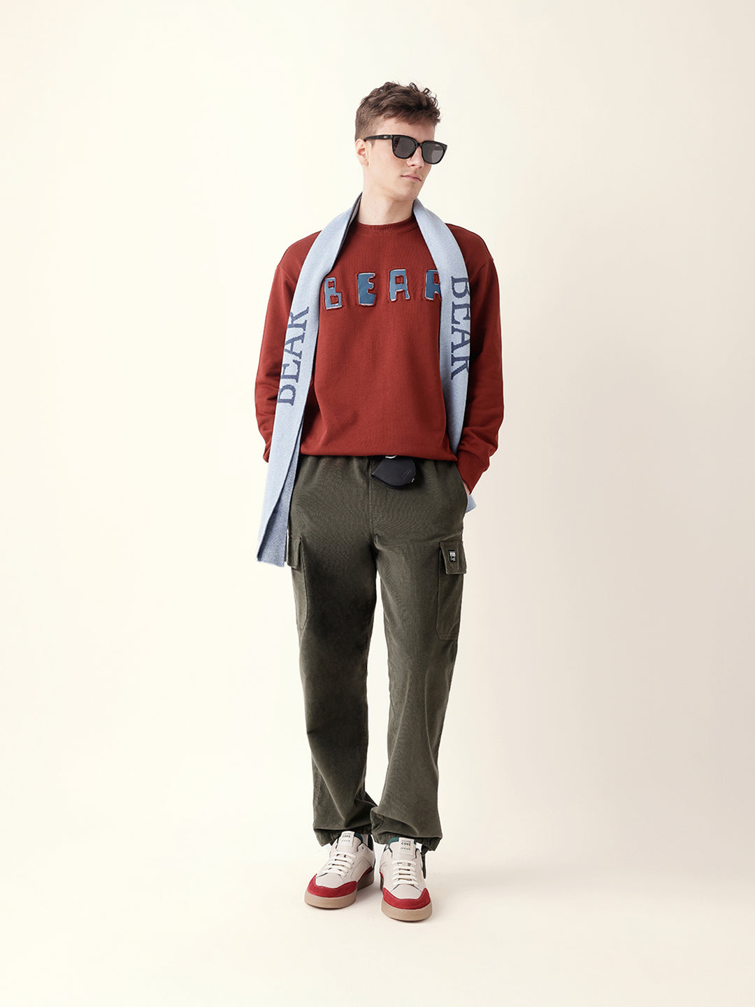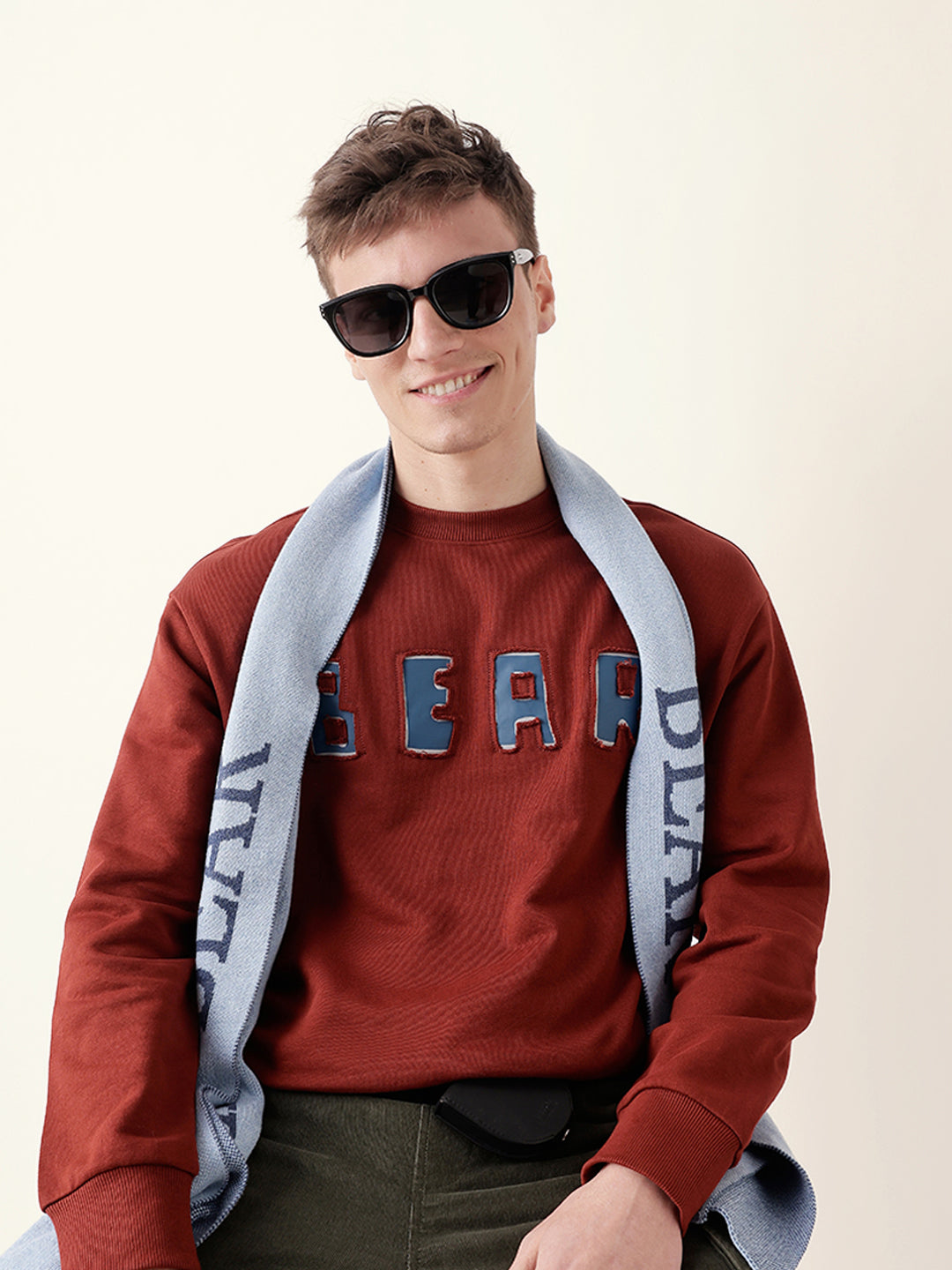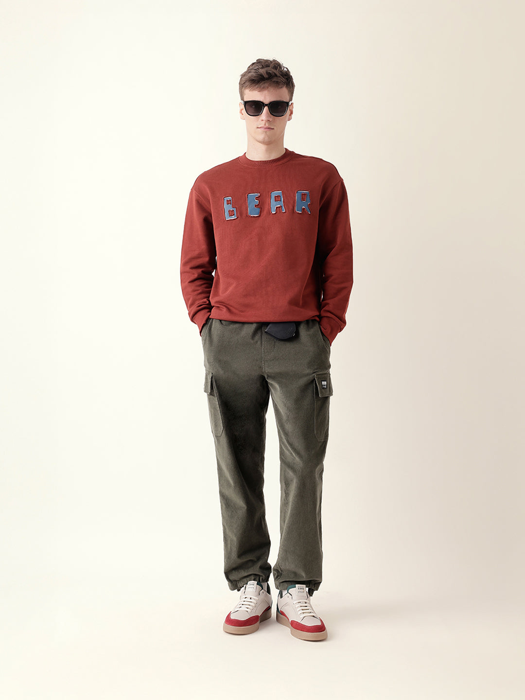 Rust Relax Fit Crew Neck Sweatshirt with Distressed "BEAR"