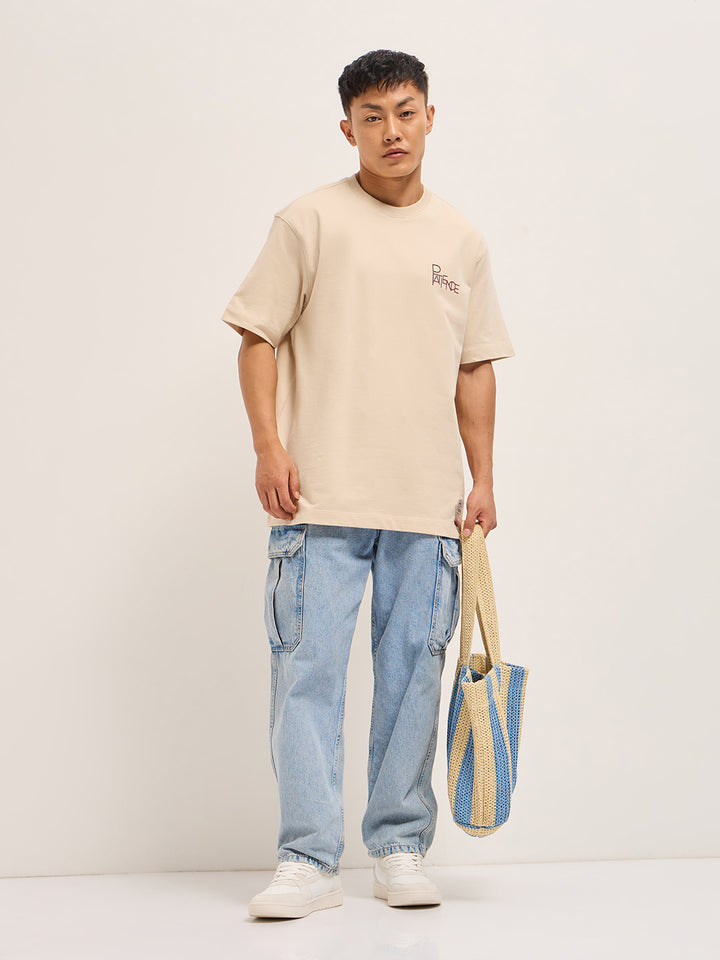 Shop Beige Oversized T-Shirt with Artistic Graphic Print on Back Online