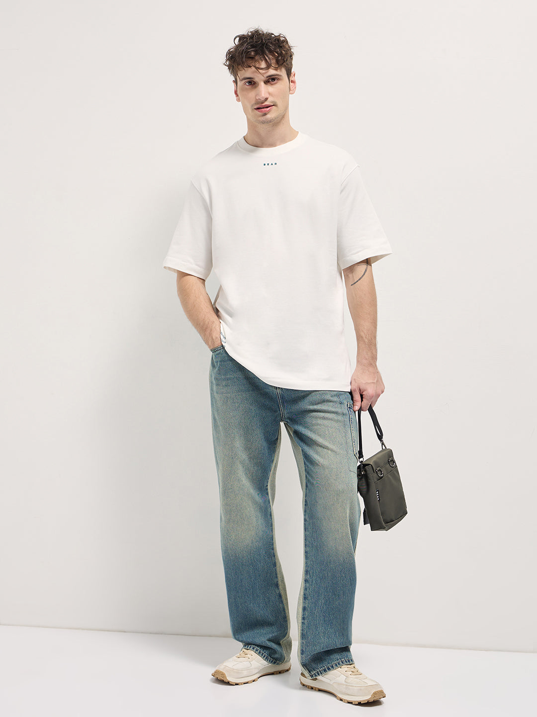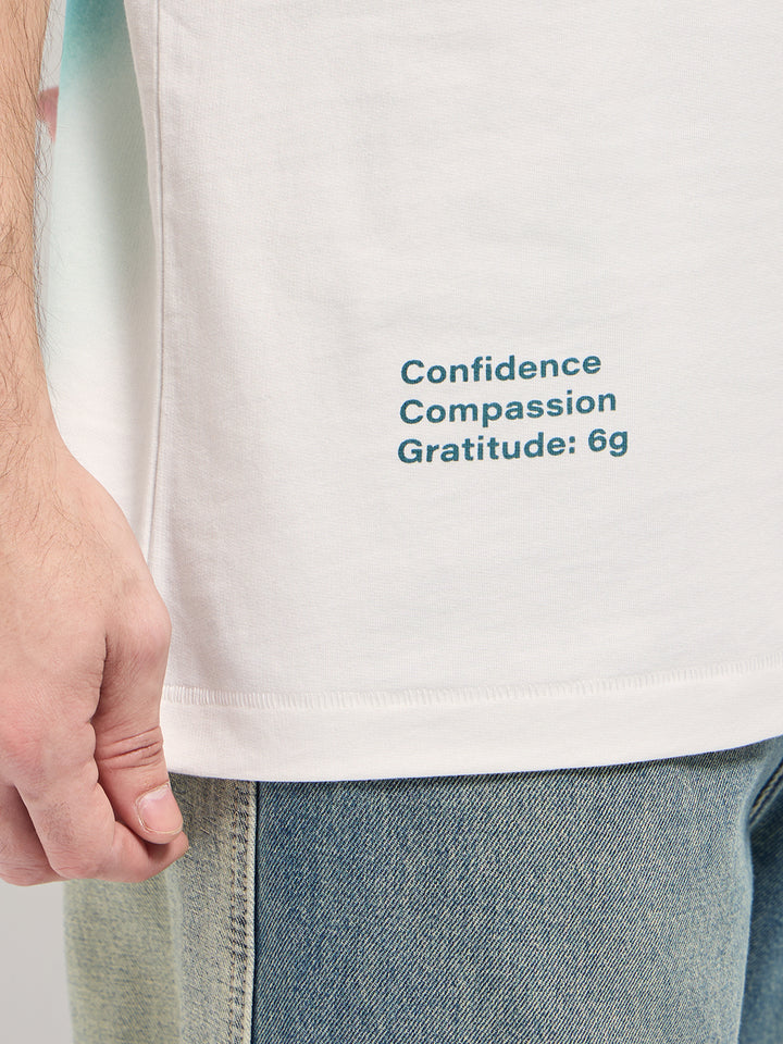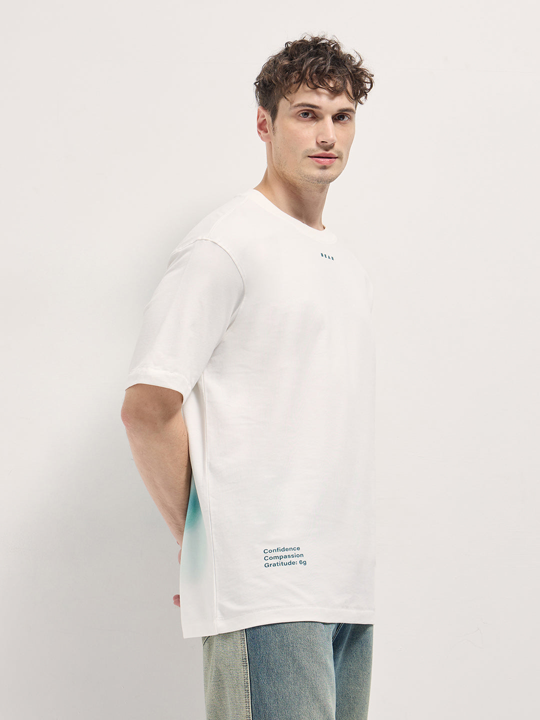 White Gradient Graphic Back Printed Oversize Crew Neck T-shirt