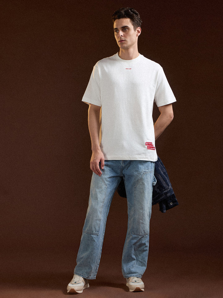 White Oversized Crew Neck T-Shirt with Back Graphic Print