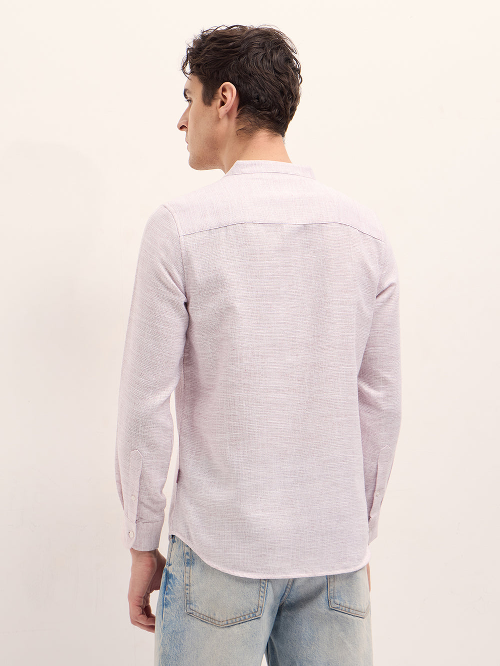 Light Pink Solid Slim Fit Casual Shirt with Mandarin Collar