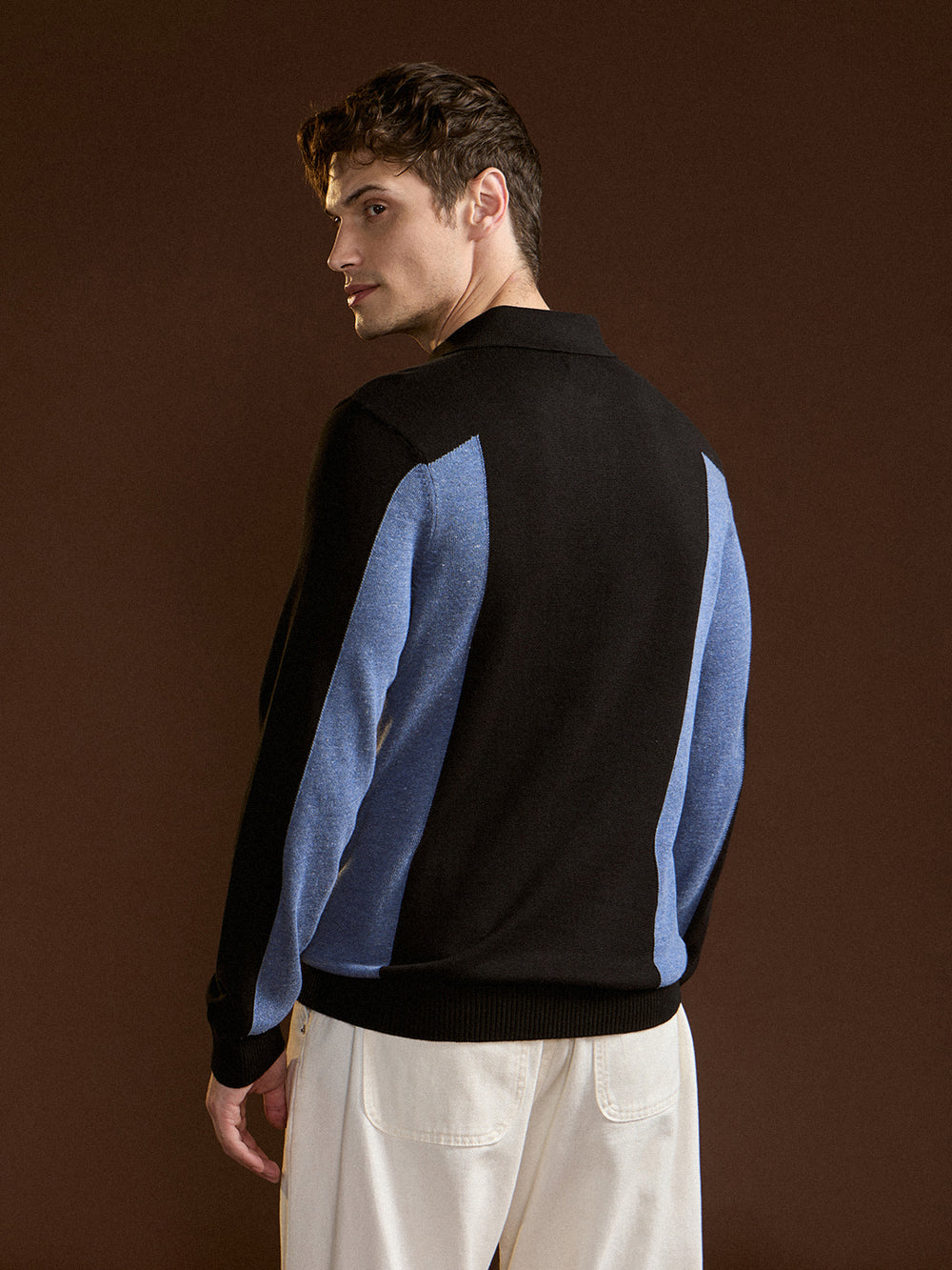 Navy Blue and White Color-Block Slim Fit Polo with Contrast Panels