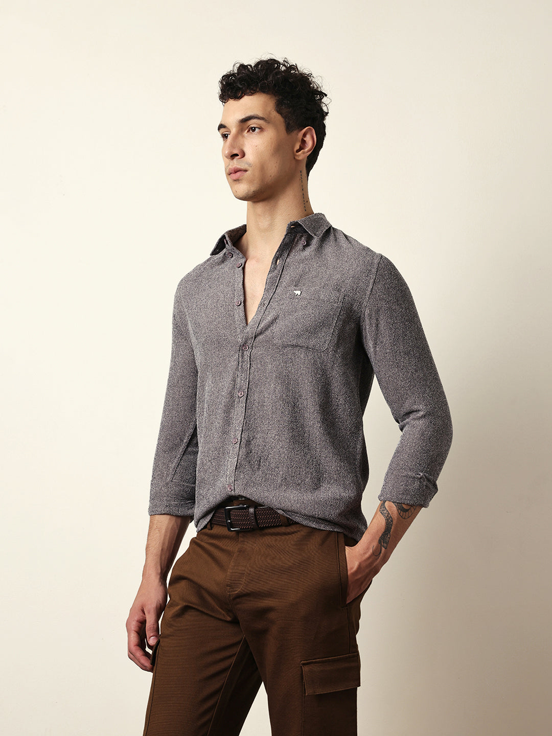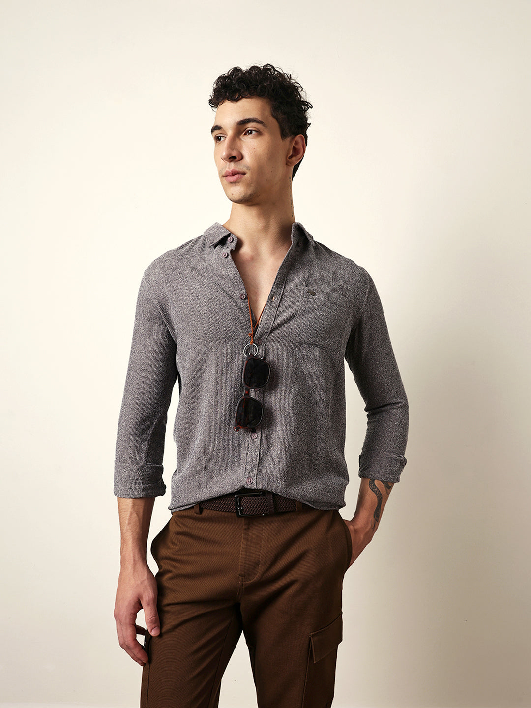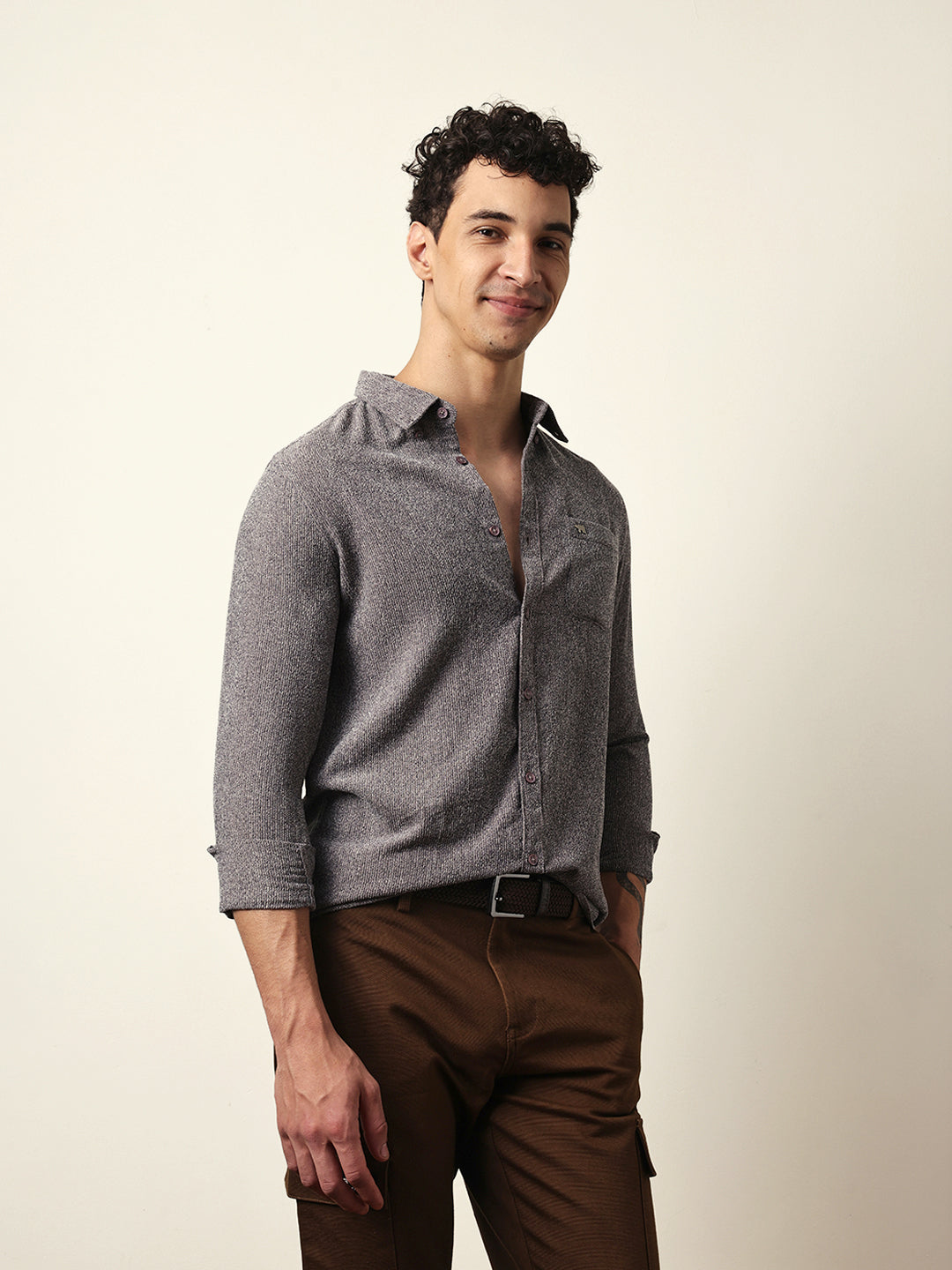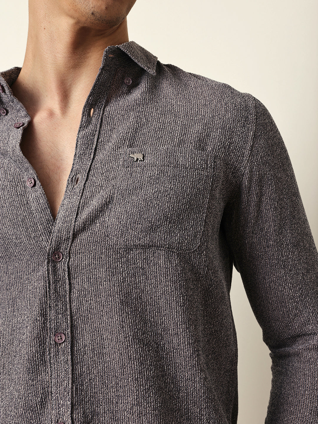 Shop Grey Textured Woven Striped Slim Fit Casual Shirt Online.