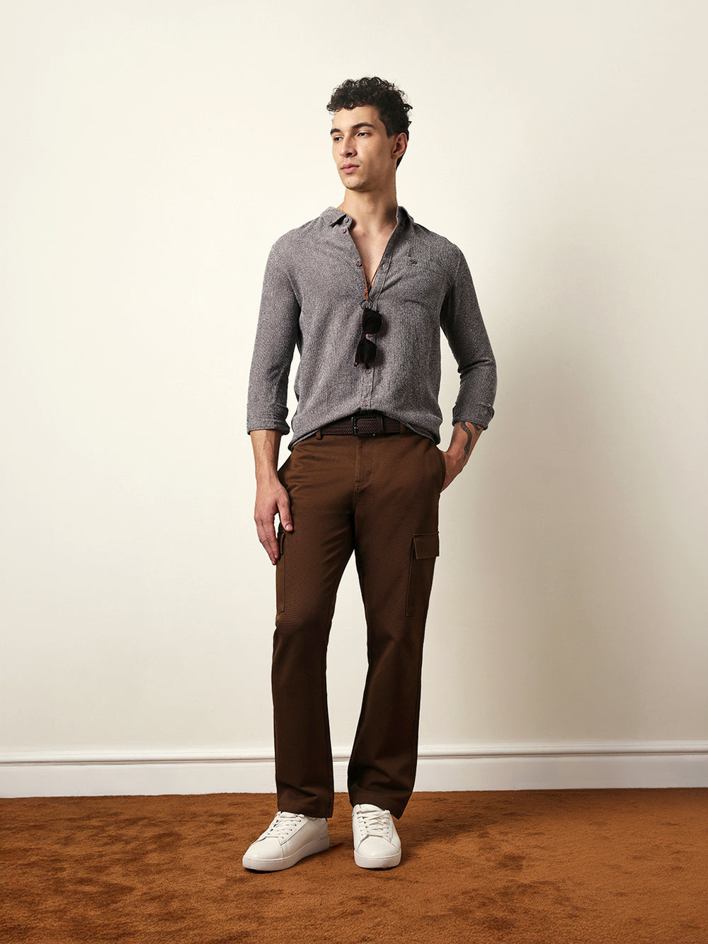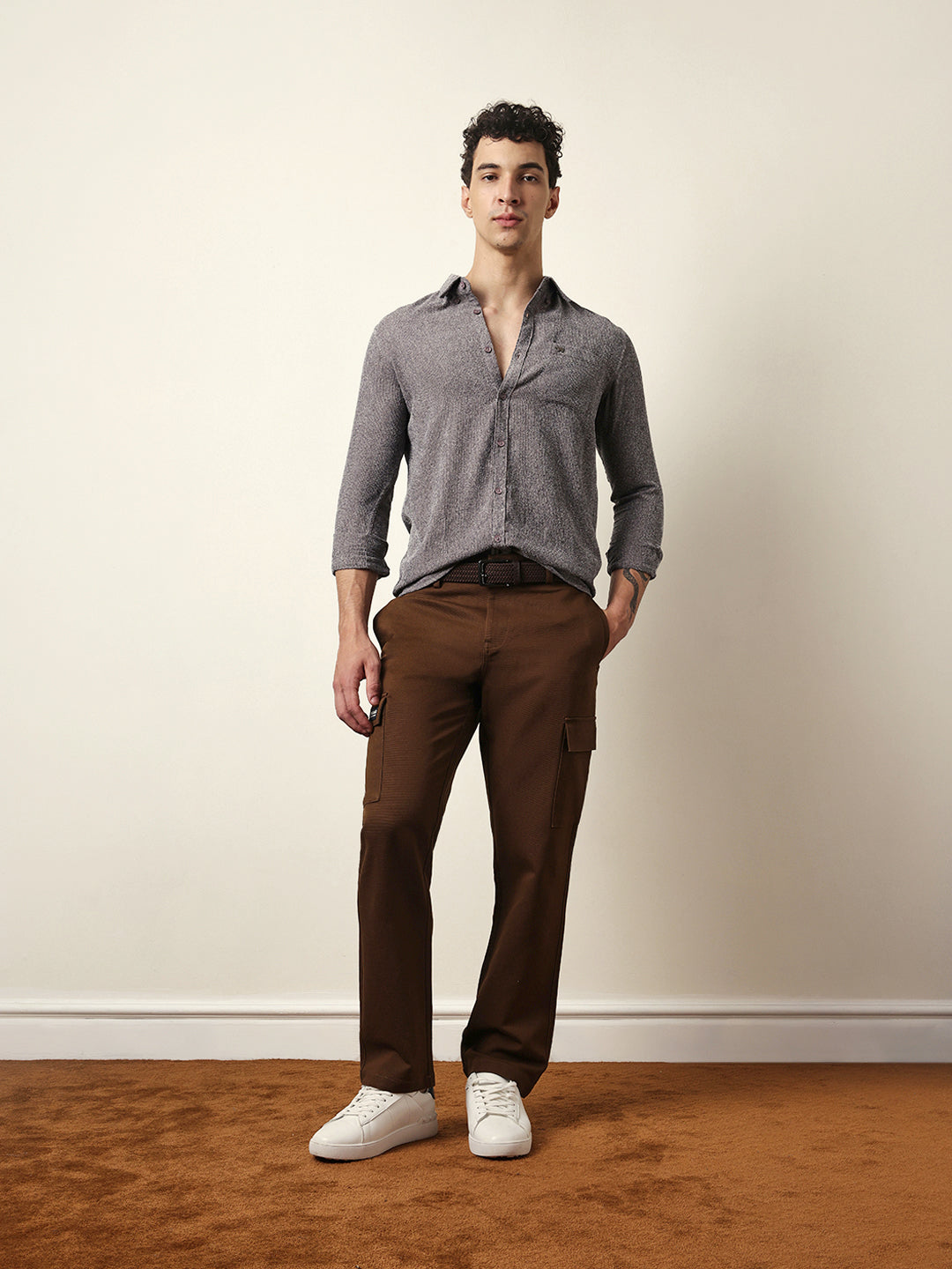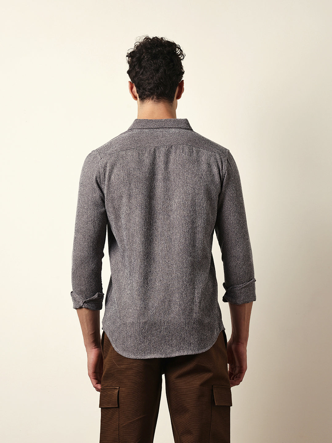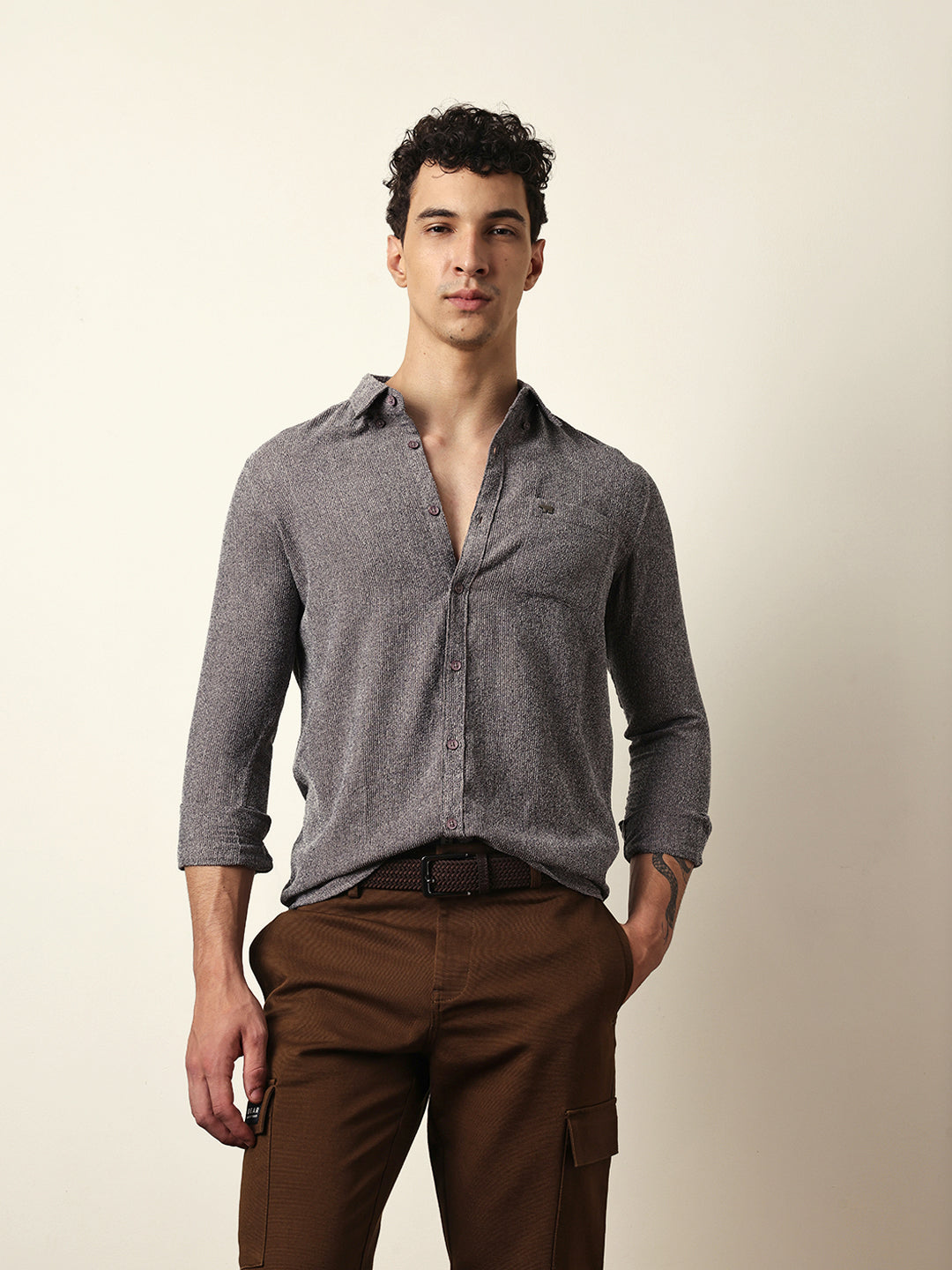Shop Grey Textured Woven Striped Slim Fit Casual Shirt Online.
