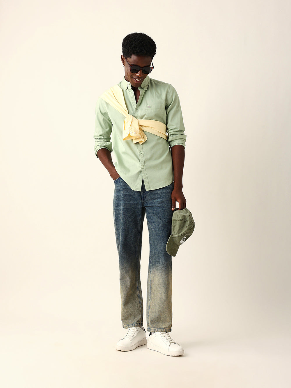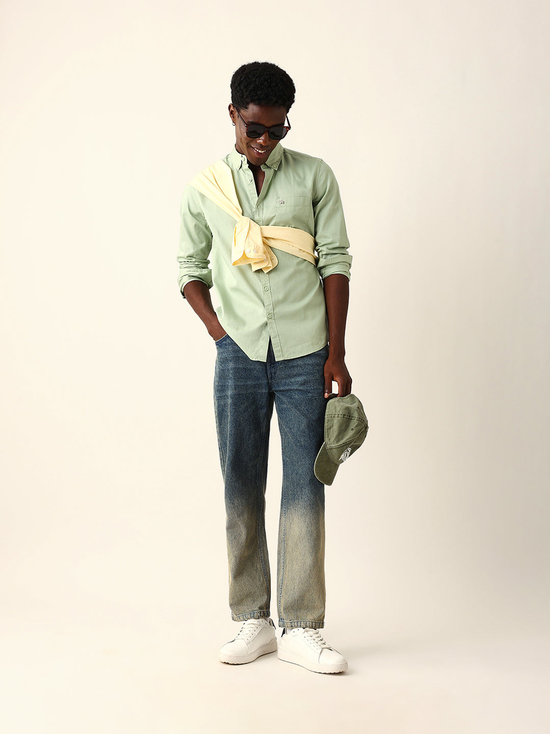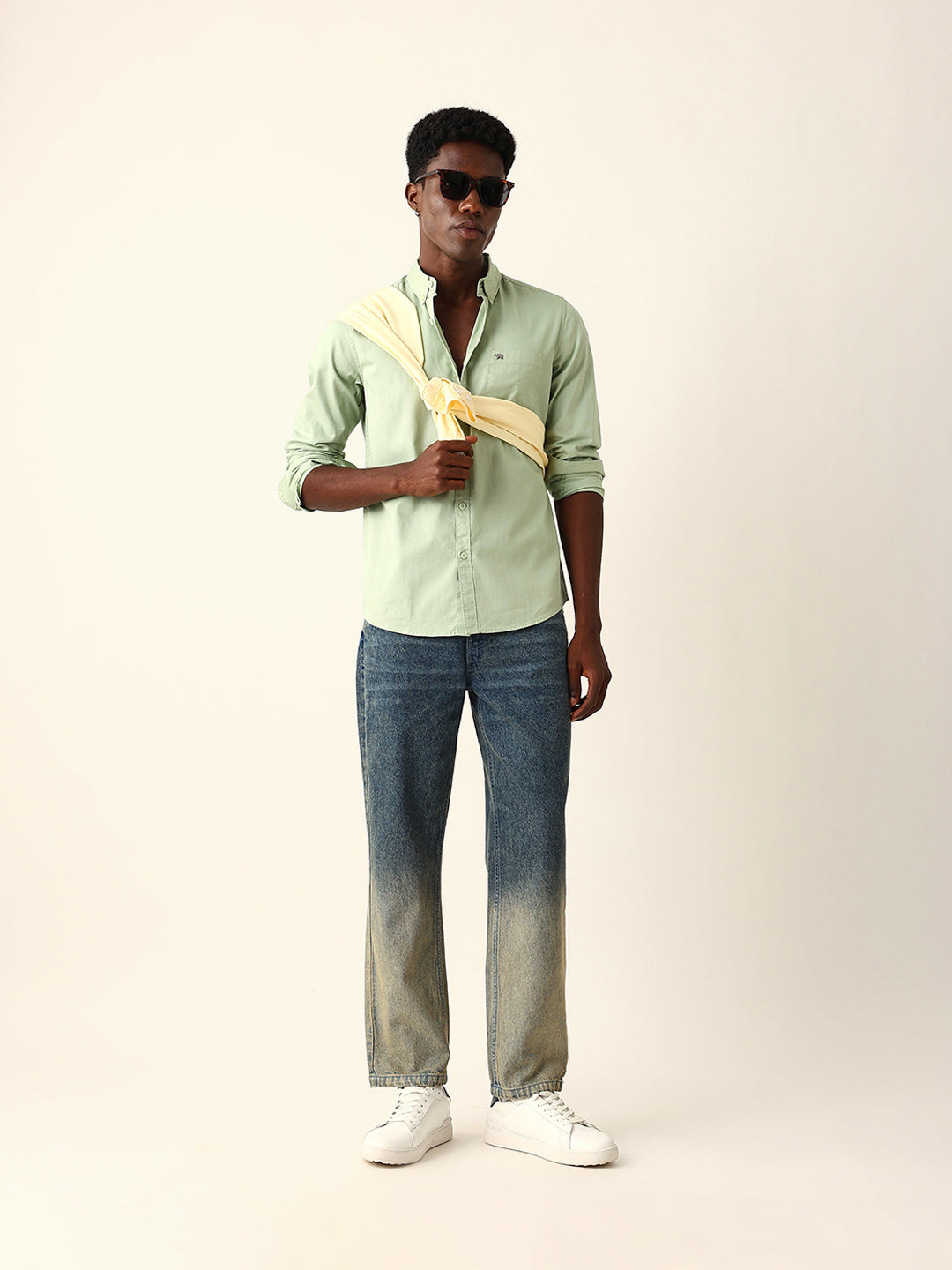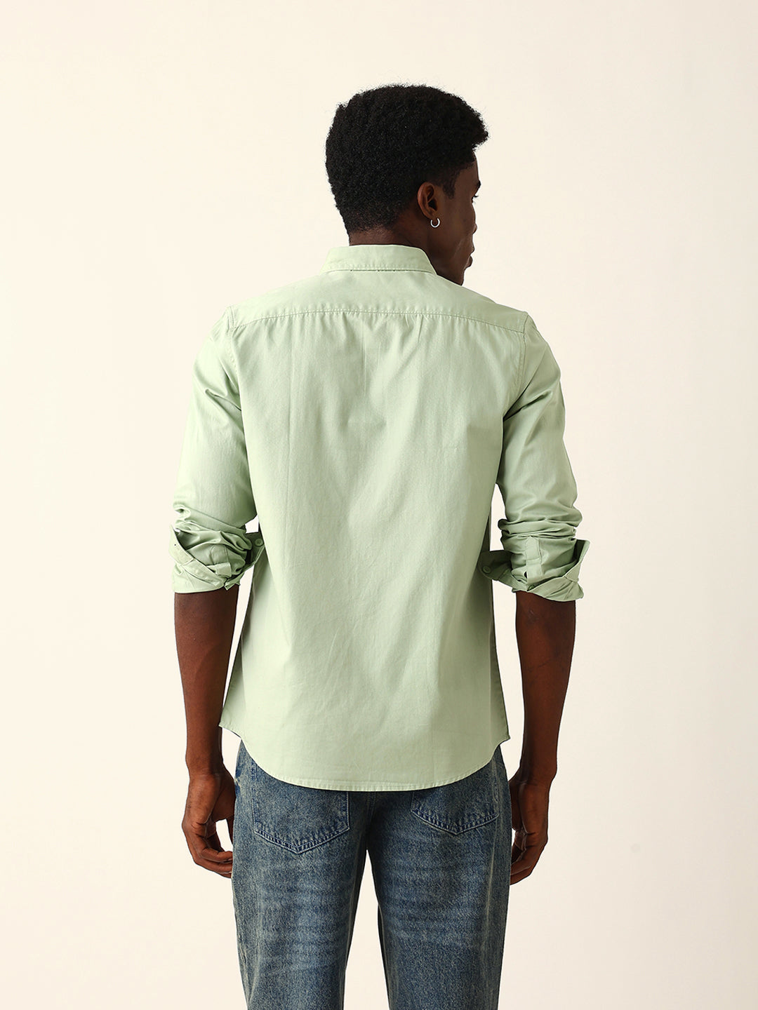 Light Green Solid Slim-Fit Casual Shirt with Button-Down Collar
