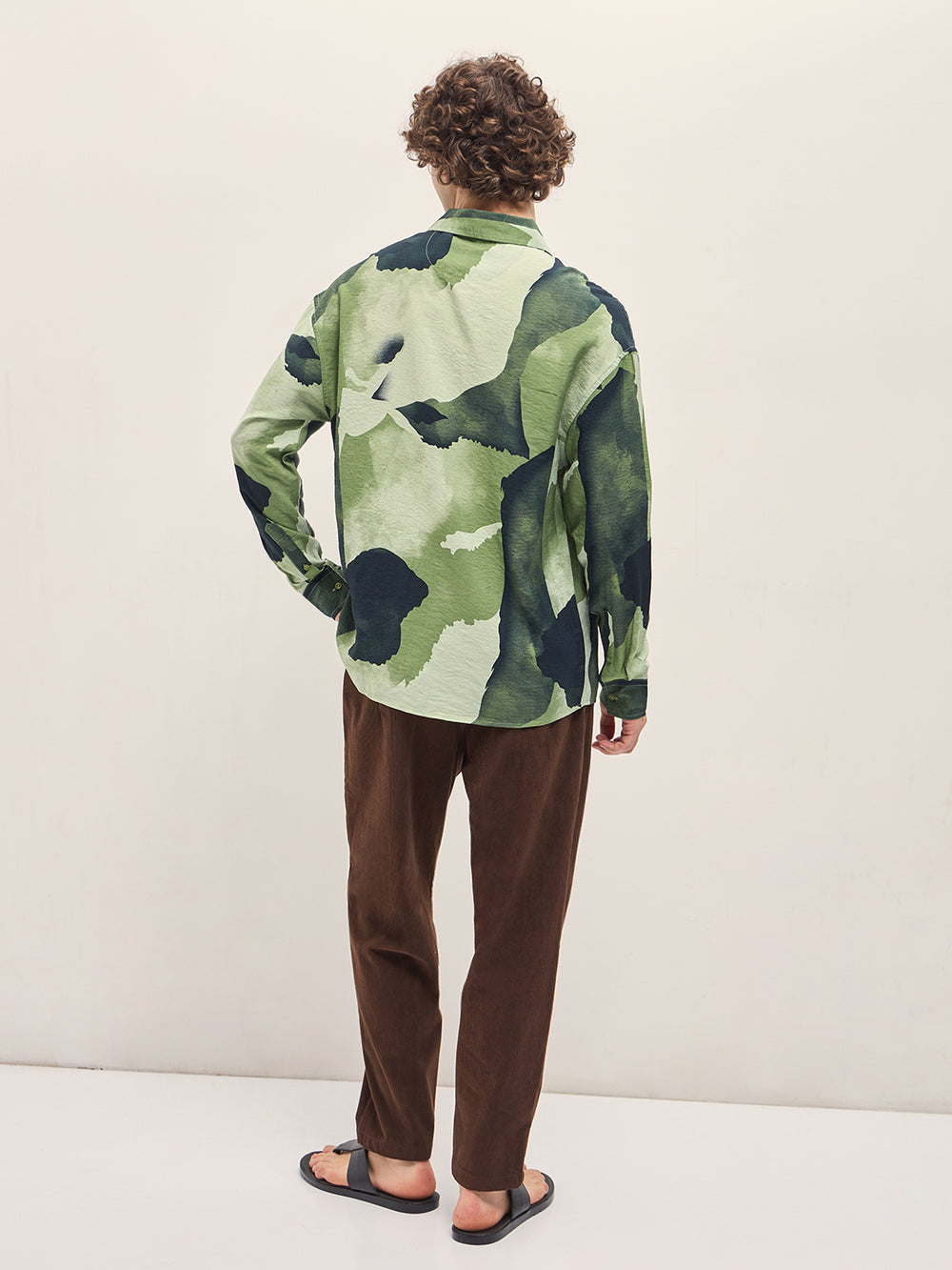Green Watercolor Camouflage Print Relax Fit Overshirt