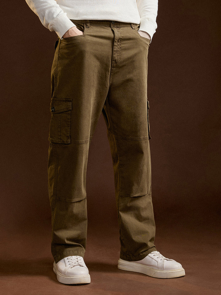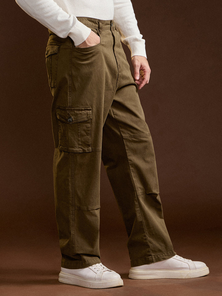 Brown Solid Straight Fit Functional & Stylish Cargo Pant