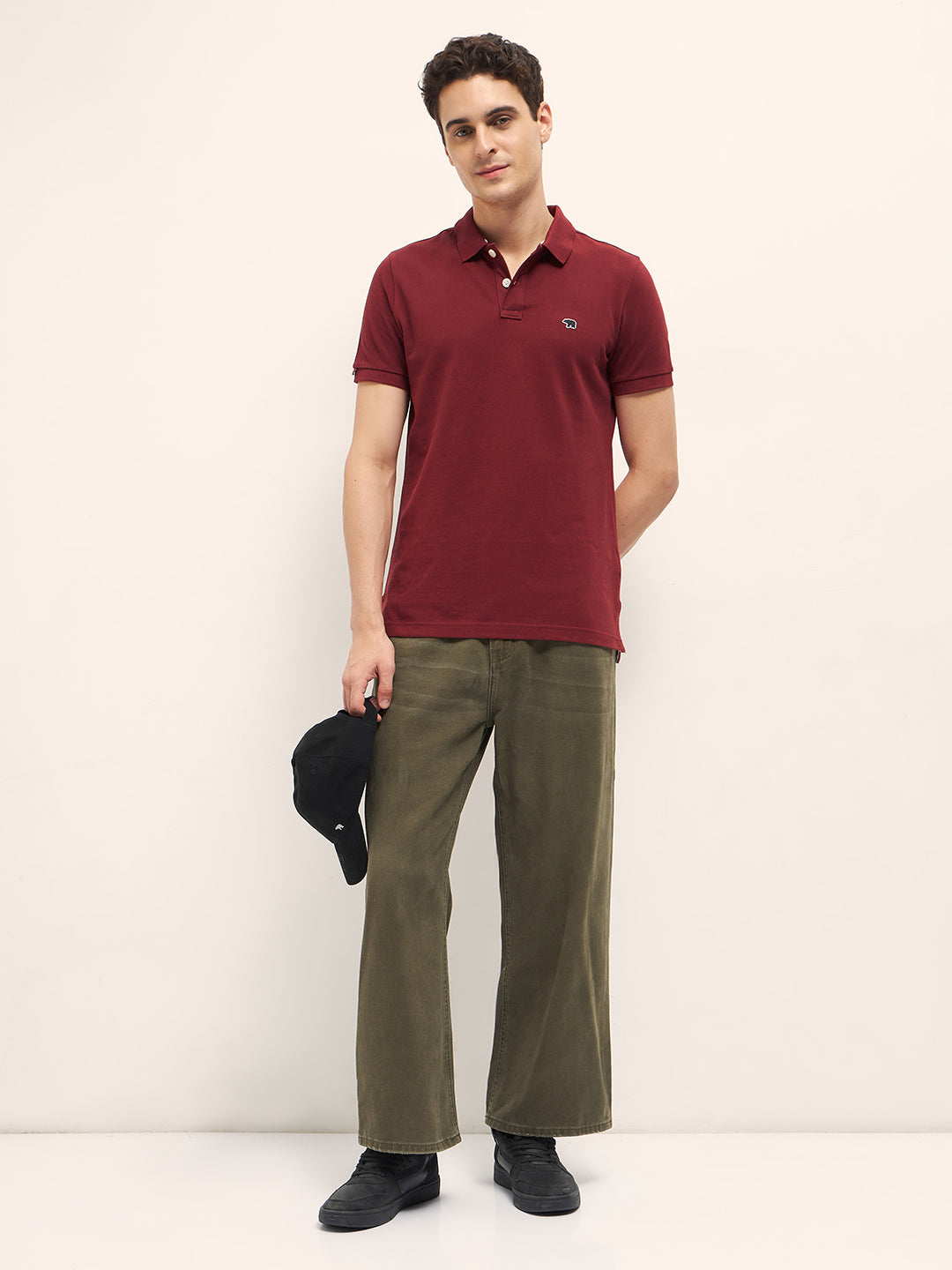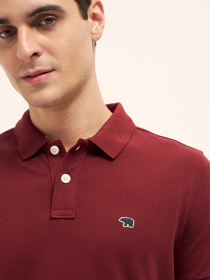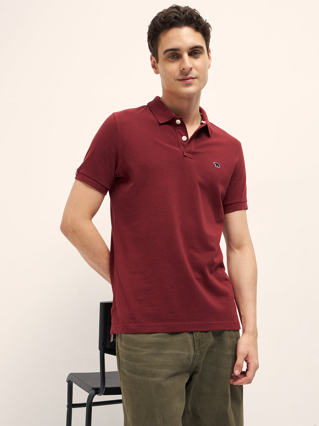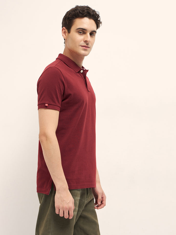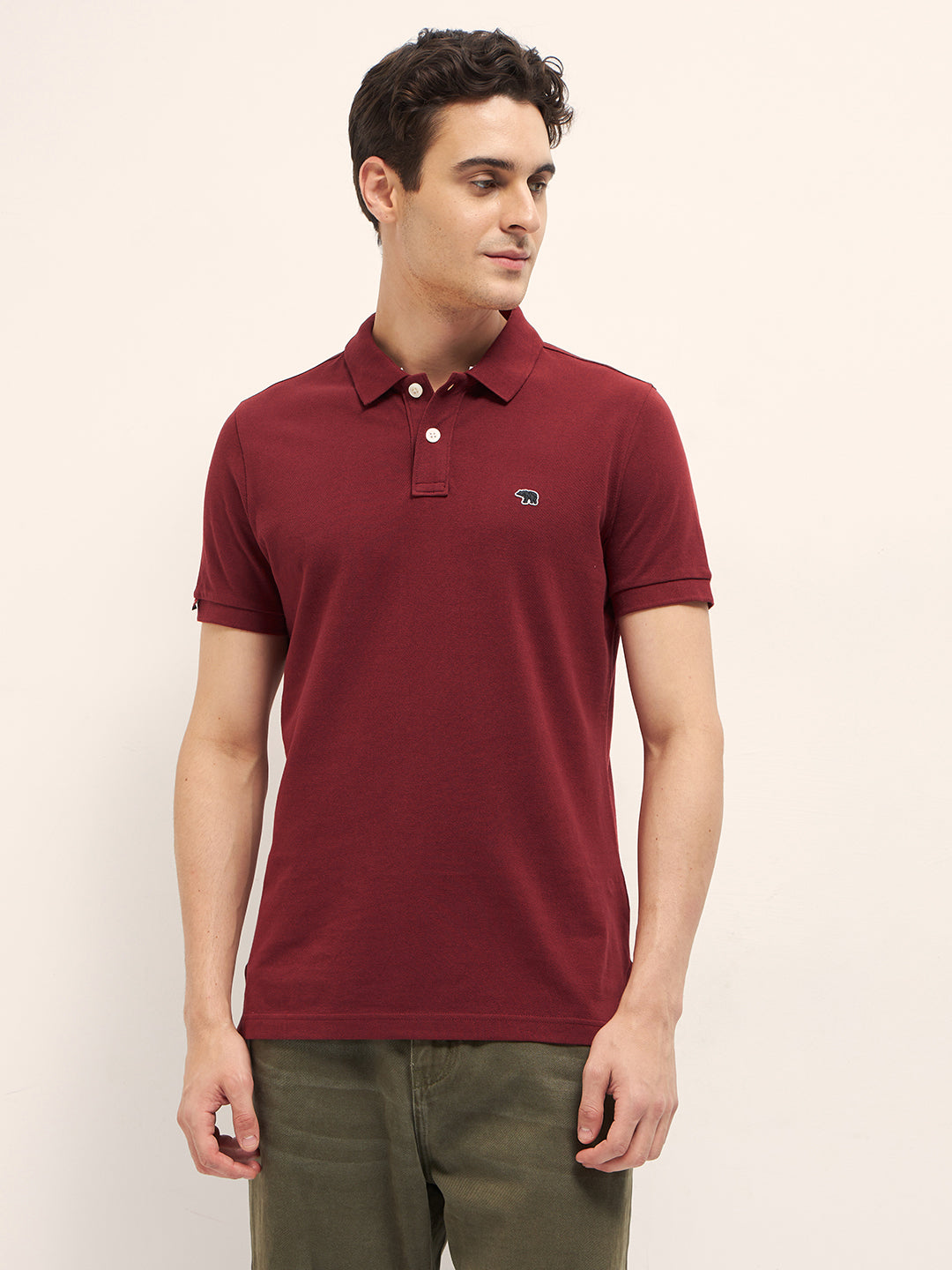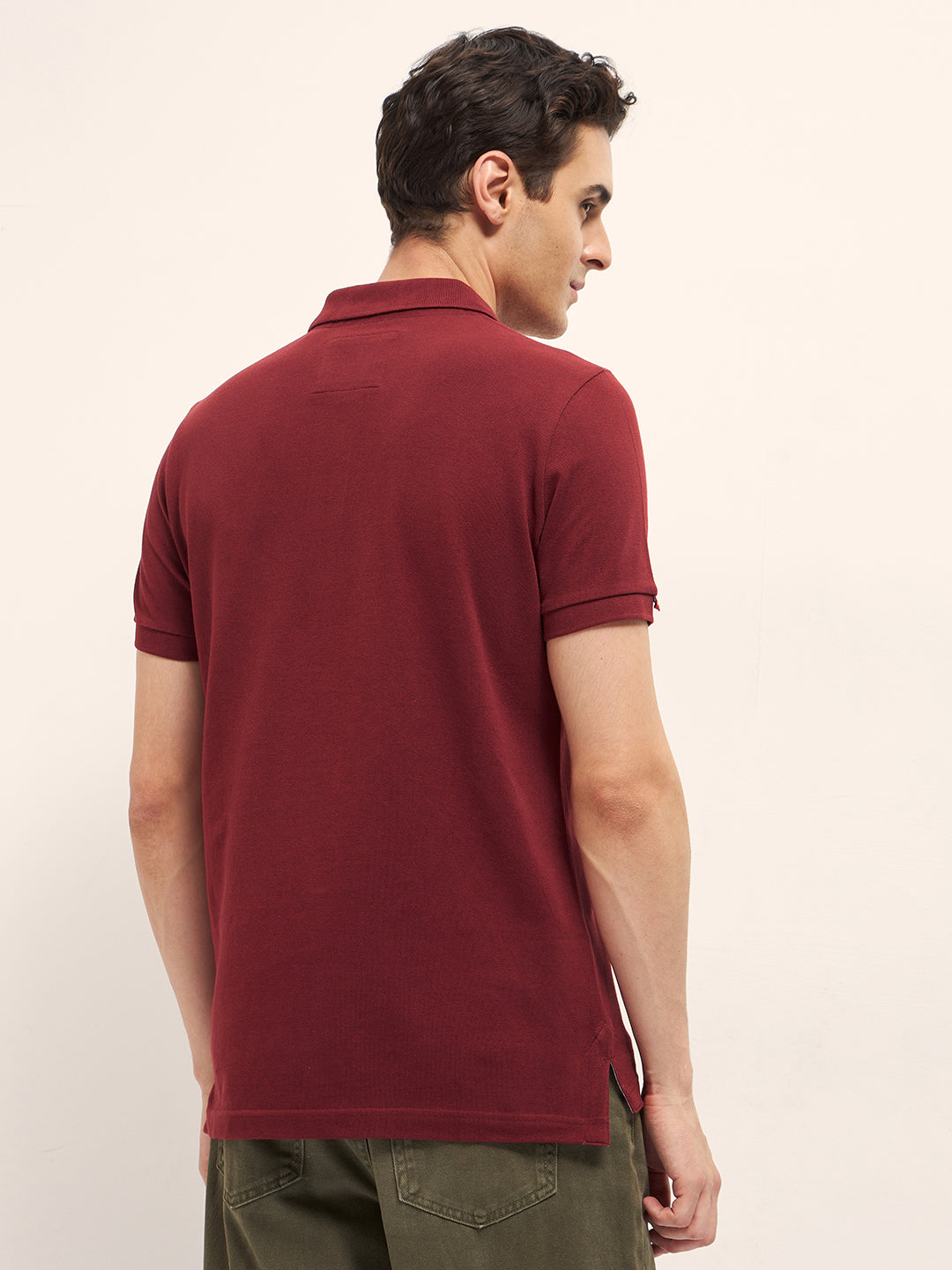Red Solid Regular Fit Polo with Embroidered Chest Logo