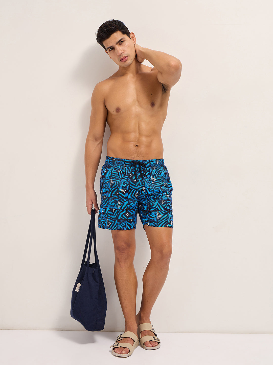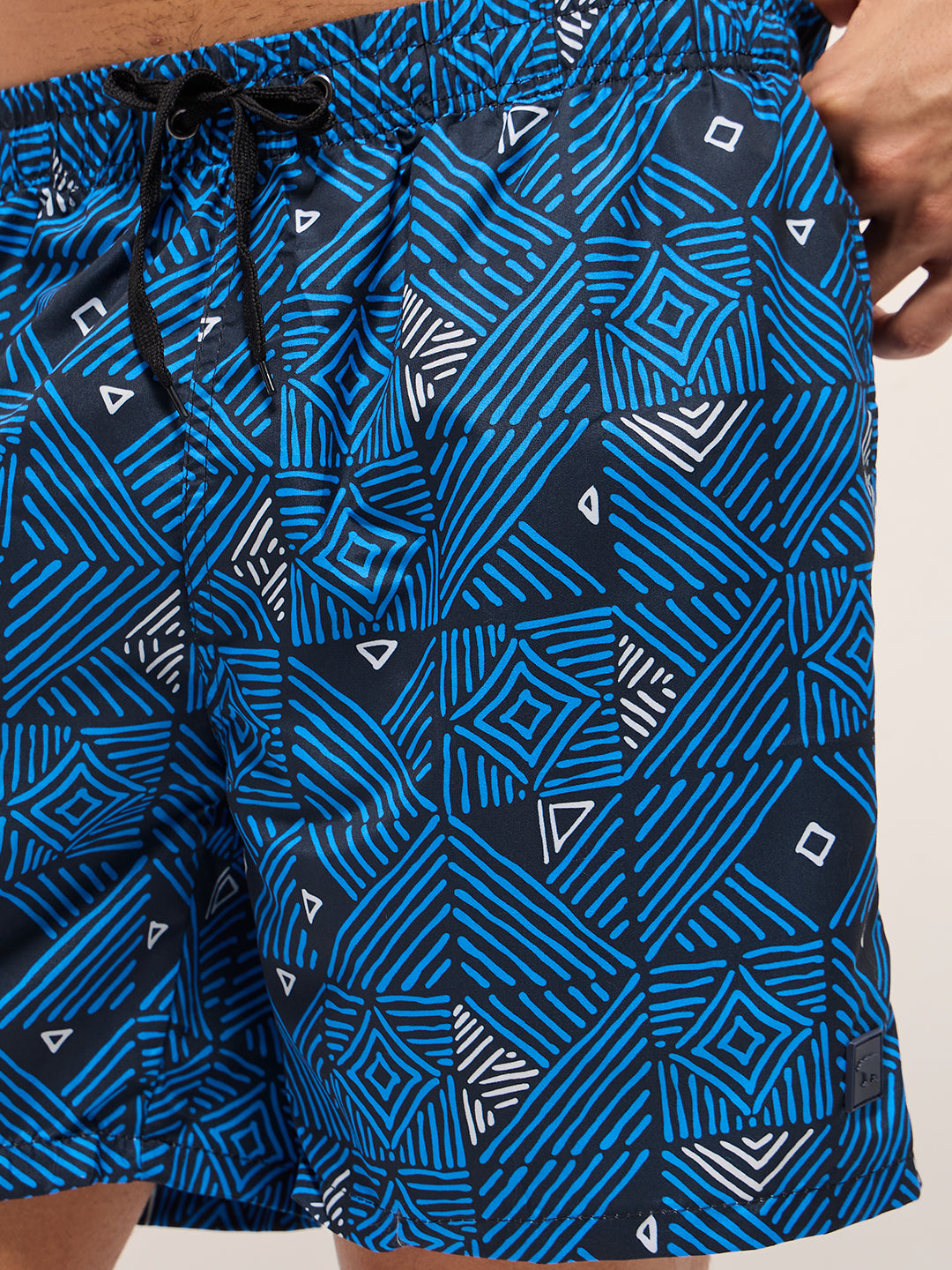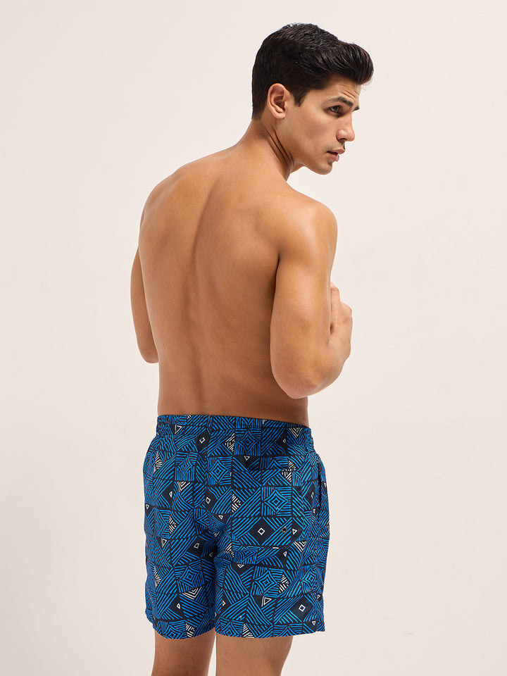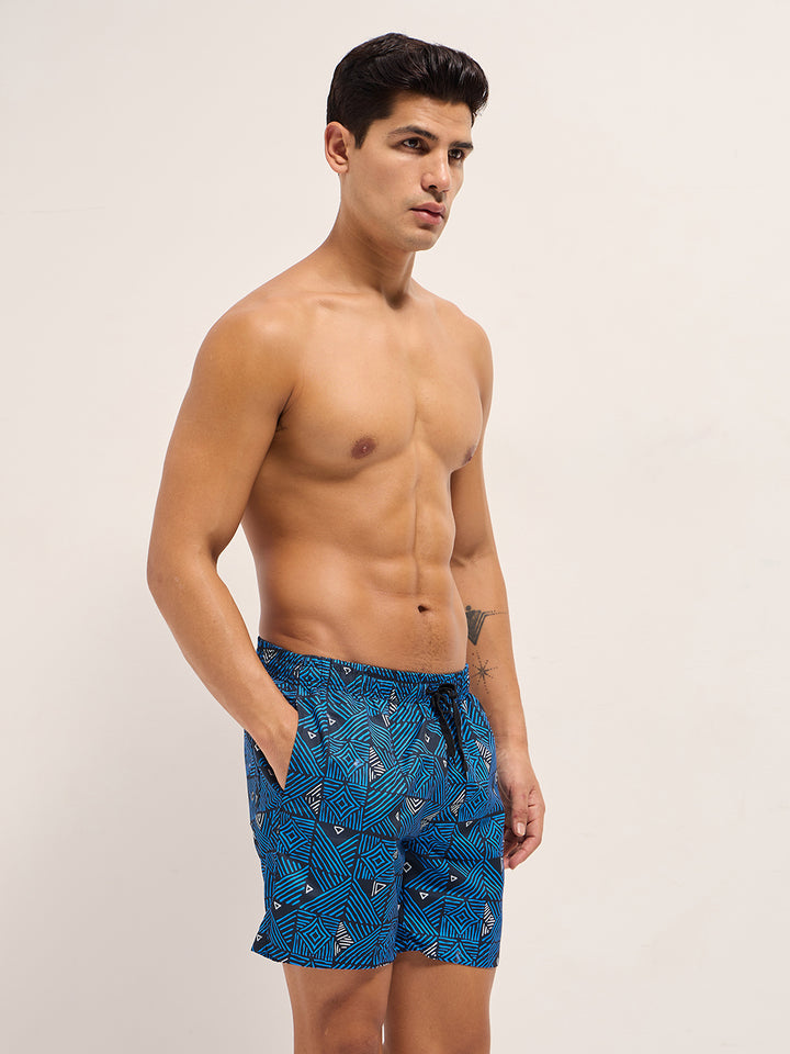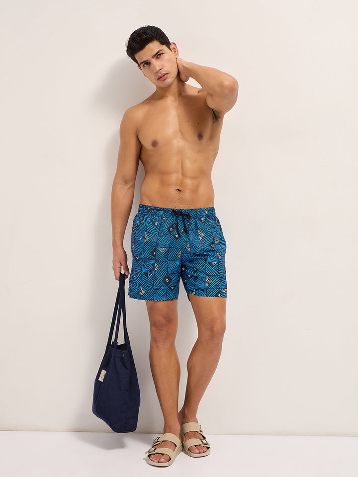 Blue Printed Swim Shorts with Elastic Waist – Perfect for Summer