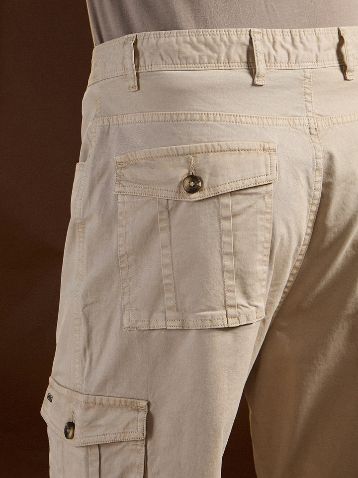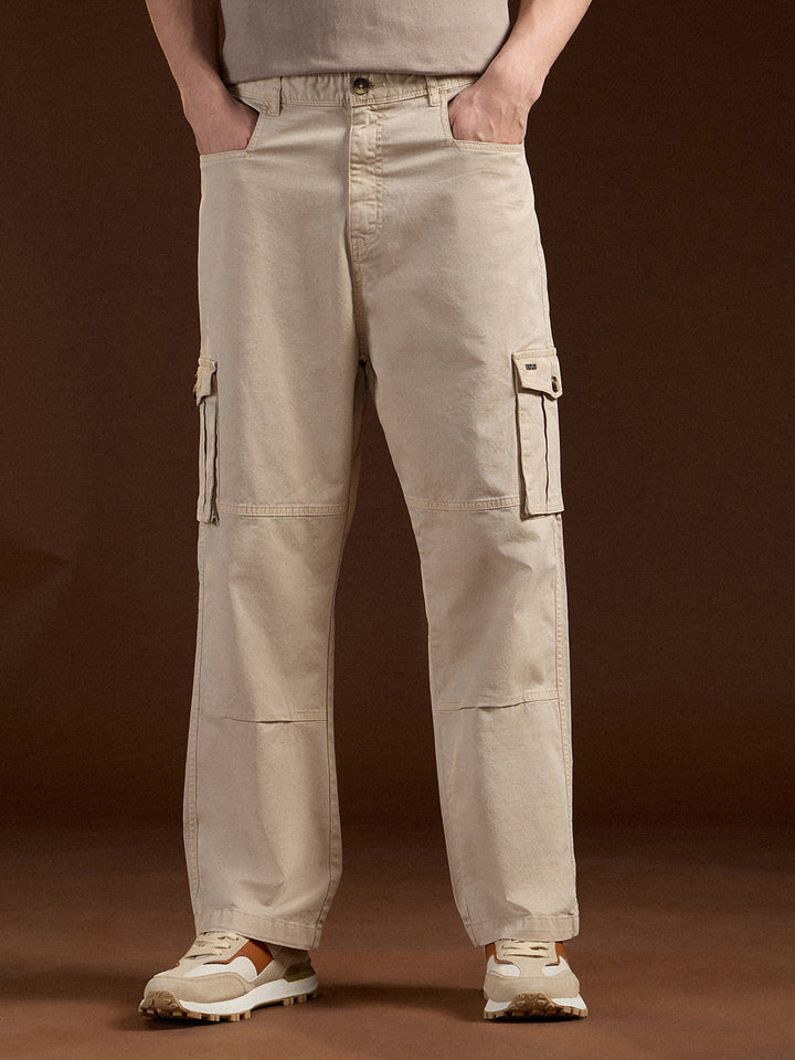 Cream Solid Straight Fit Functional & Stylish Cargo Pant
