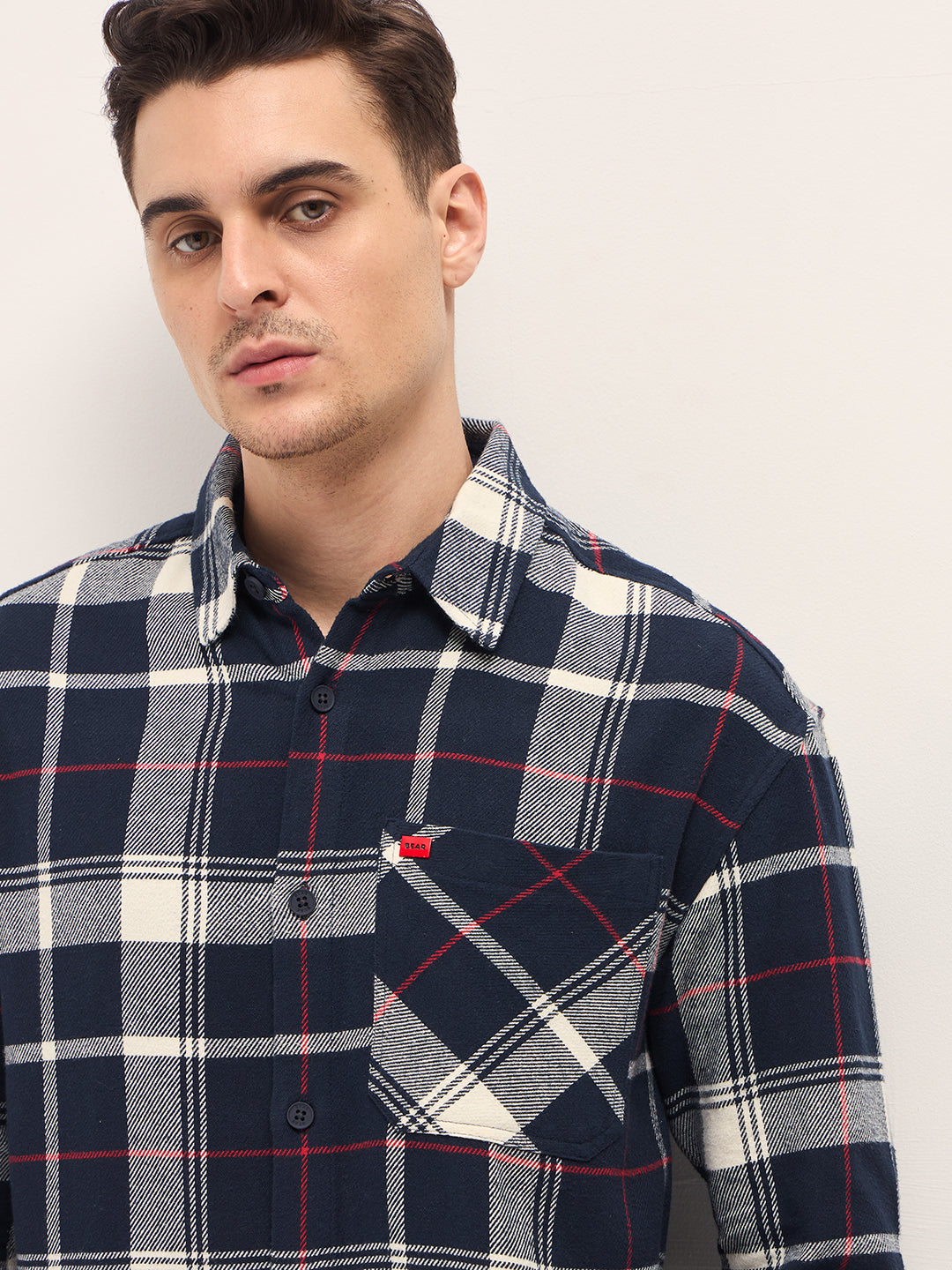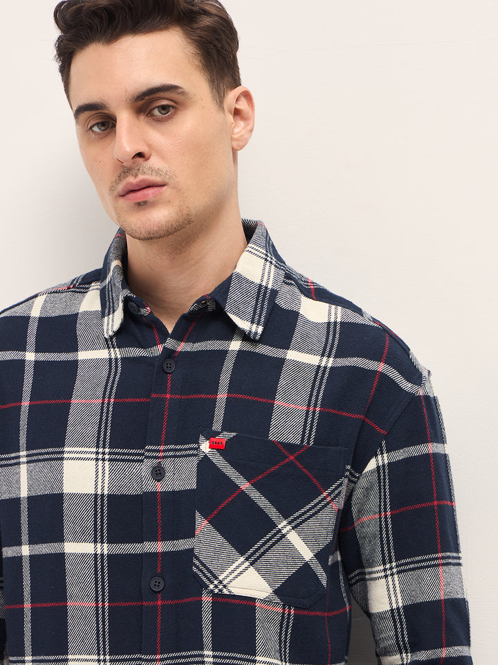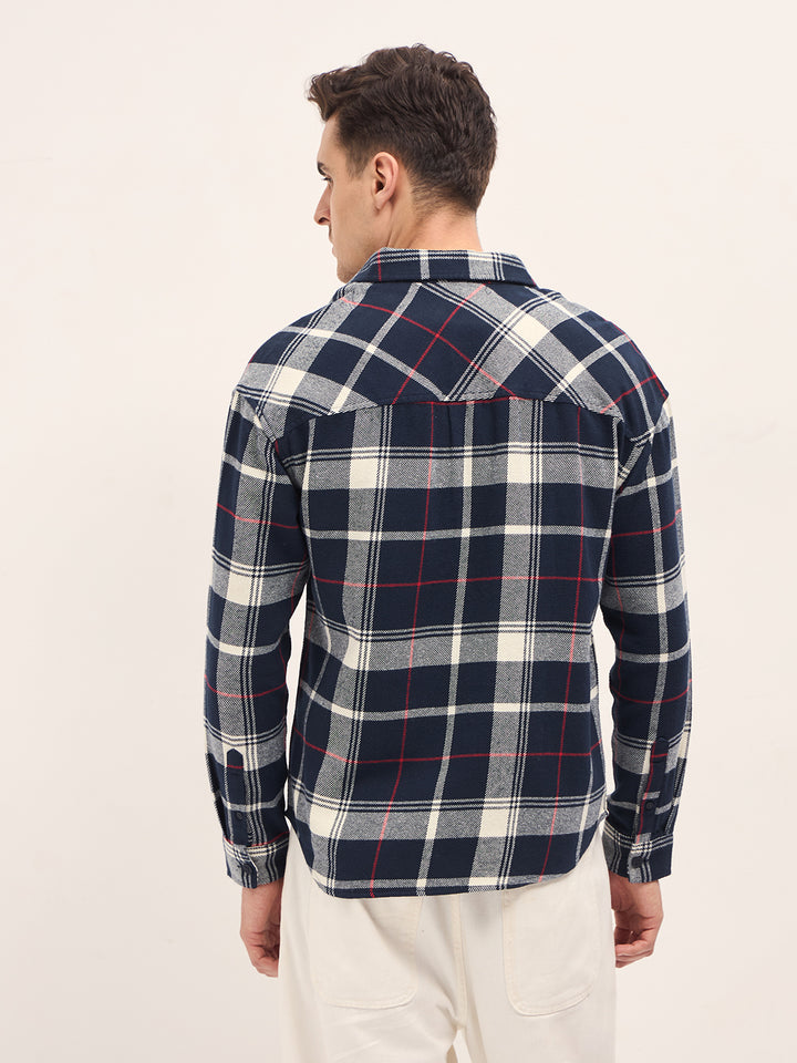 Navy Blue with White Checkered Relax Fit Overshirt