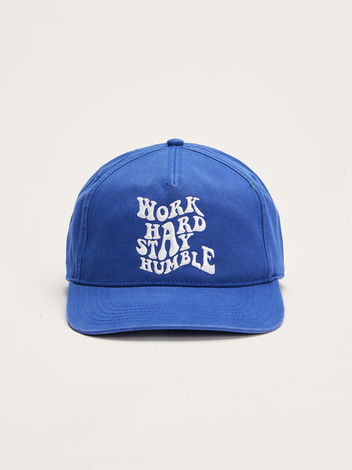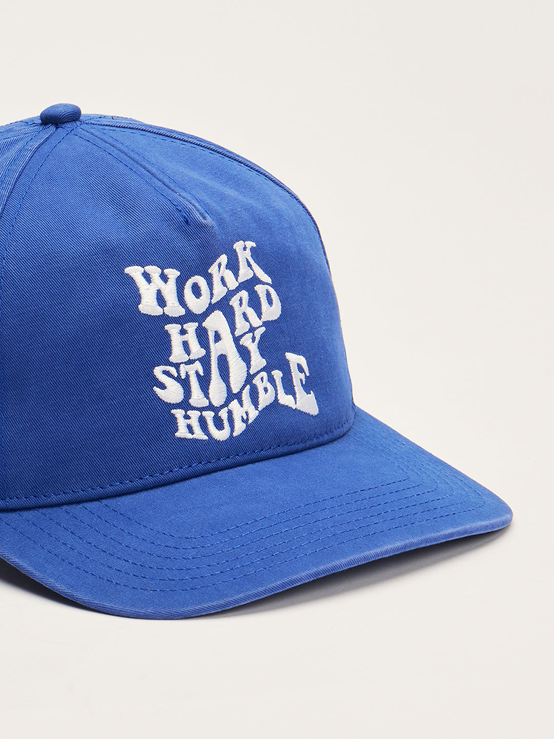 Design: Embroidered "Work Hard Stay Humble" text for a statement look