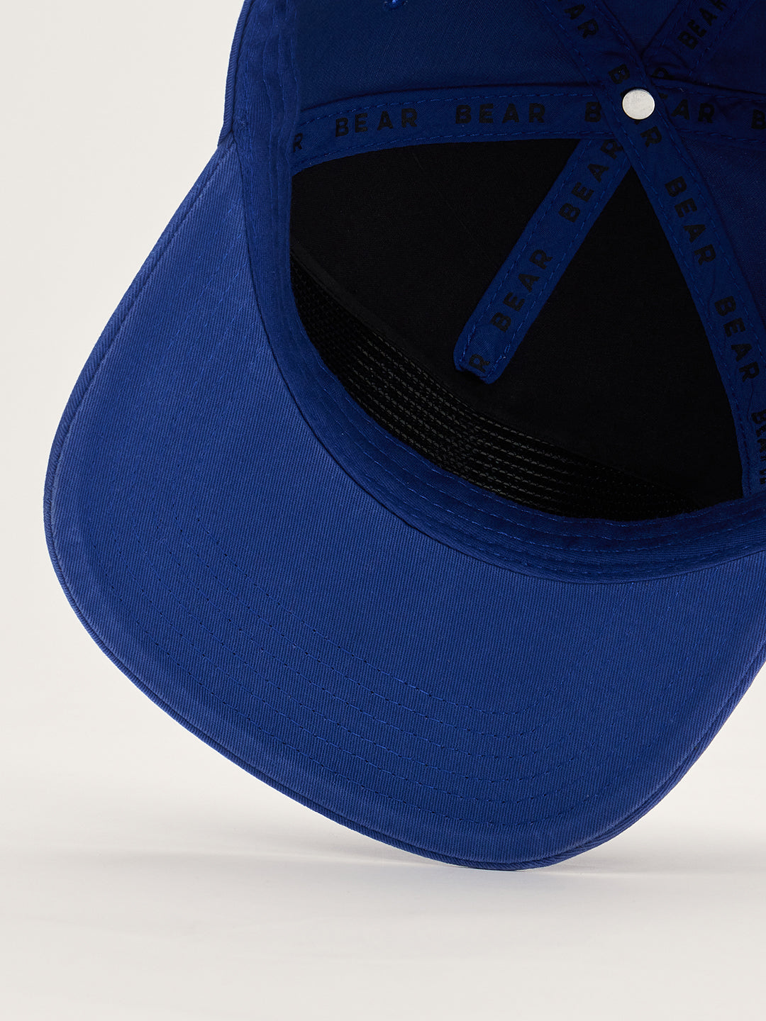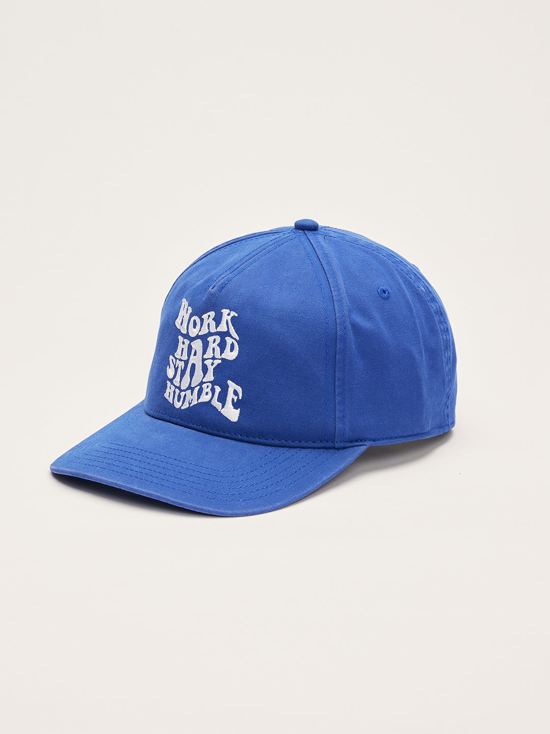 Shop Blue Cotton Snapback Baseball Cap with Embroidered Text Online.