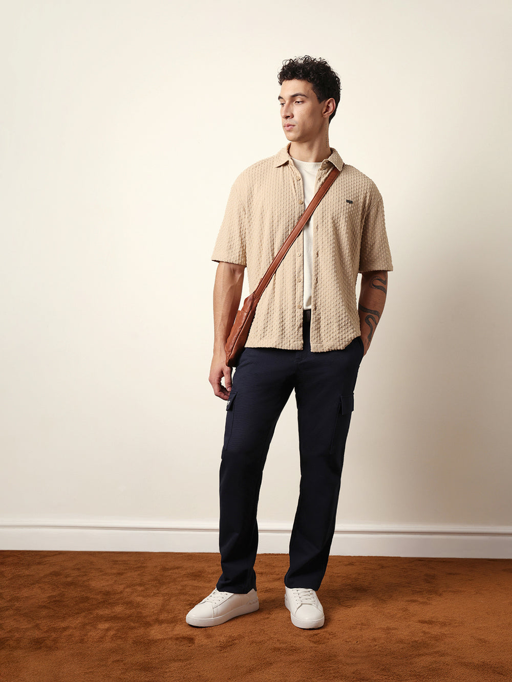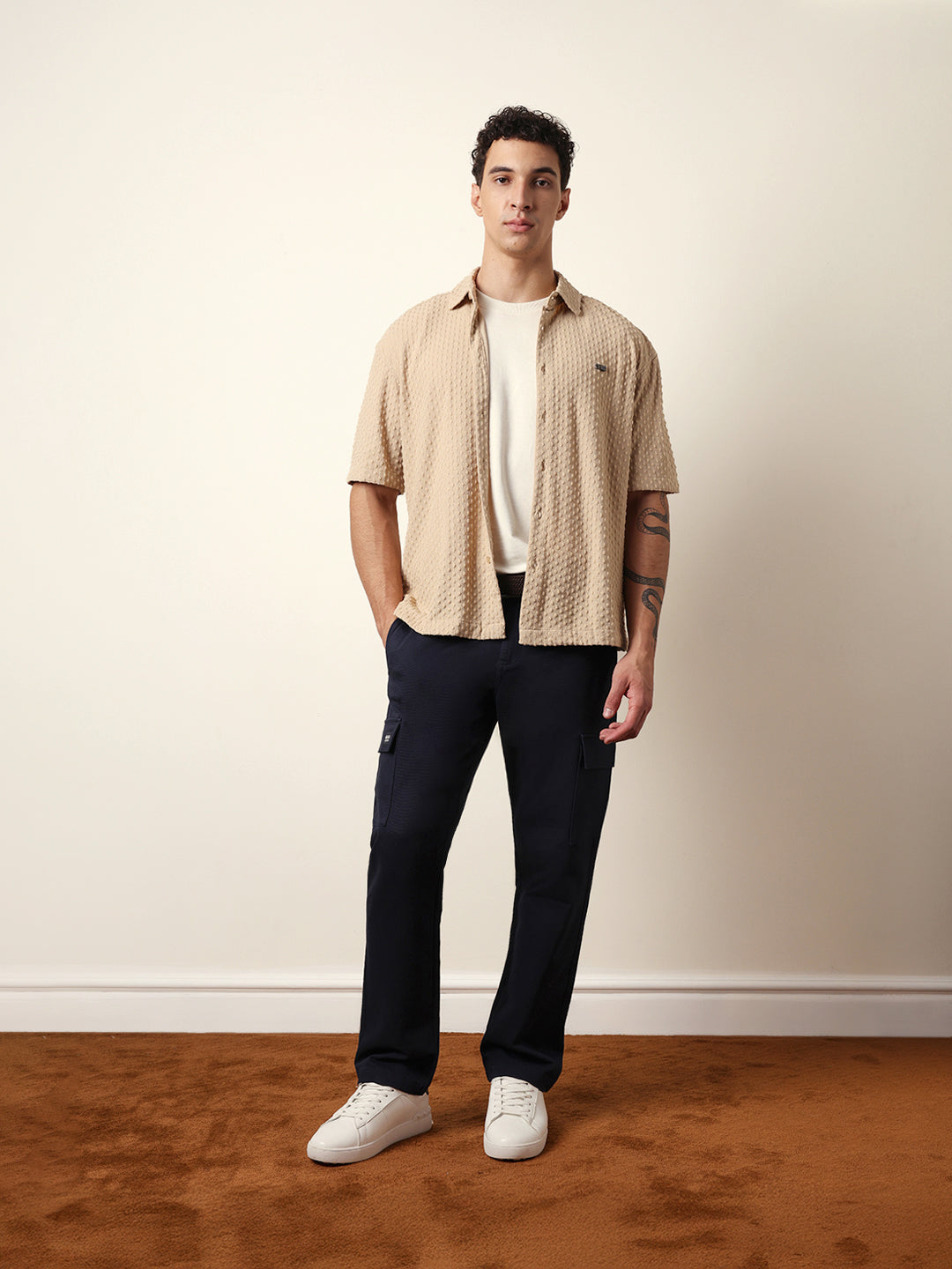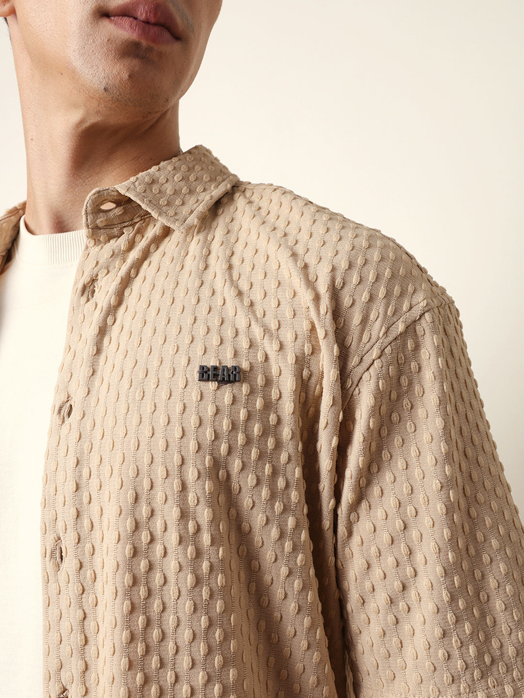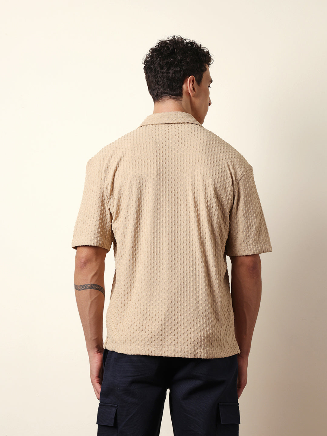 Shop Cream Textured Woven Oversized Fit Half Sleeve Casual Shirt Online.