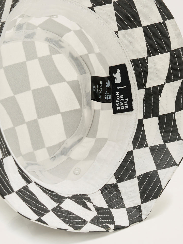 White and Black Checkered All-over Printed Bucket Hat
