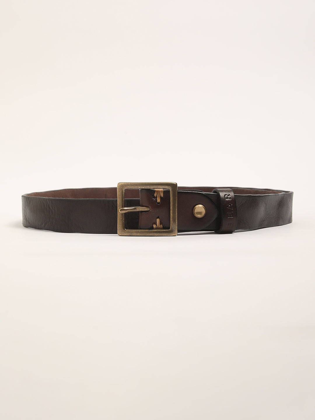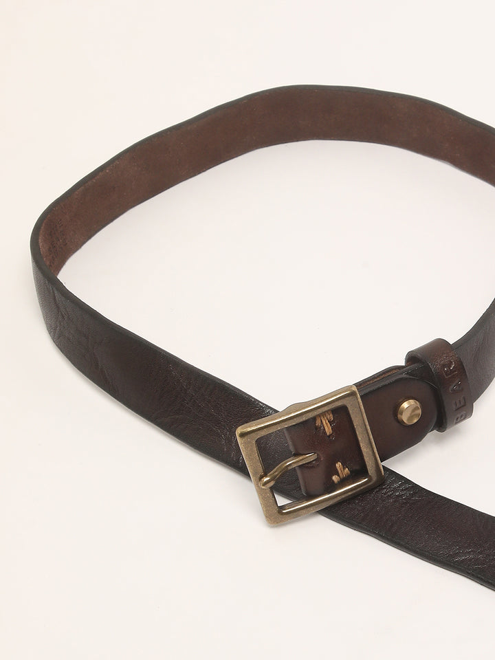 Men Brown Pure Leather Slim Width Casual Belt with Tang Closure