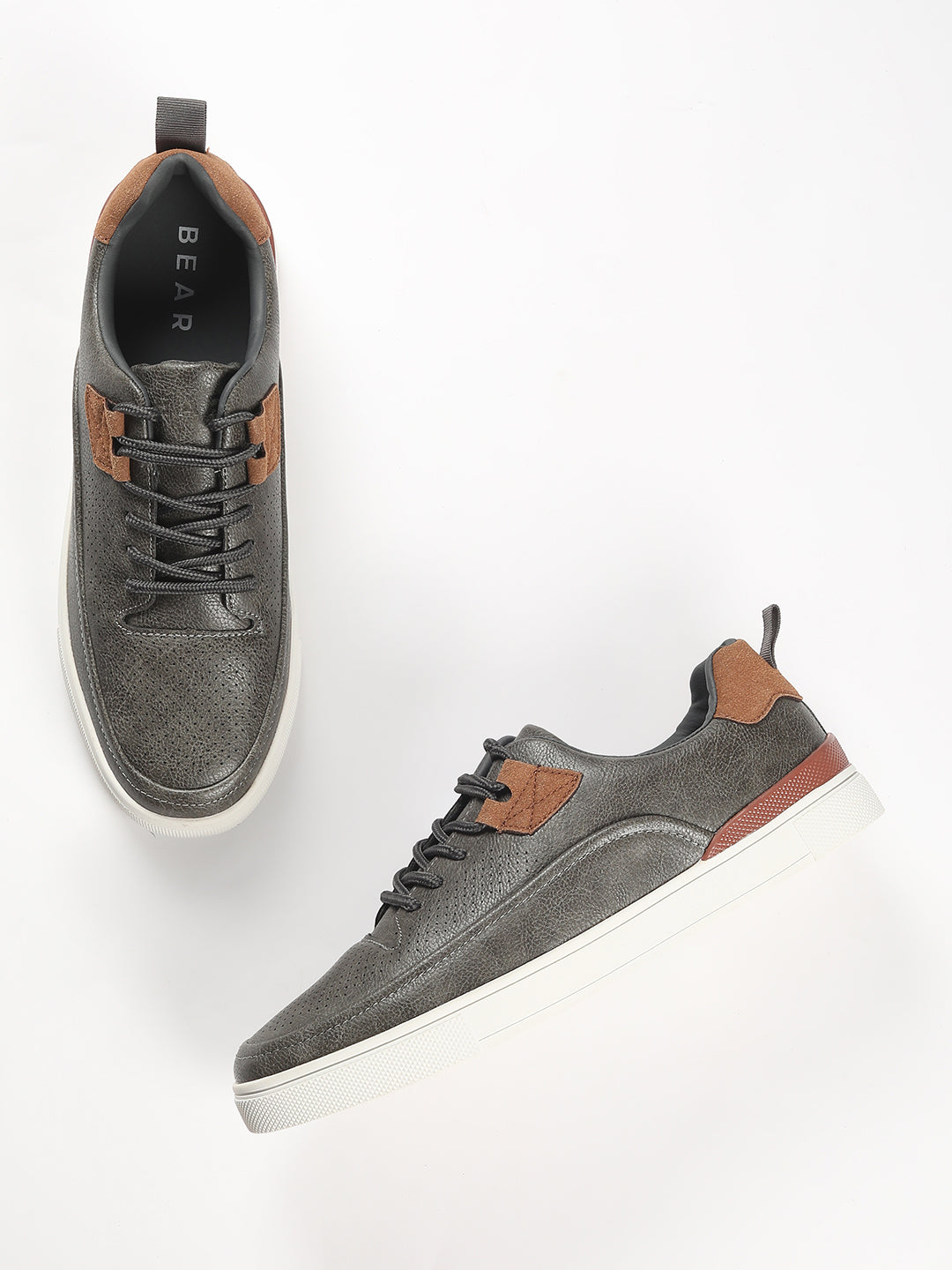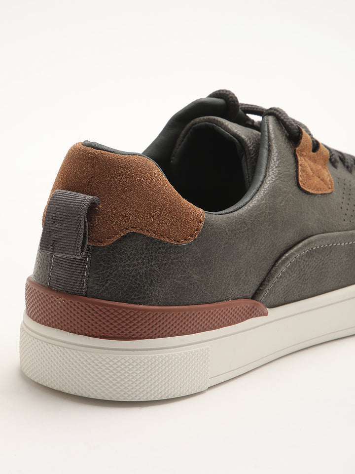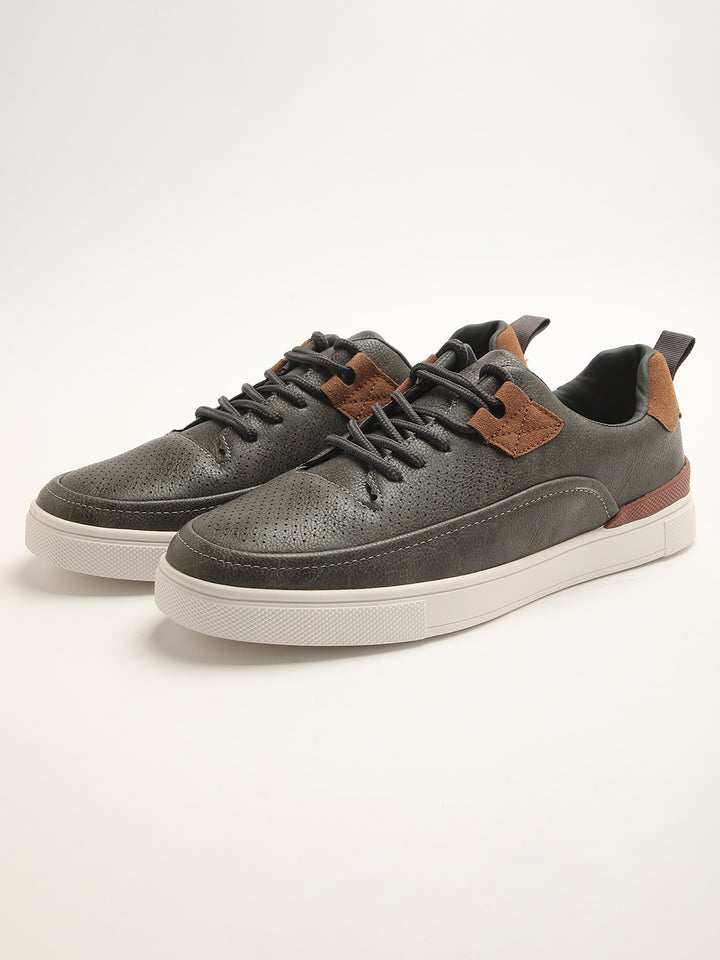 Shop Men's Olive Sneakers with Subtle Branding and Perforated Toe Online.
