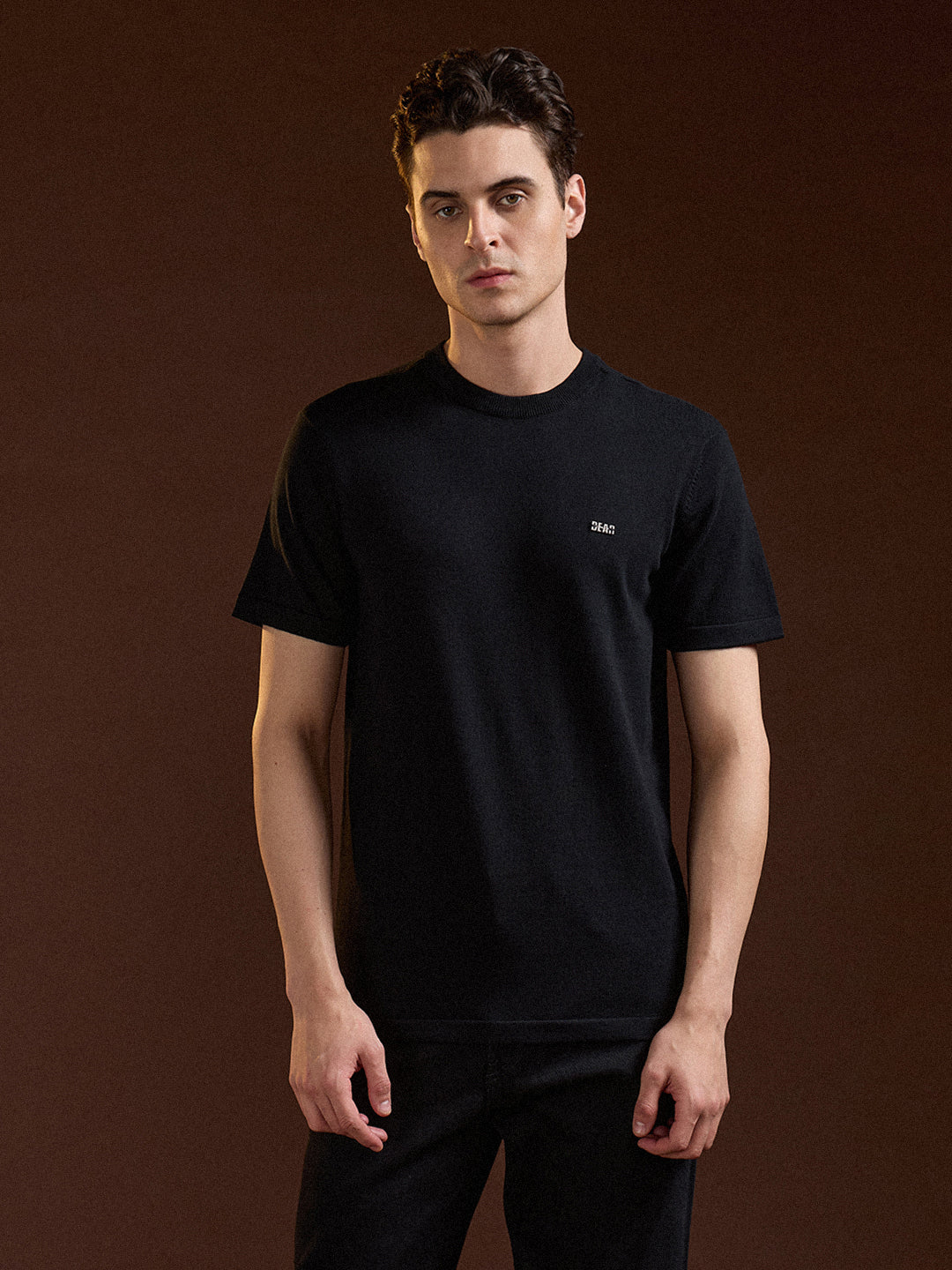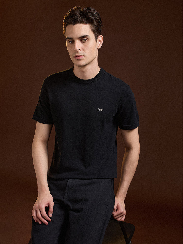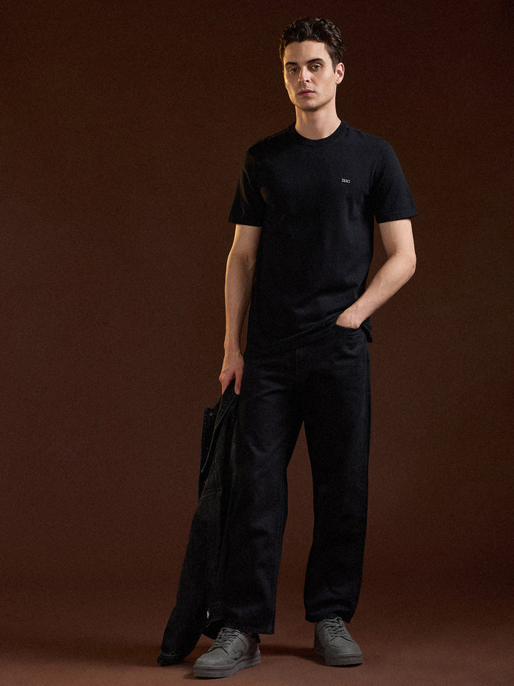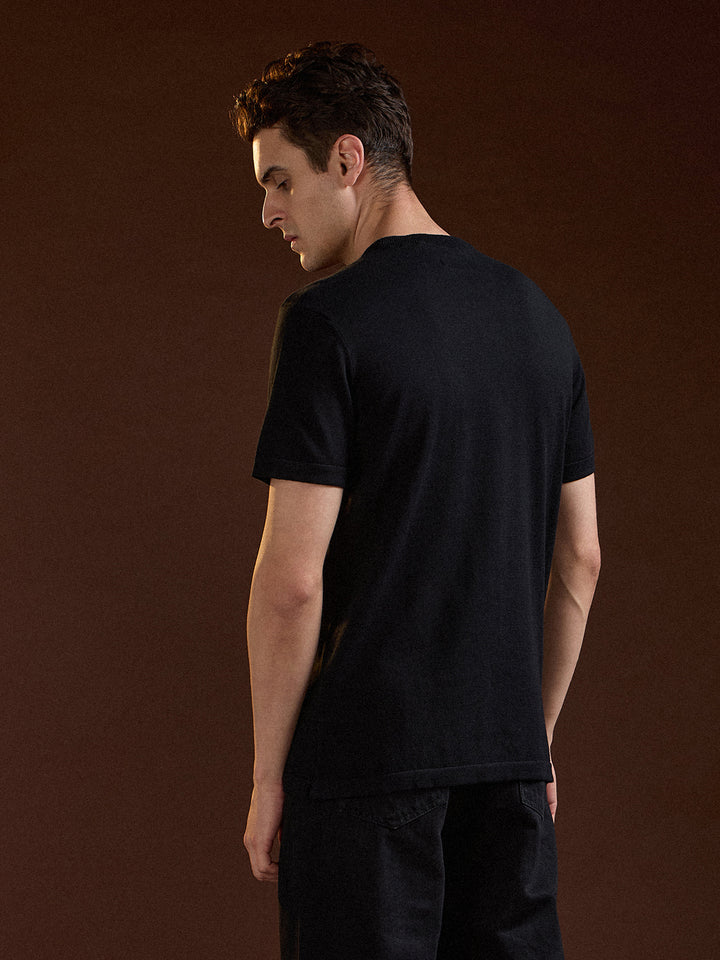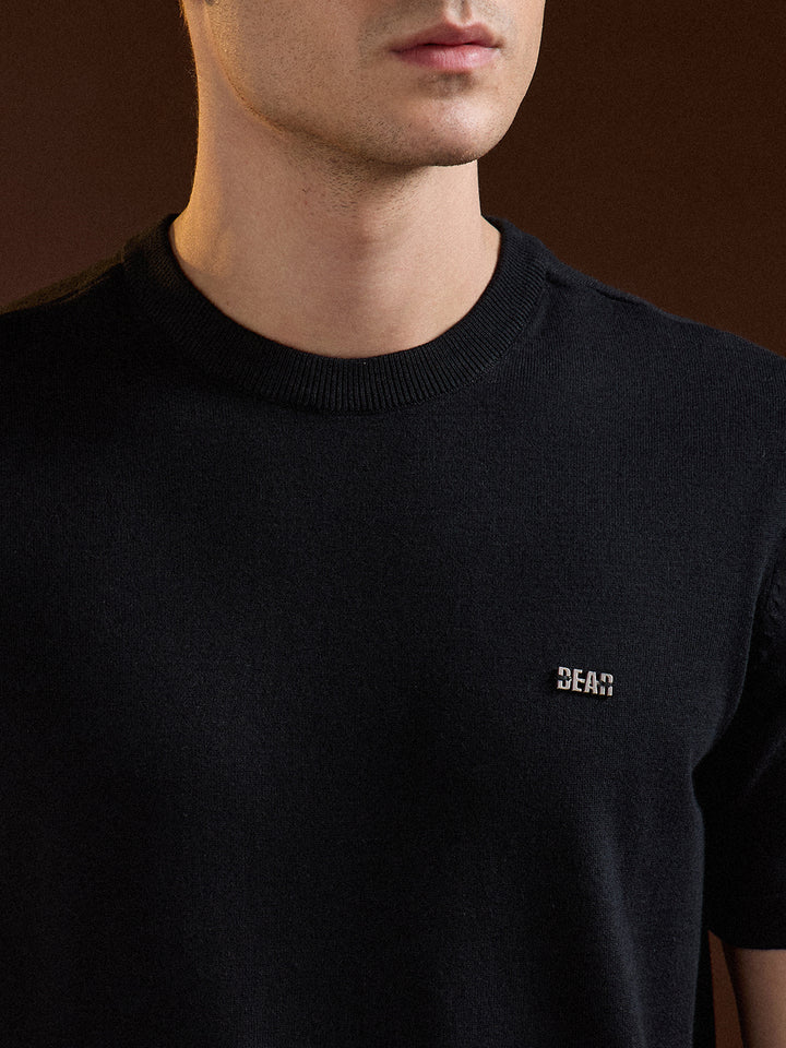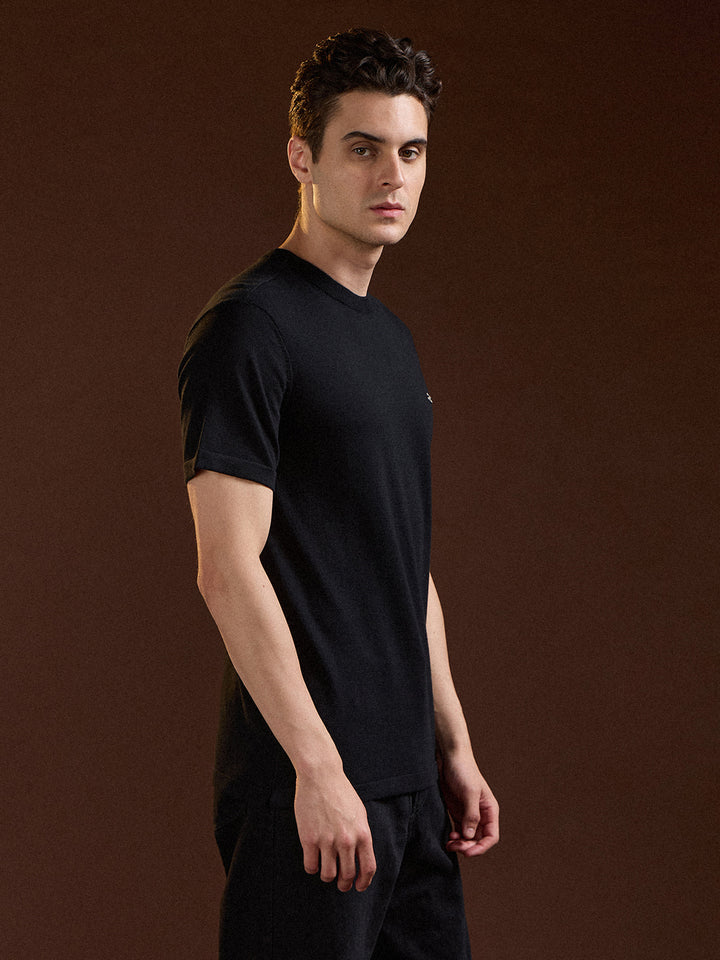 Black Solid Regular Fit Ribbed Crew Neck T-shirt