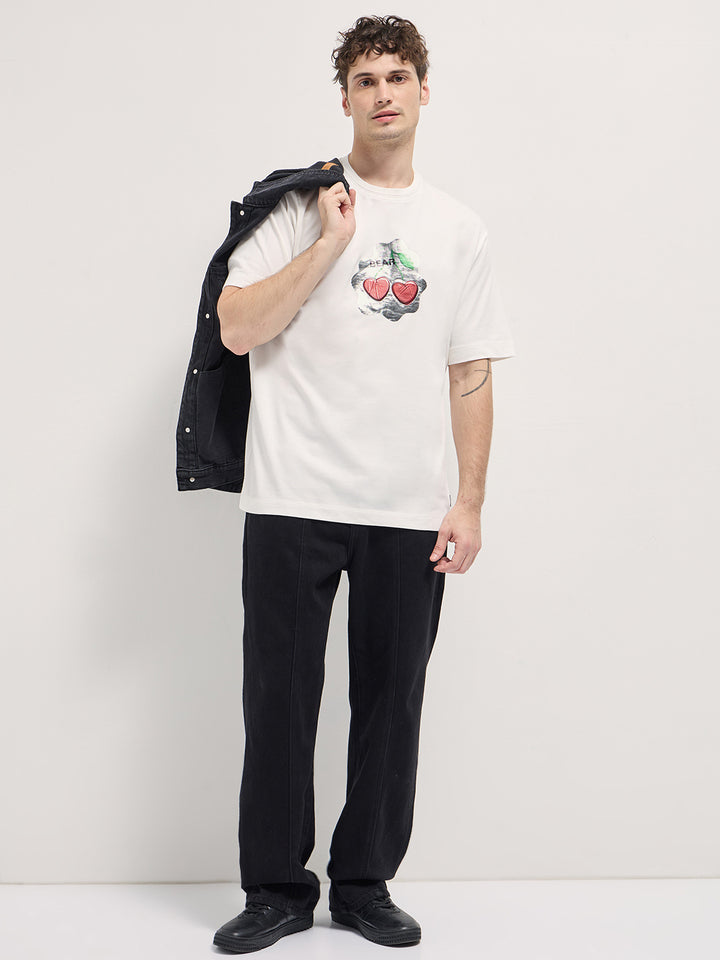 White Cherry Graphic Design Crew Neck T-shirt