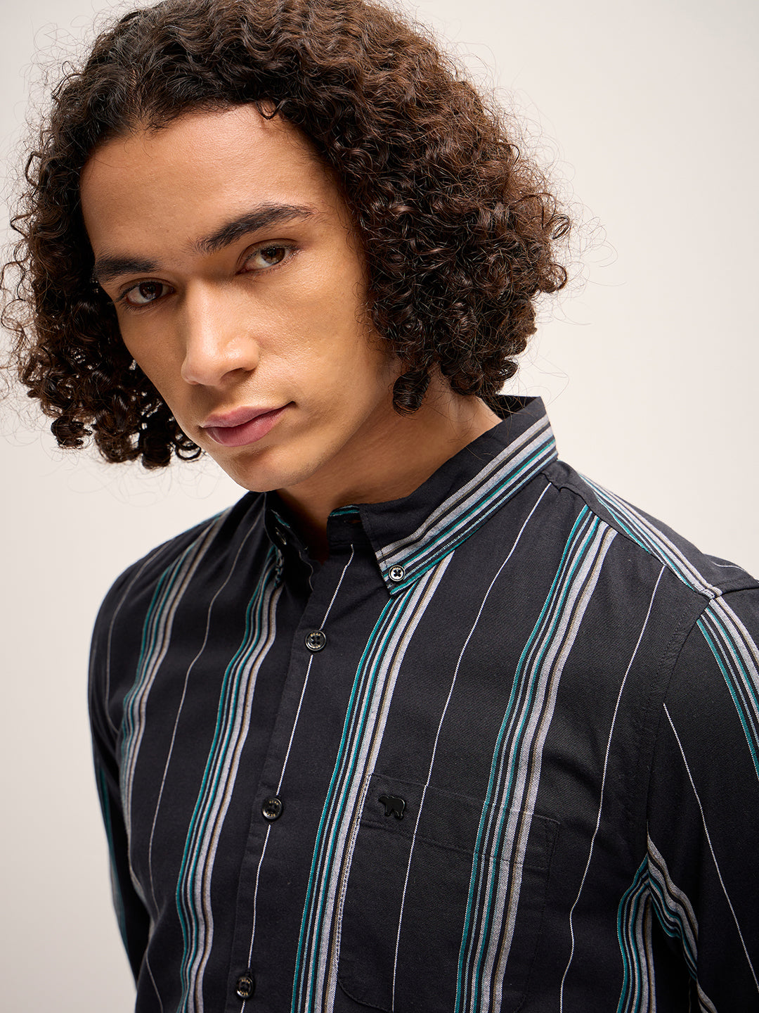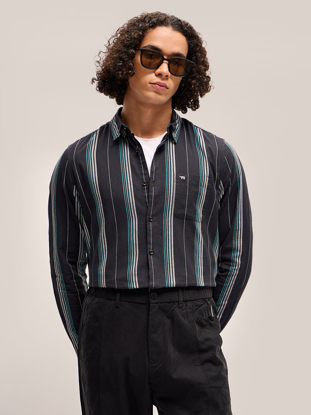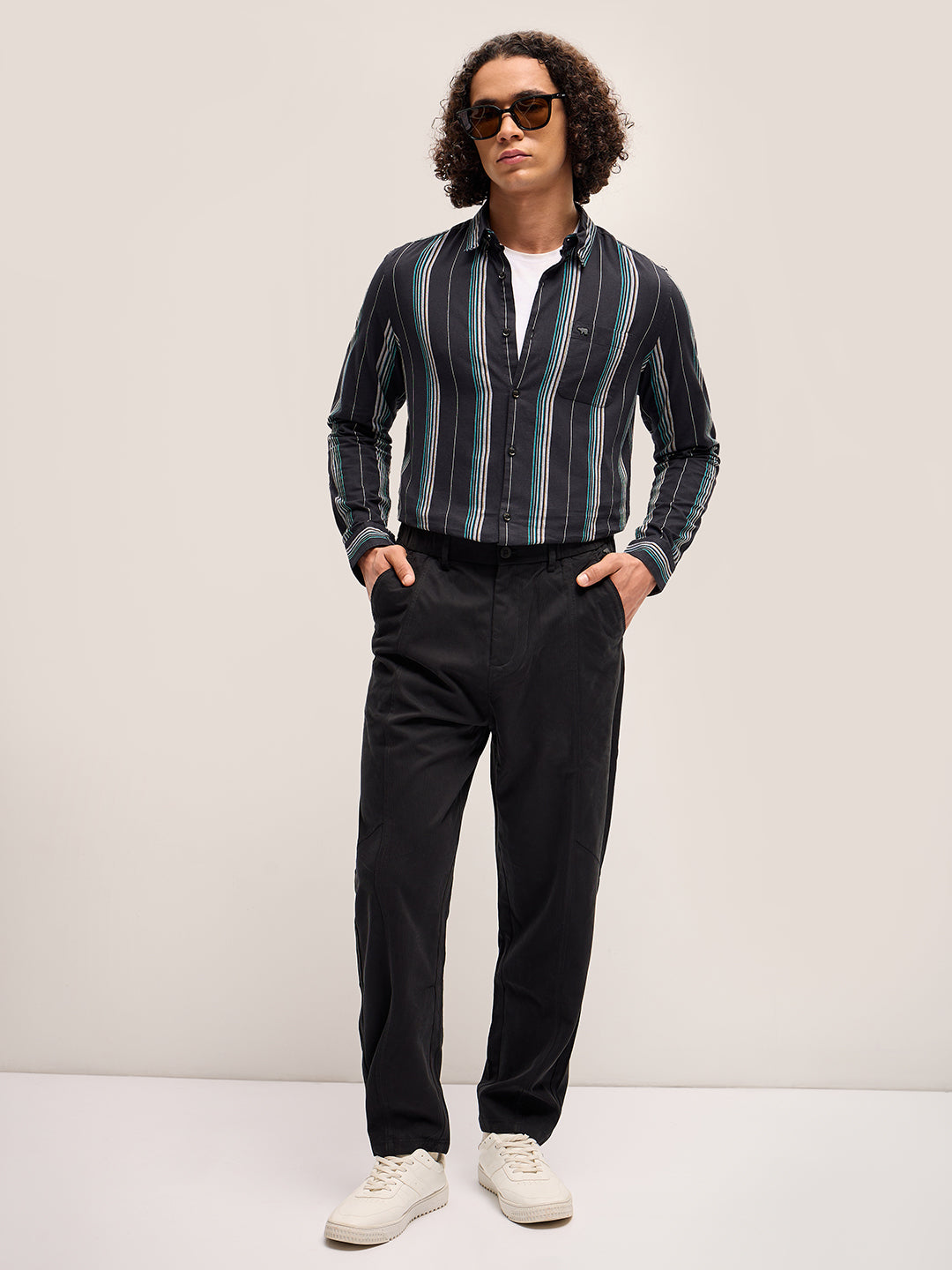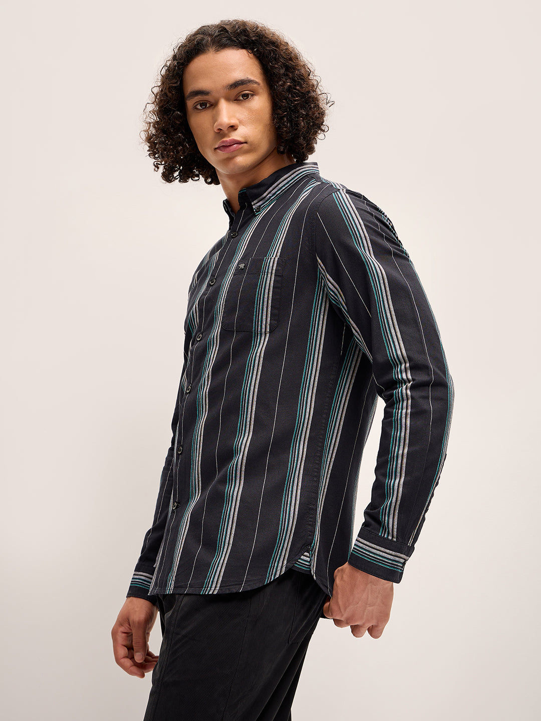 Black Stripe Slim Fit Casual Shirt