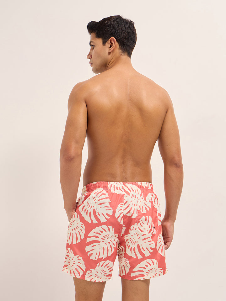 Peach Printed Swim Shorts with Elastic Waist – Perfect for Summer