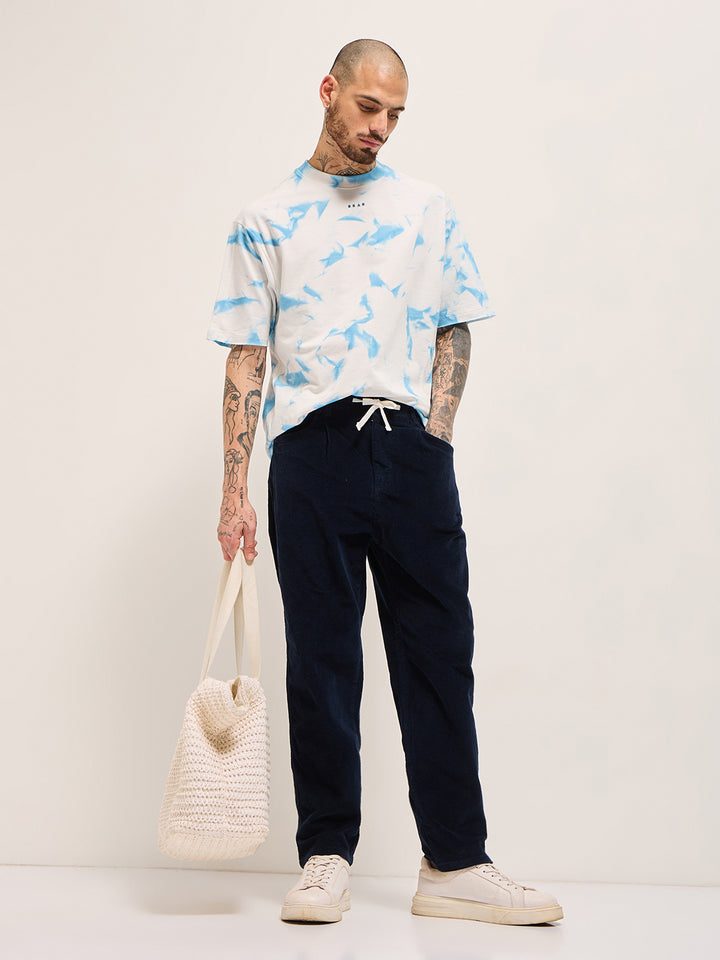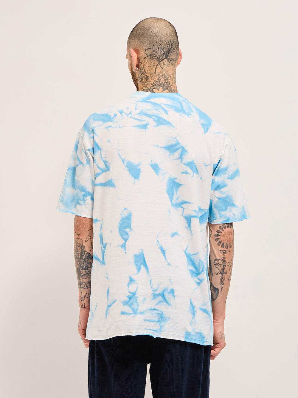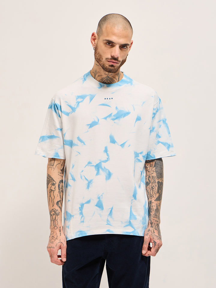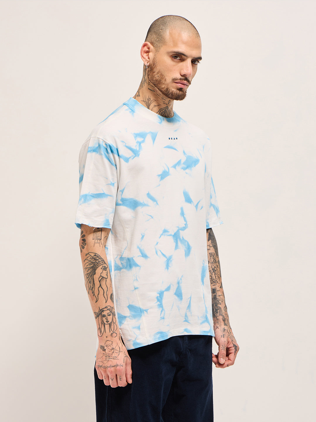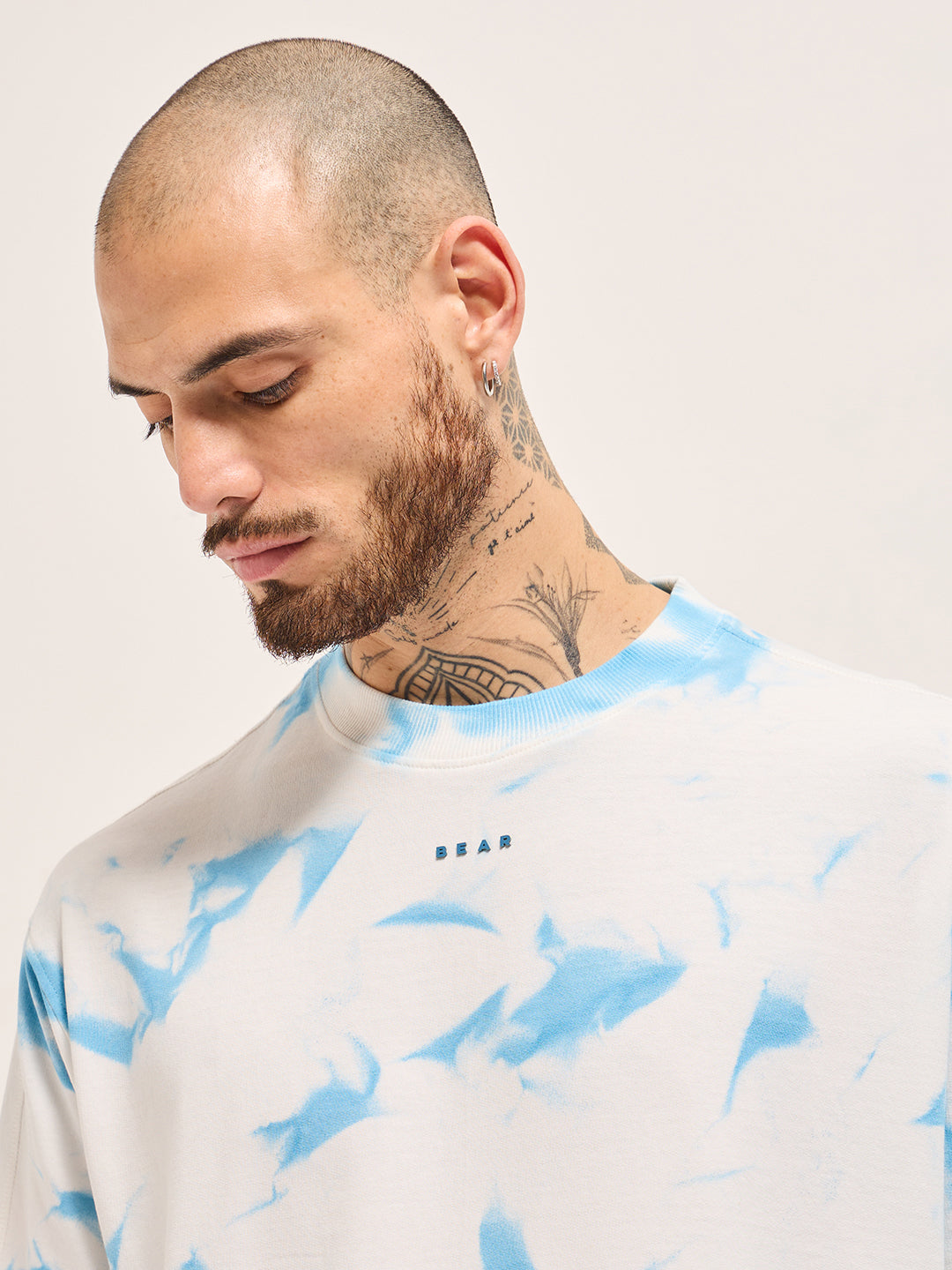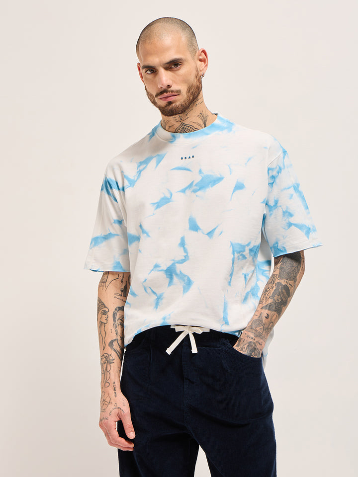 White with Blue Tie-Dye Oversize Crew Neck T-shirt