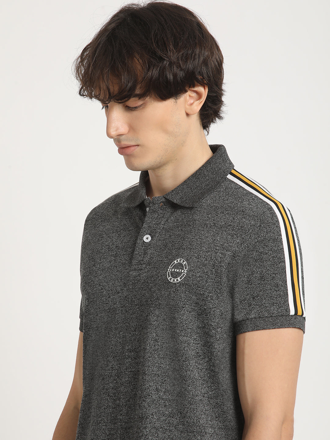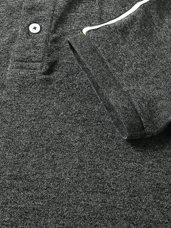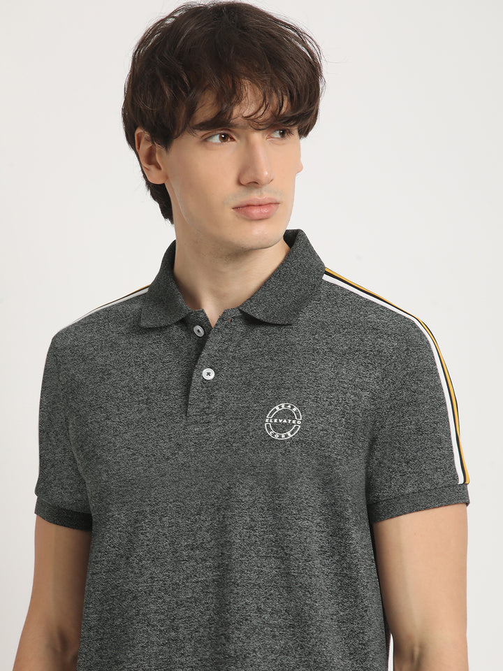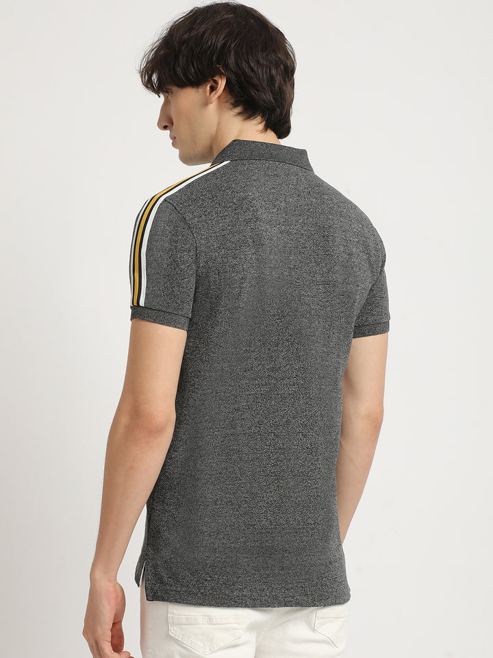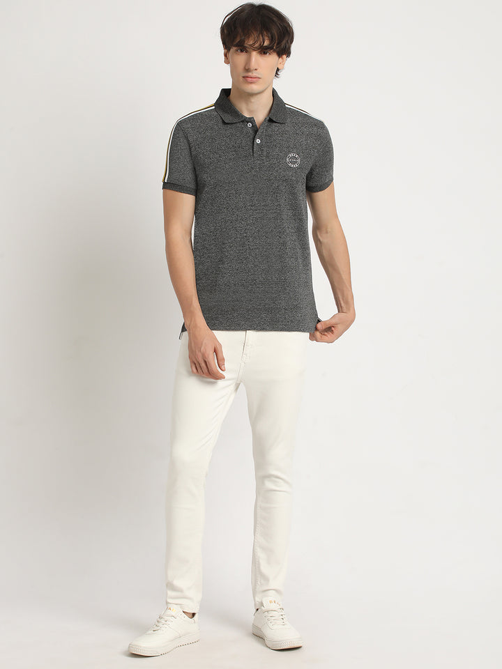 Men Grey Self Design Slim Fit Polo Collar T-shirt