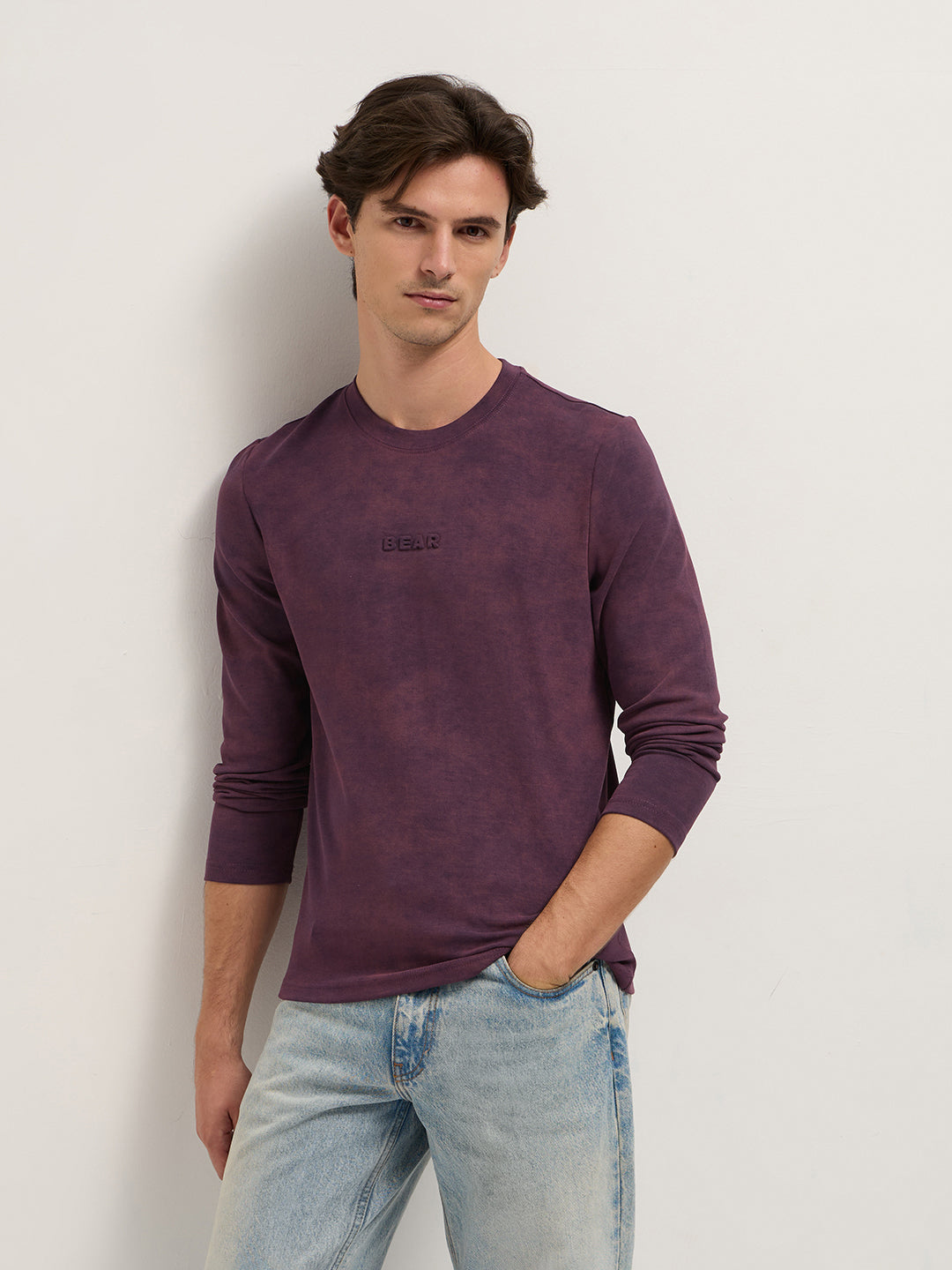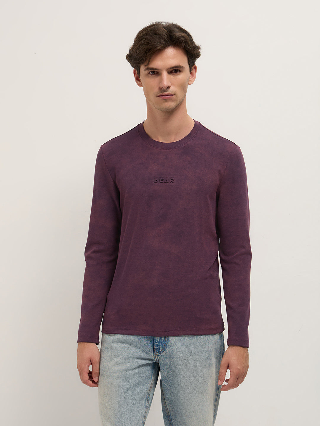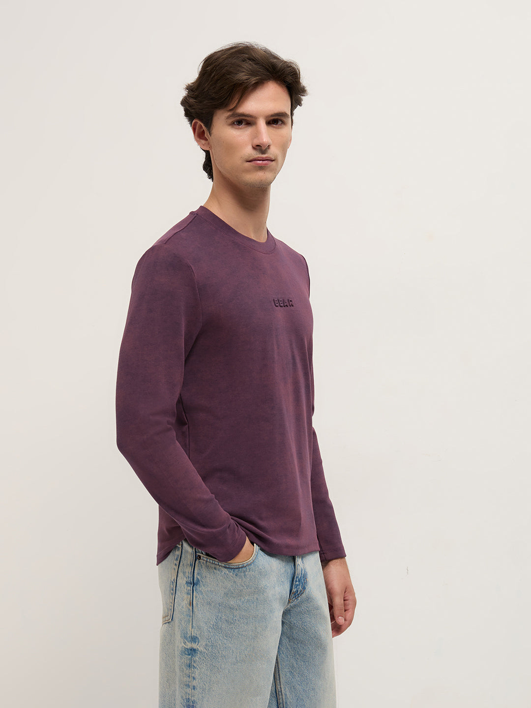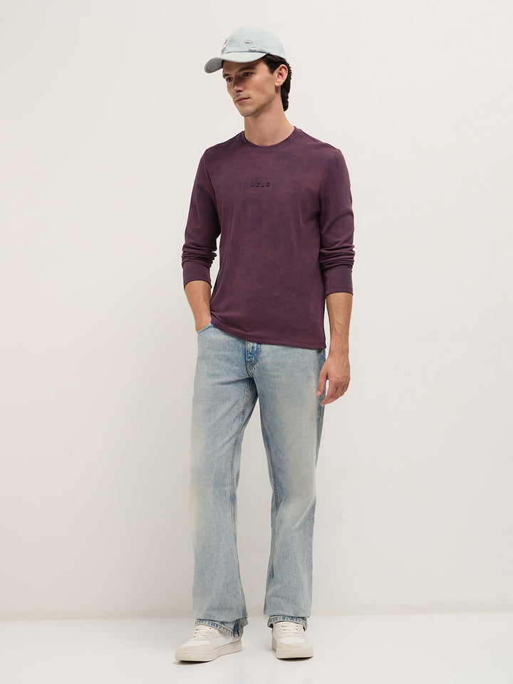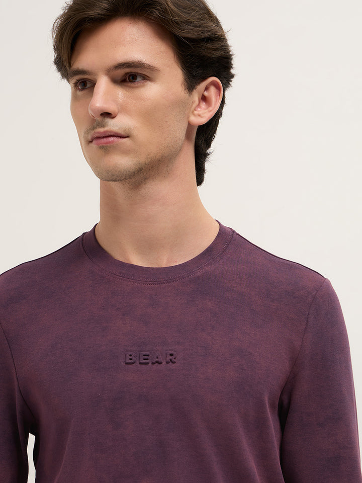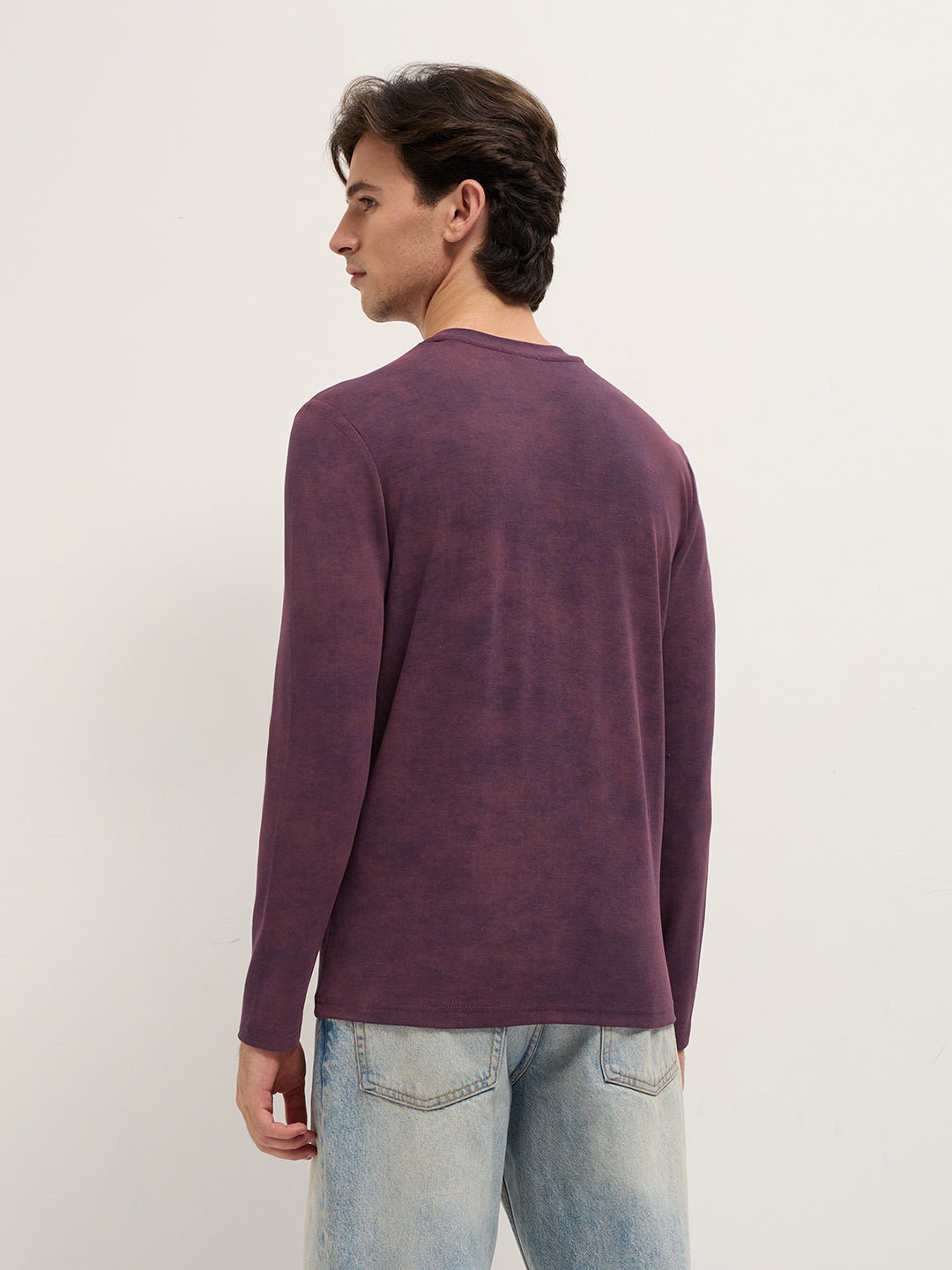 Purple Slim Fit Crew Neck T-Shirt with All-Over Wash Effect and Stretch Fabric
