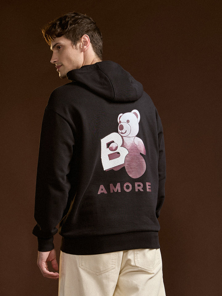 Black Relaxed Fit Hoodie with Back Graphic Design
