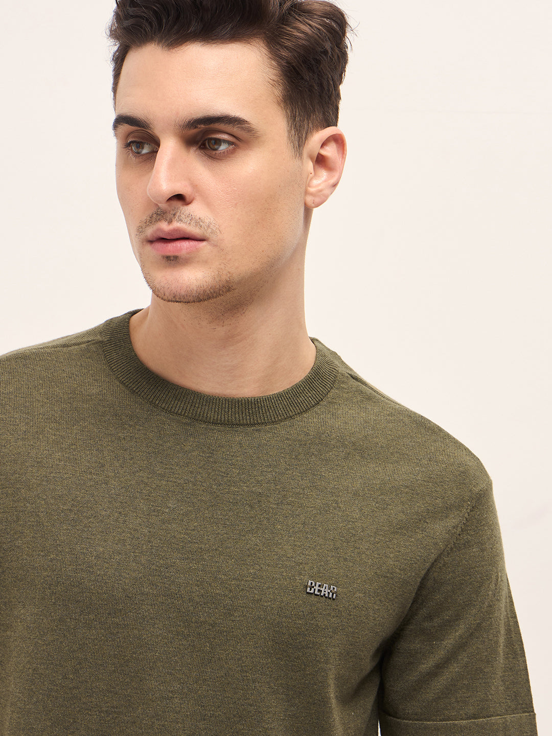 Olive Solid Regular Fit Ribbed Crew Neck T-shirt