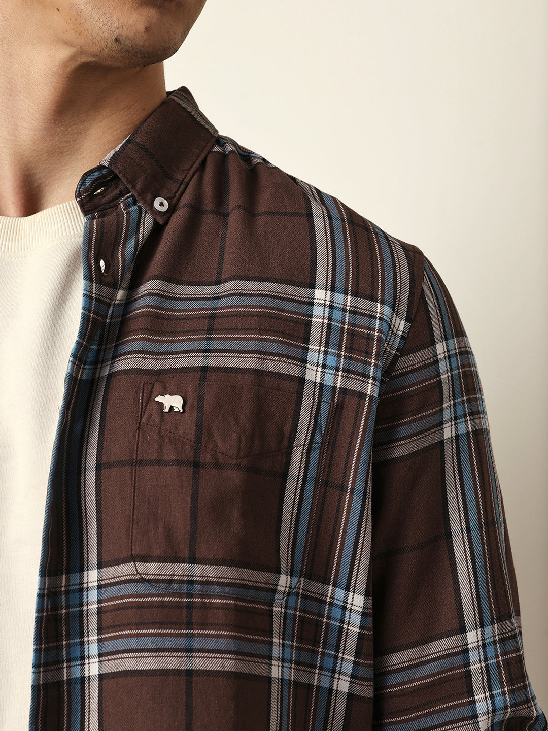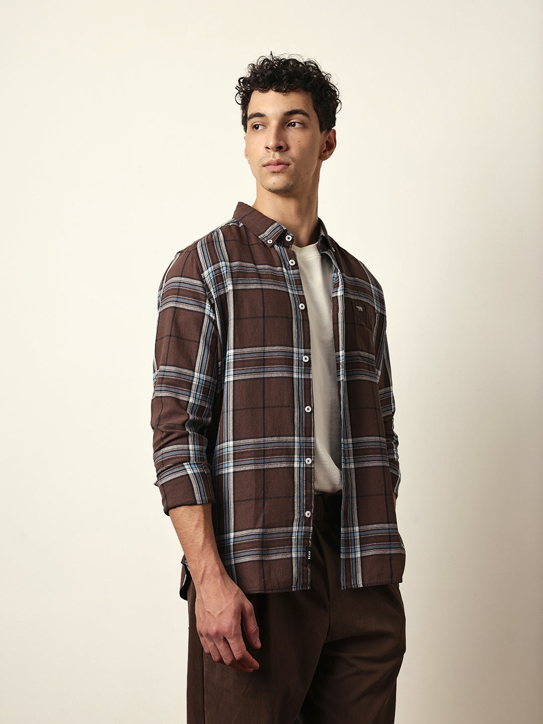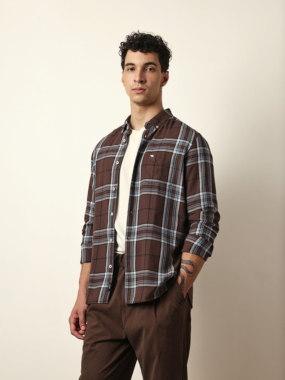 Shop Brown Woven Checks Slim Fit Casual Shirt Online.