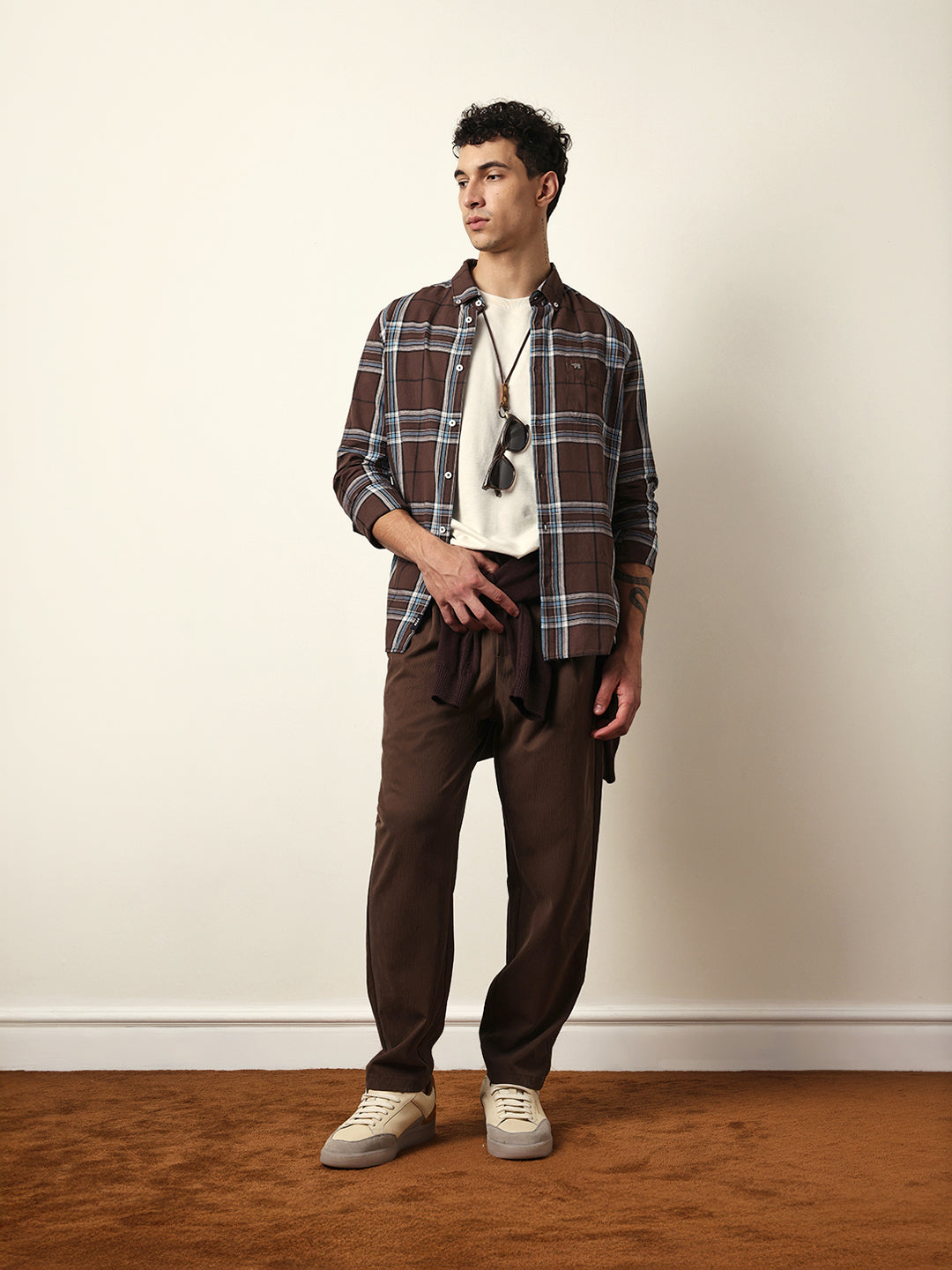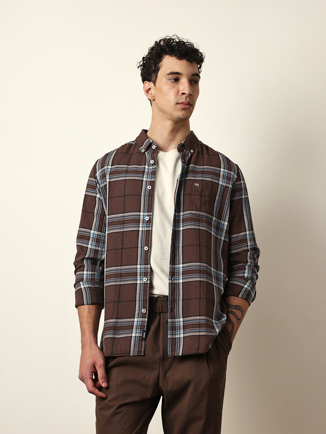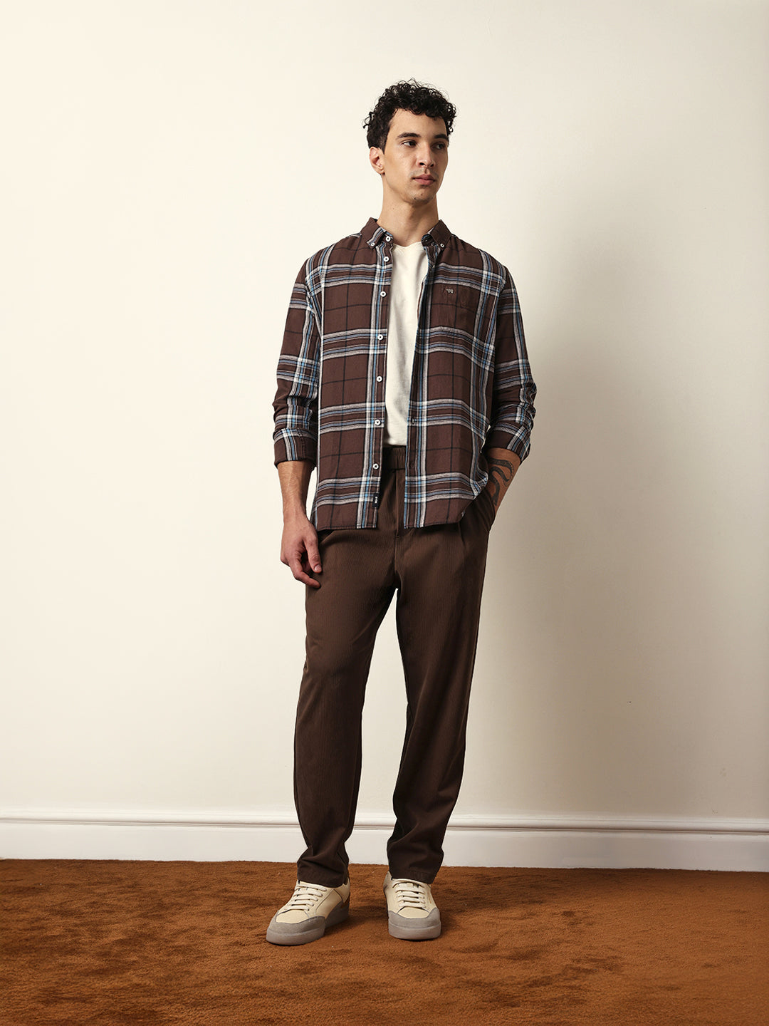 Shop Brown Woven Checks Slim Fit Casual Shirt Online.