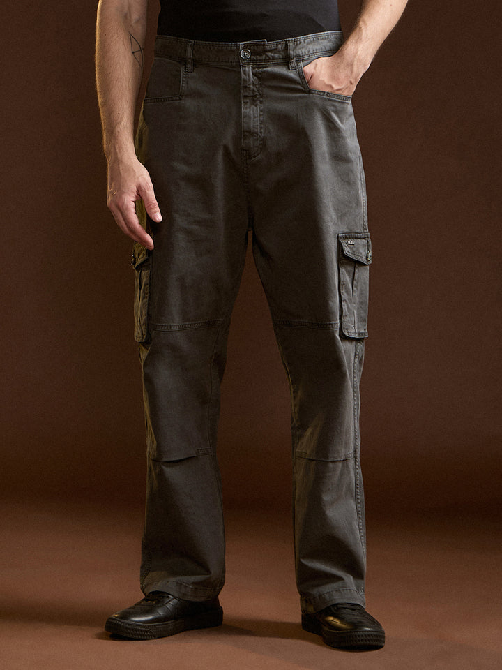 Shop Grey Solid Straight Fit Functional & Stylish Cargo Pant Online