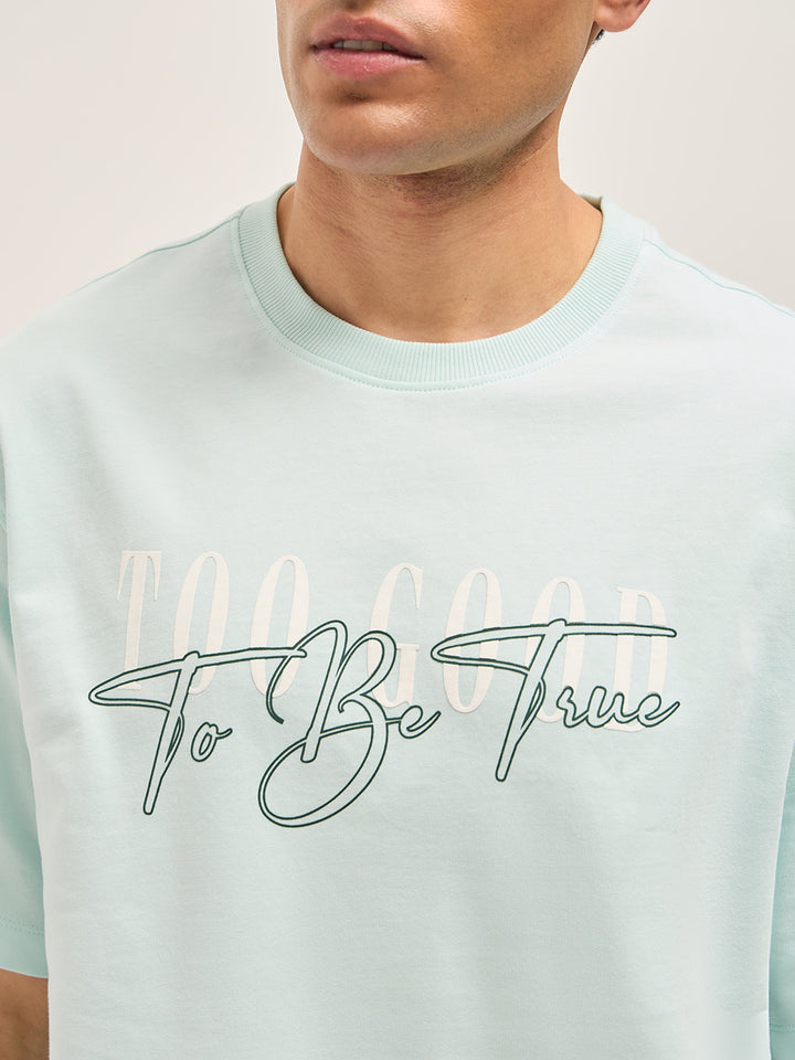 Front Print: "Too Good to Be True" text in a stylish, mixed-font design.