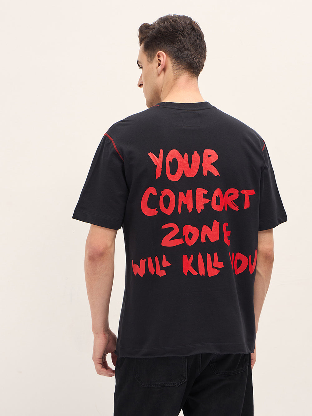 - Back Design: Large red lettering stating “YOUR COMFORT ZONE WILL KILL YOU” for a striking statement