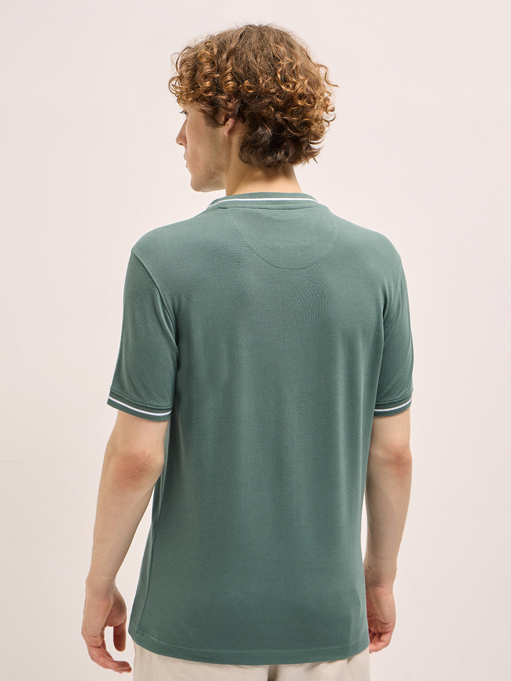 Pastel Green Solid Ribbed Collar with Contrast Tipping Regular Fit Polo