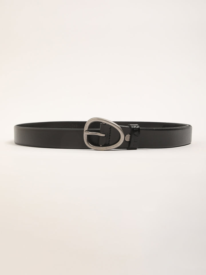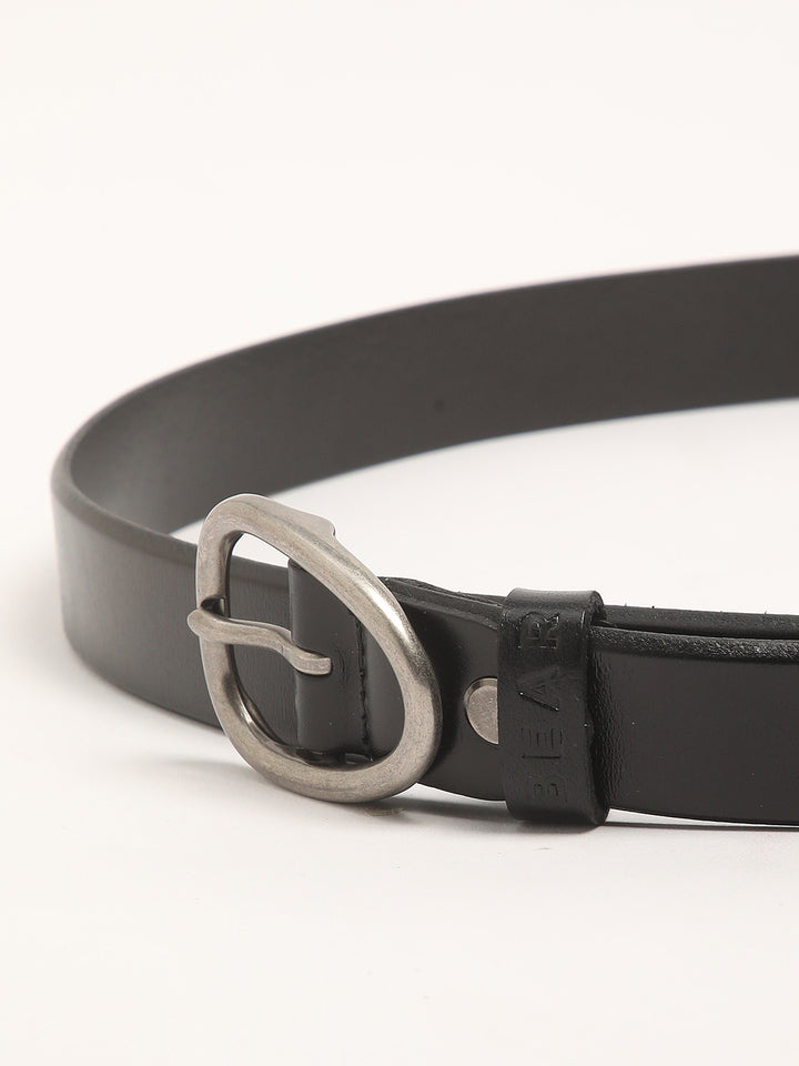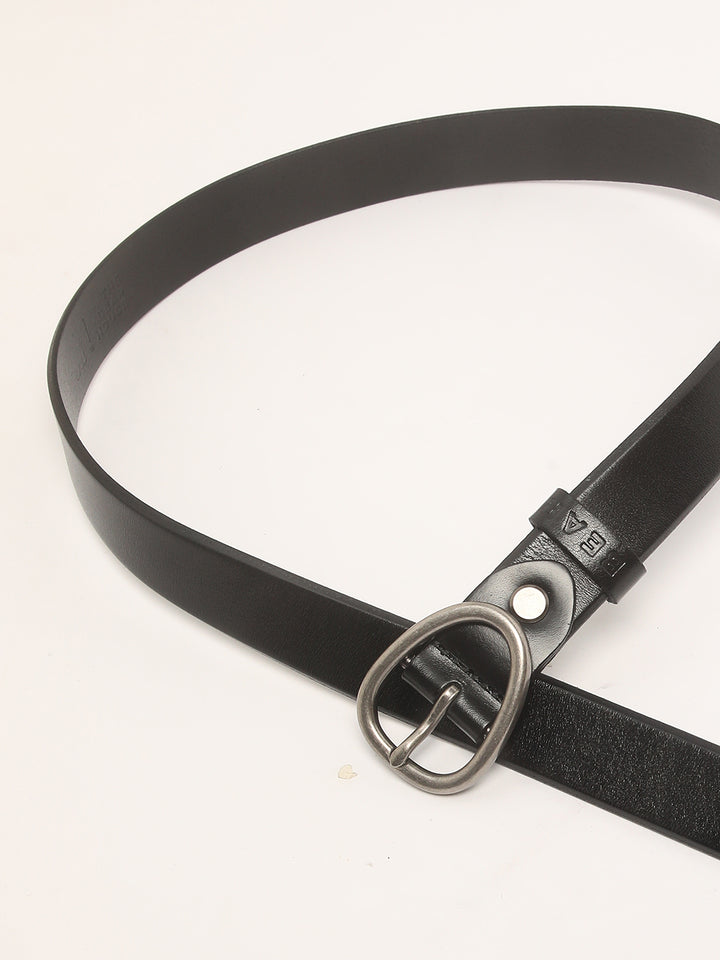 Shop Men Black Pure Leather Slim Width Casual Belt with Tang Closure Online.