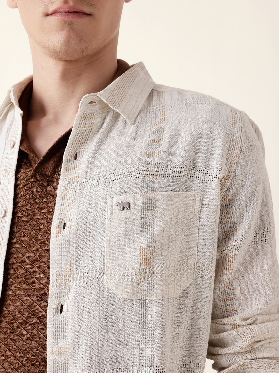 Shop Cream Slim Fit Casual Shirt with Vertical Stripes & Horizontal Texture Design Online. Explore our wide range of men's clothing collections. Free Shipping Hassle-free returns