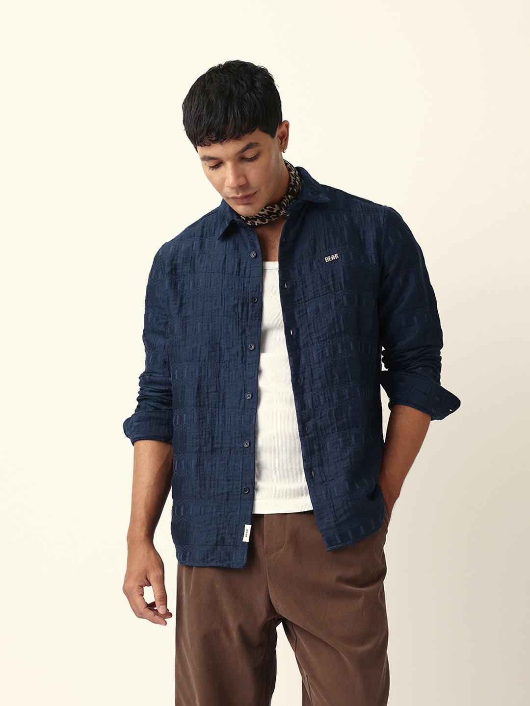 Shop Blue Textured Woven Self-Design Slim Fit Casual Shirt Online. Explore our wide range of men's clothing collections. Free Shipping Hassle-free returns