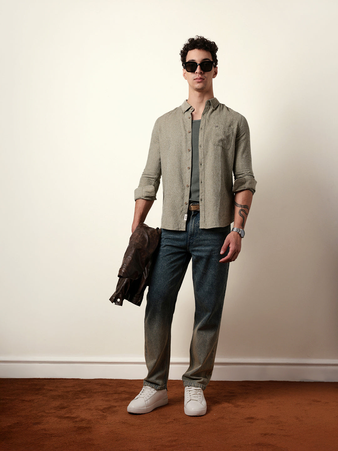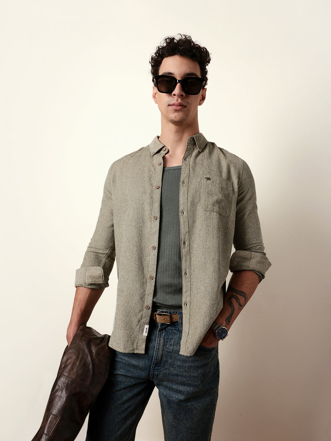 Shop Olive Textured Woven Striped Slim Fit Casual Shirt Online. Explore our wide range of men's clothing collections. Free Shipping Hassle-free returns