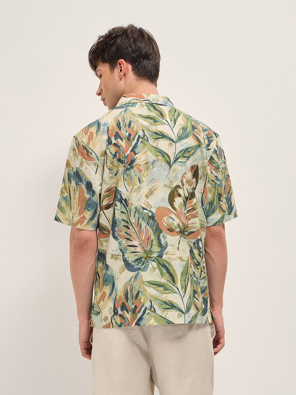 Shop Multicolor Abstract Botanical Print Oversized Fit Half Sleeve Shirt Online.