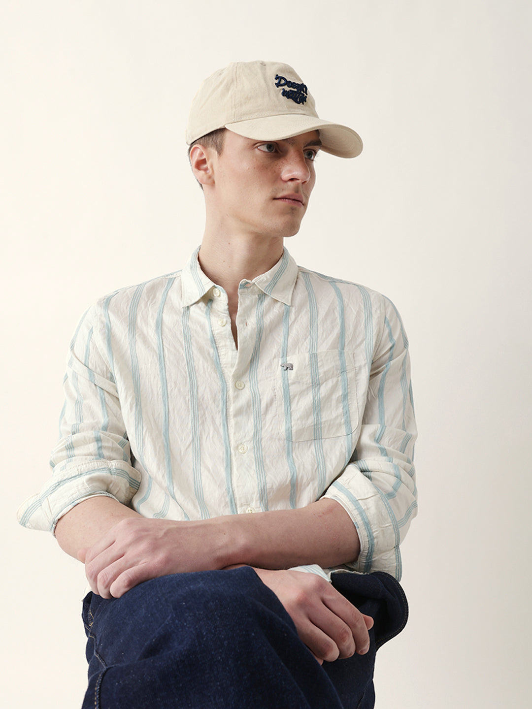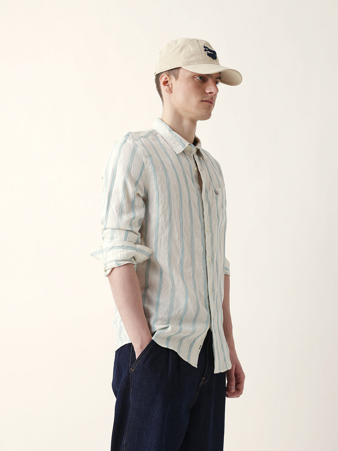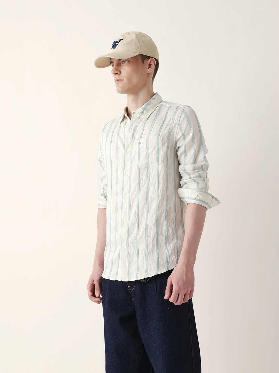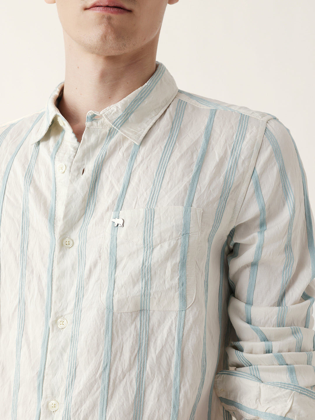 Teal & Cream Seersucker Vertical Pinstripe Slim Fit Casual Shirt