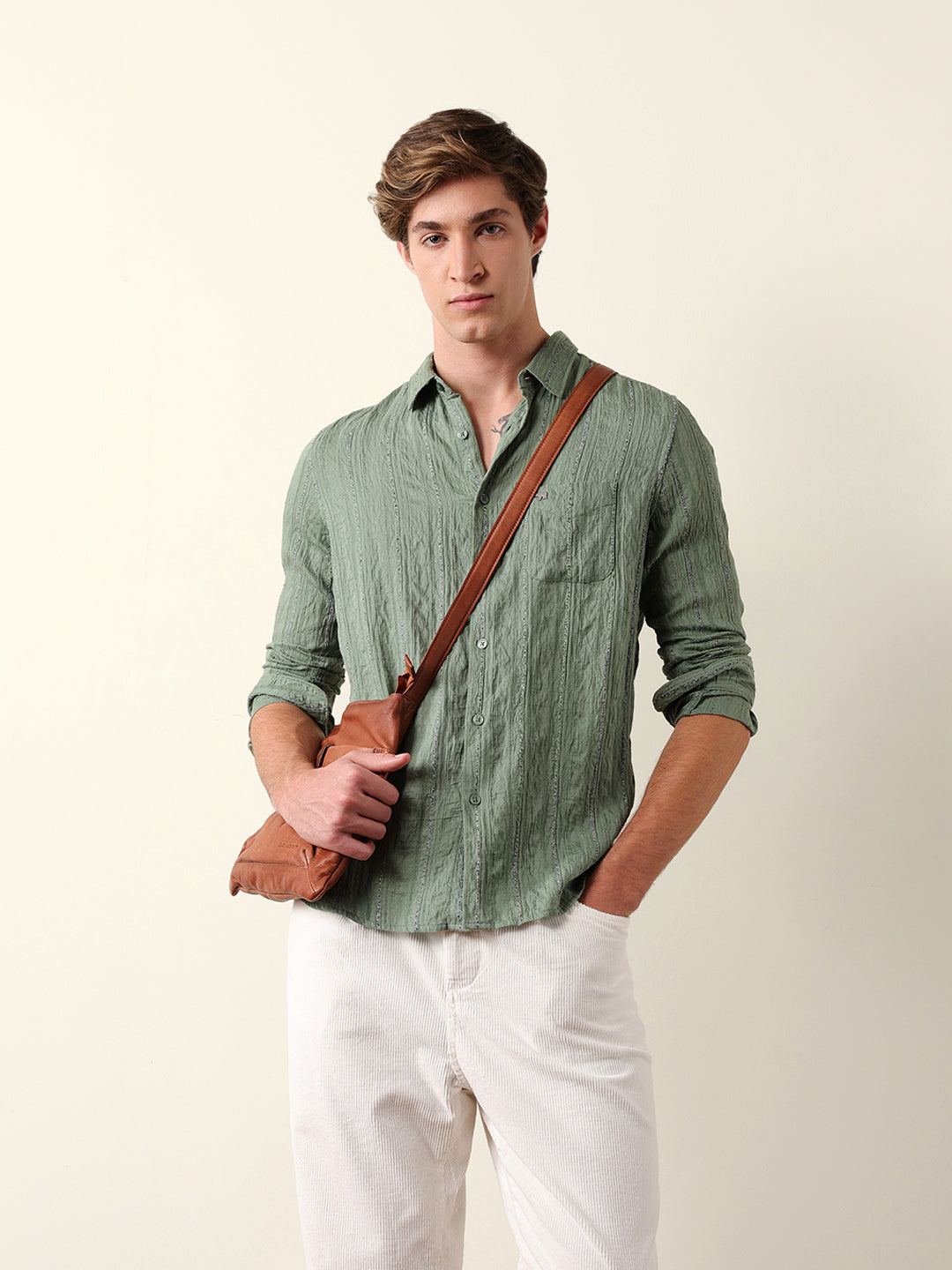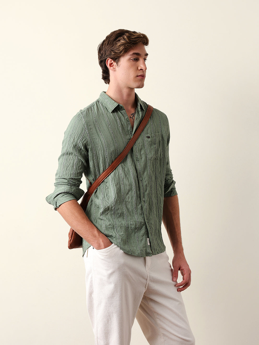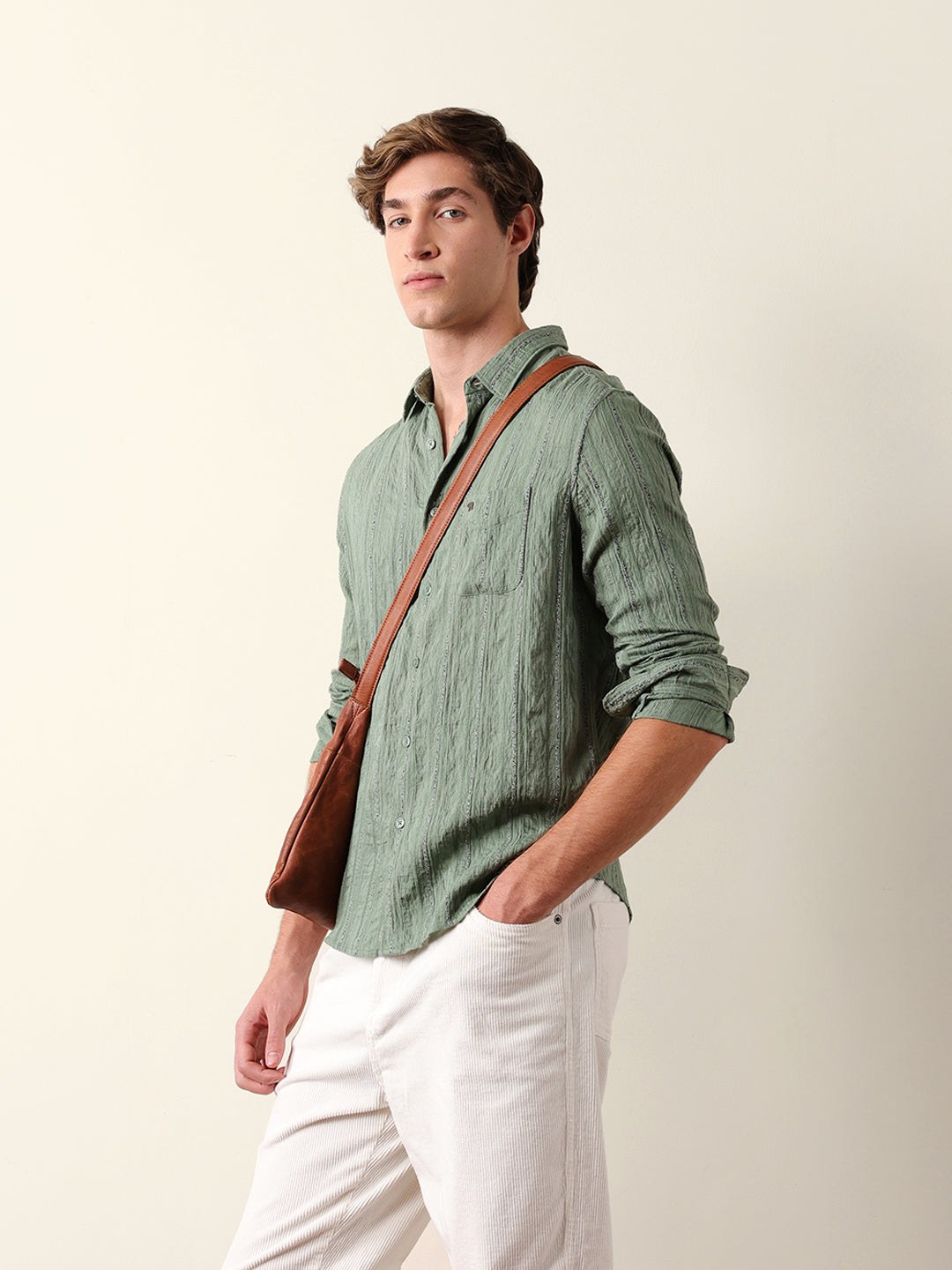 Shop Green Vertical Seersucker Pinstripe Slim Fit Casual Shirt Online. Explore our wide range of men's clothing collections. Free Shipping Hassle-free returns