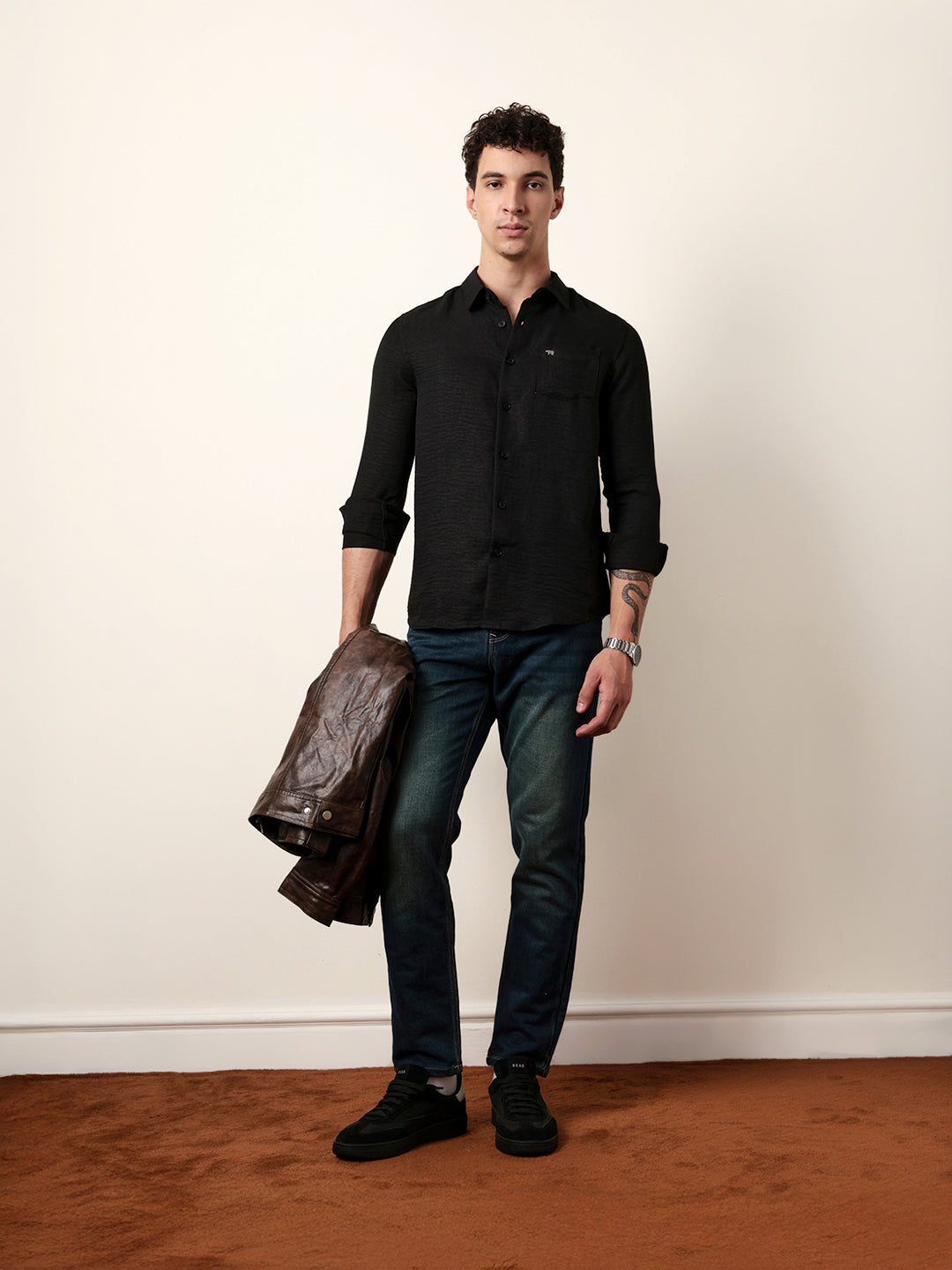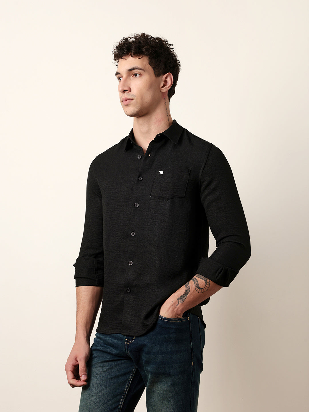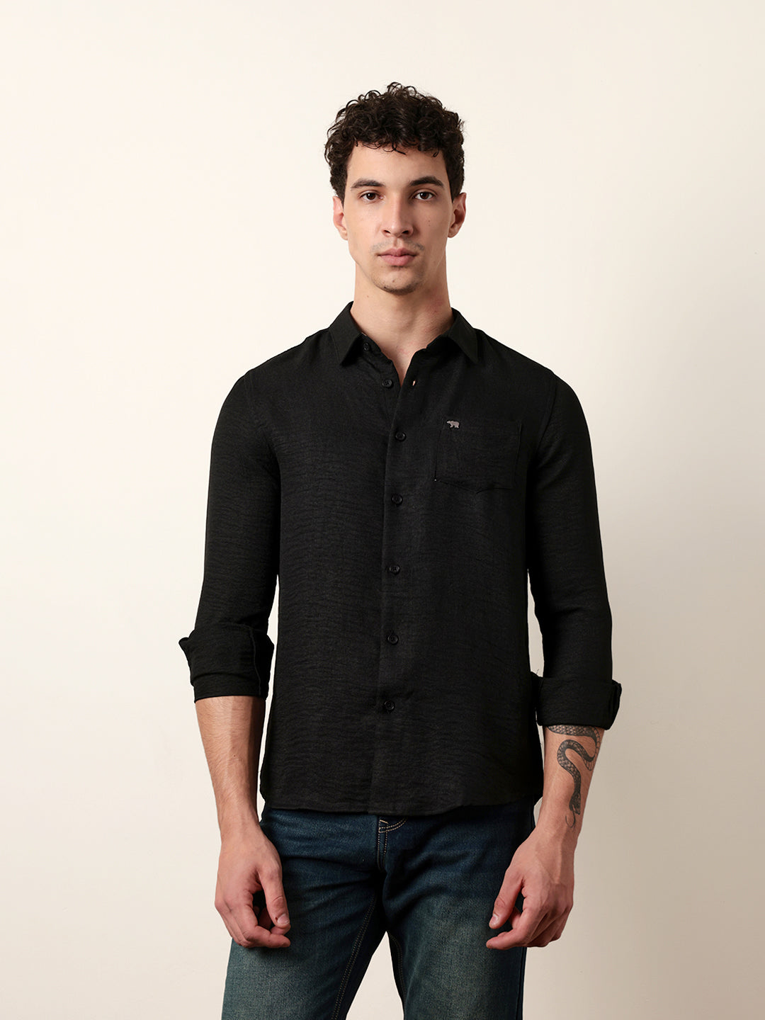 Shop Black Woven Solid Slim Fit Casual Shirt Online. Explore our wide range of men's clothing collections. Free Shipping Hassle-free returns