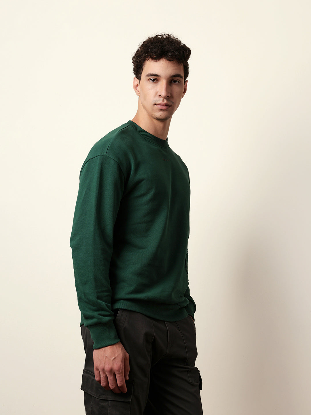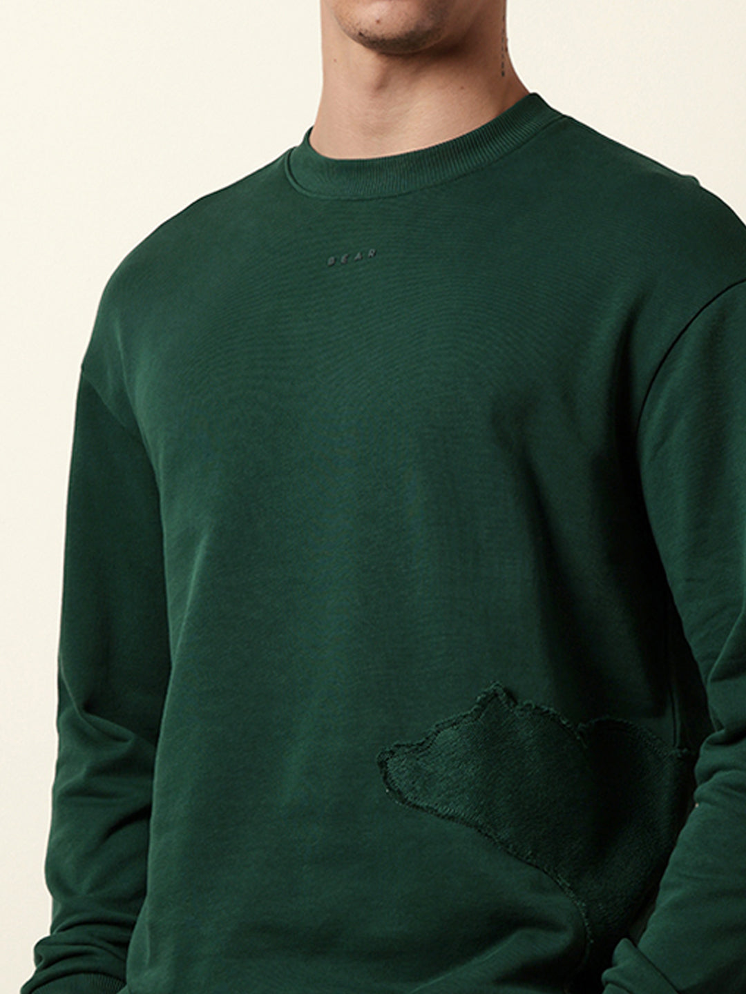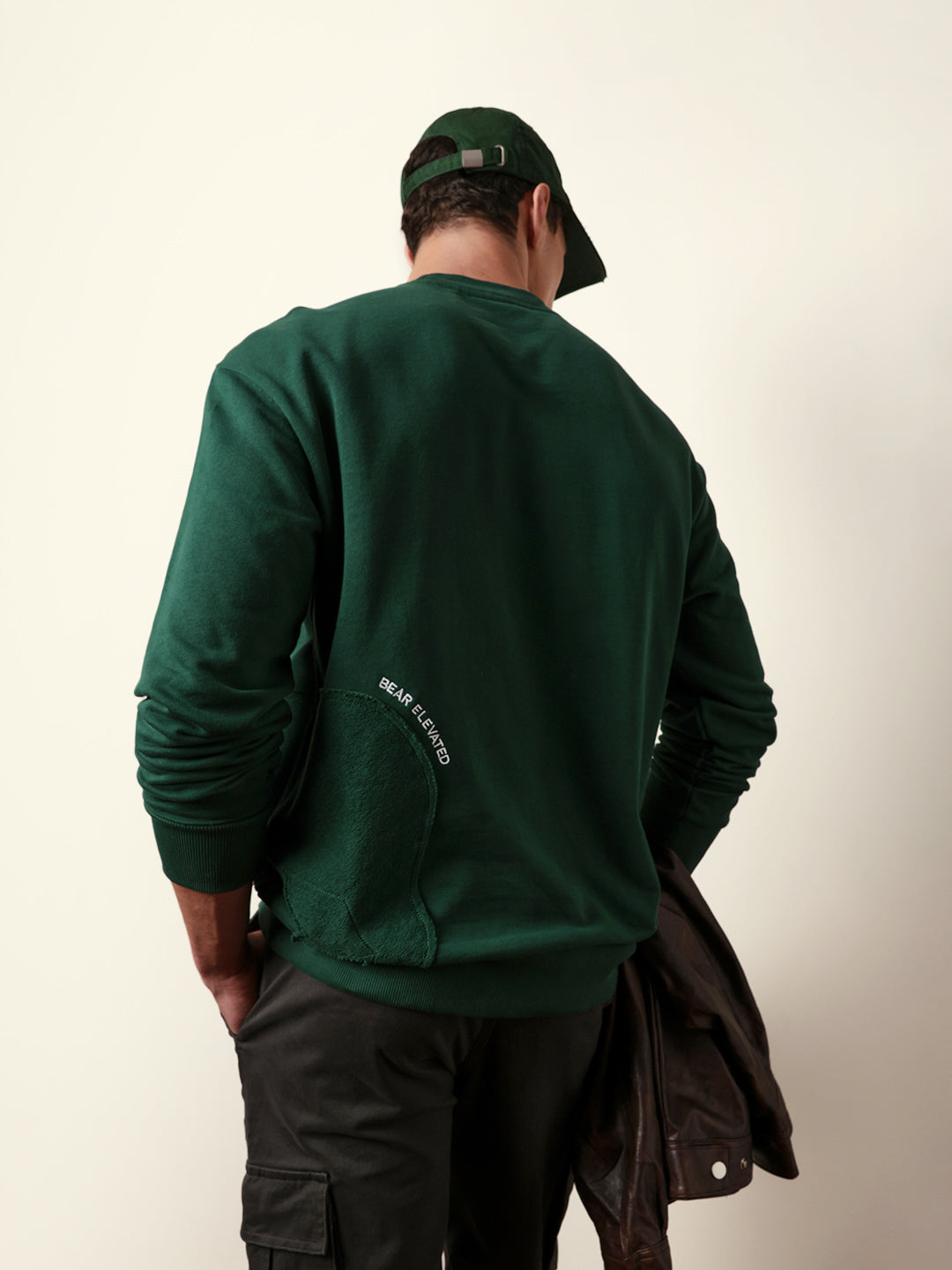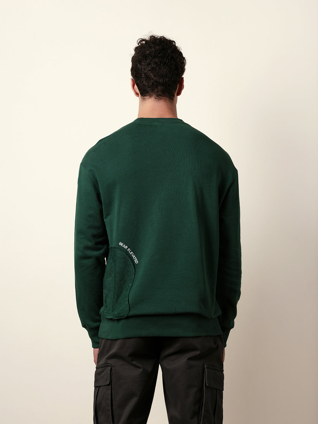 Forest Green Relaxed Fit Crew Neck Sweatshirt with Bear Patch