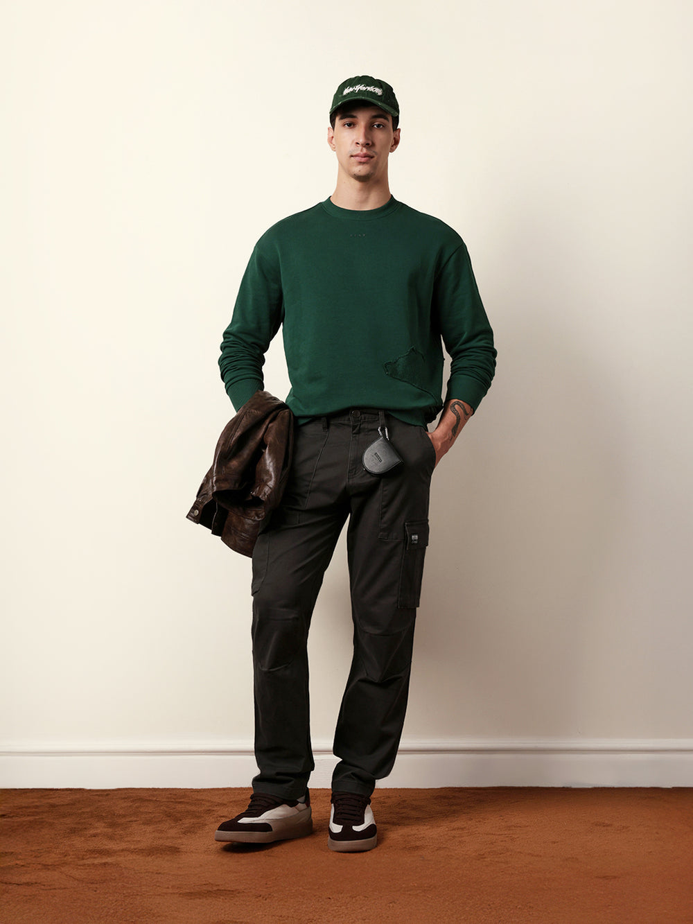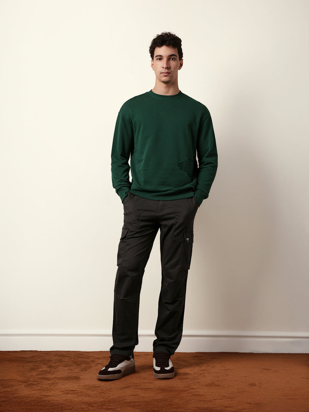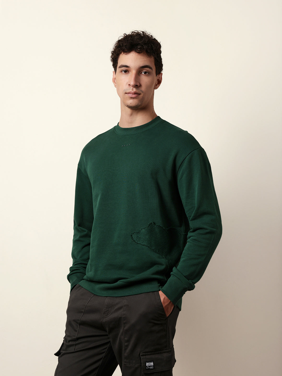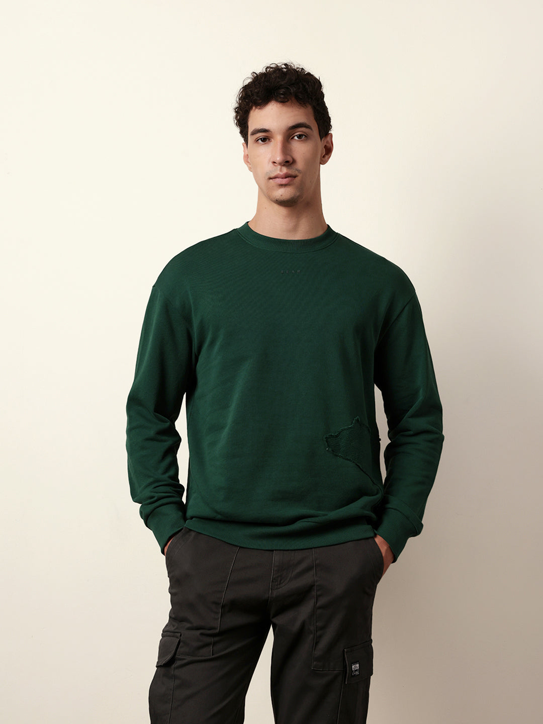 Forest Green Relaxed Fit Crew Neck Sweatshirt with Bear Patch