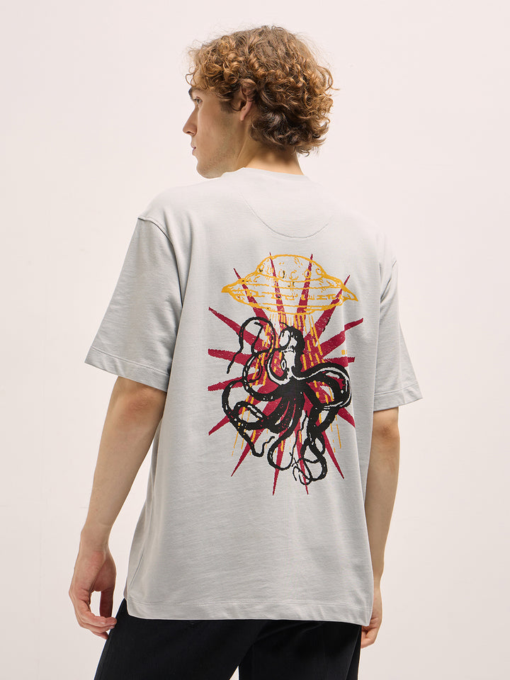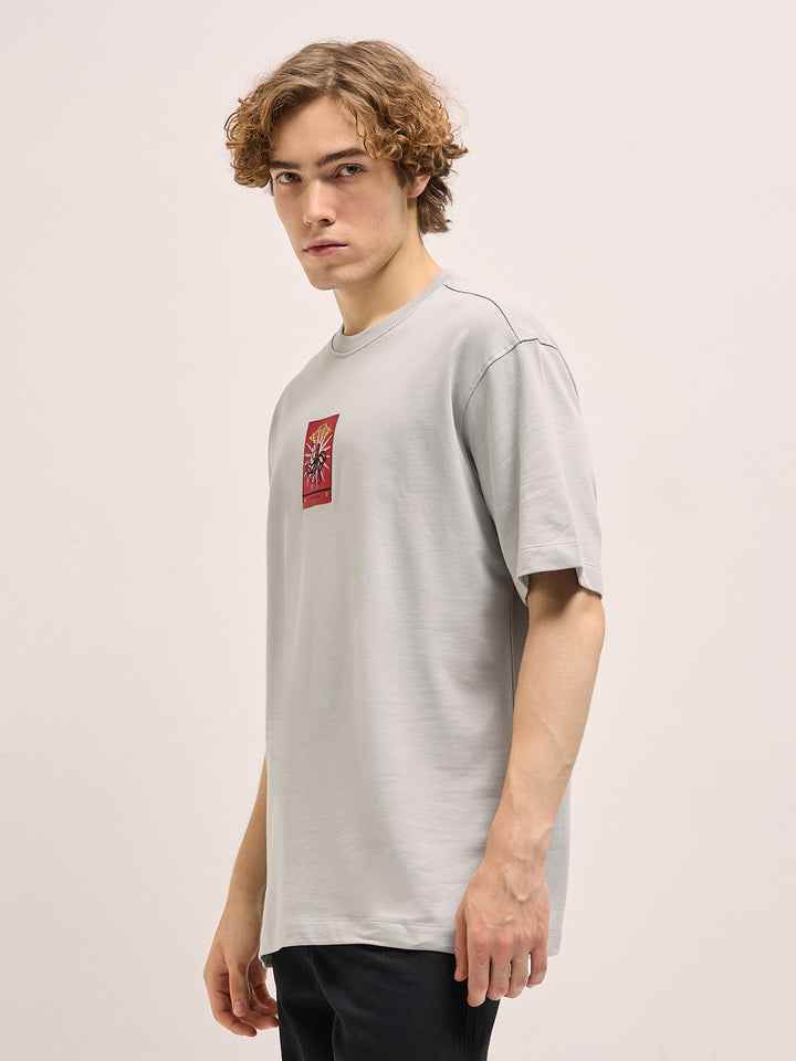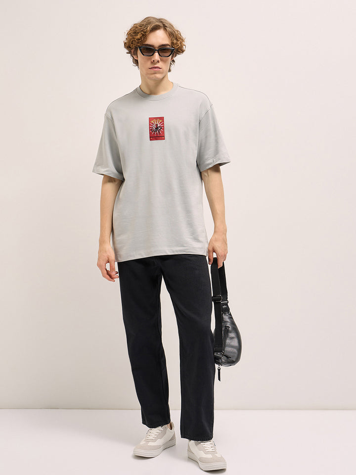 Grey Oversize Bold Graphic abstract Print Crew Neck T-shirt